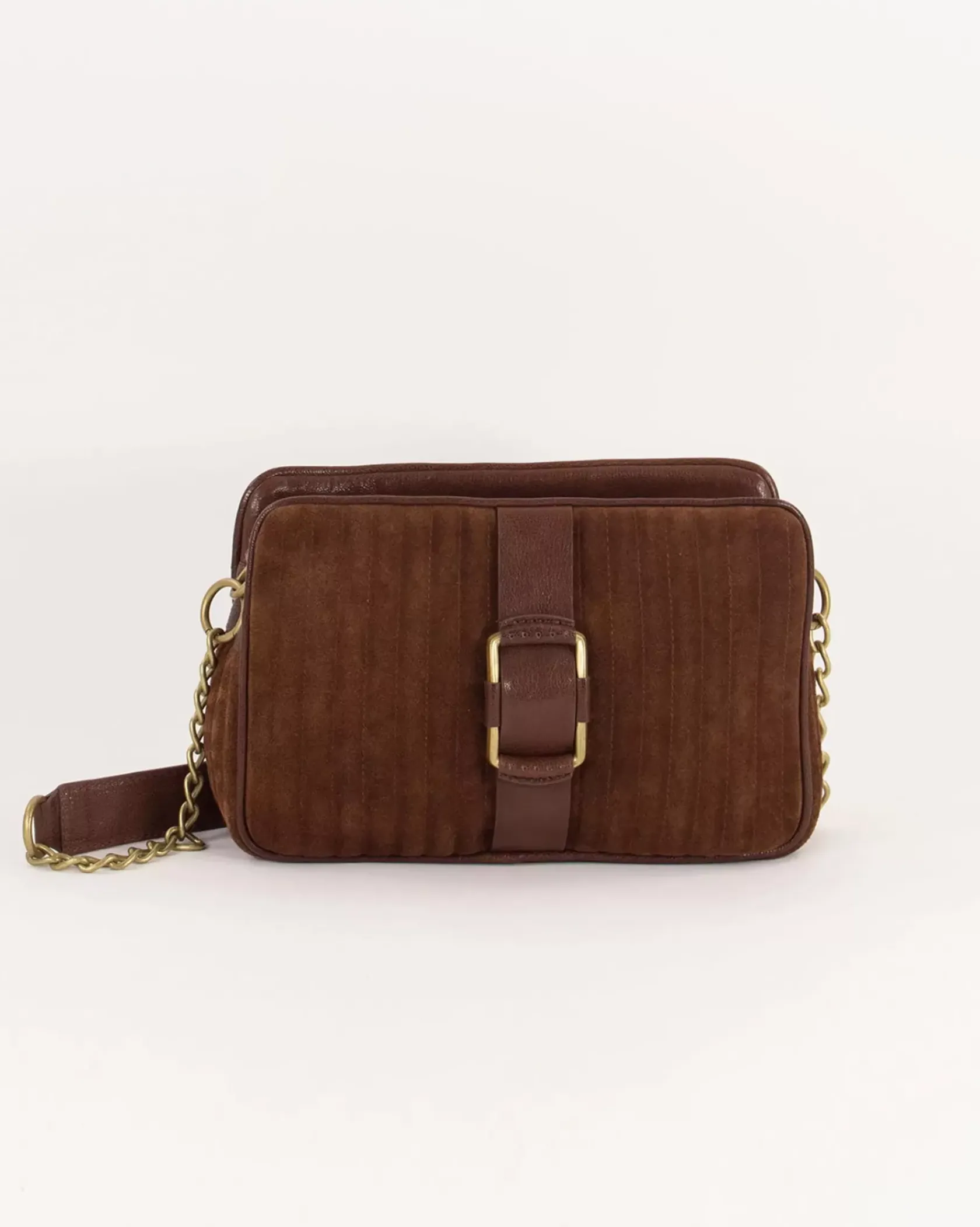 Sac en cuir de vache suédé matelassée et détails en cuir de chèvre.