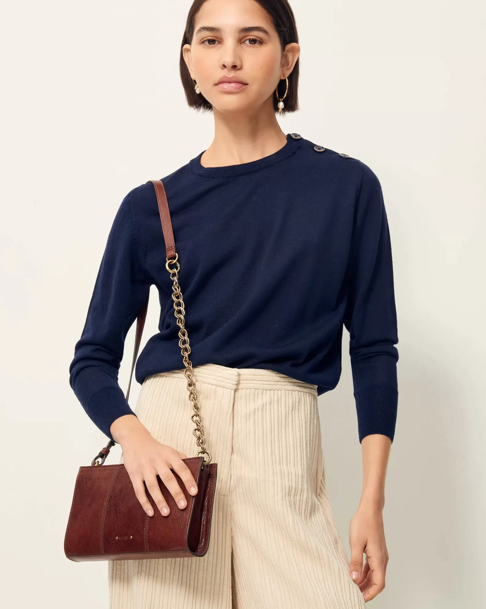 Pull en maille fine jauge mérinos, point jersey.