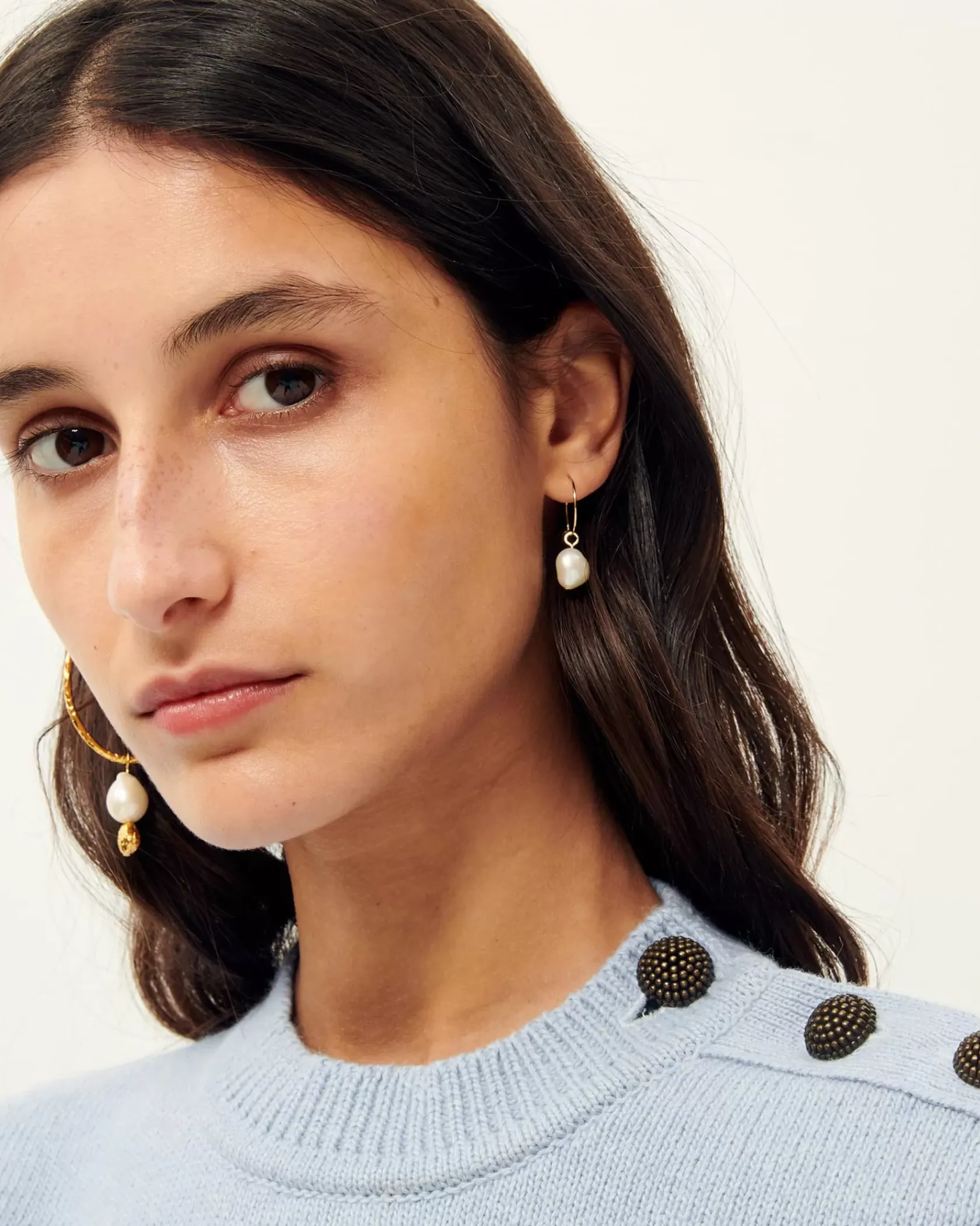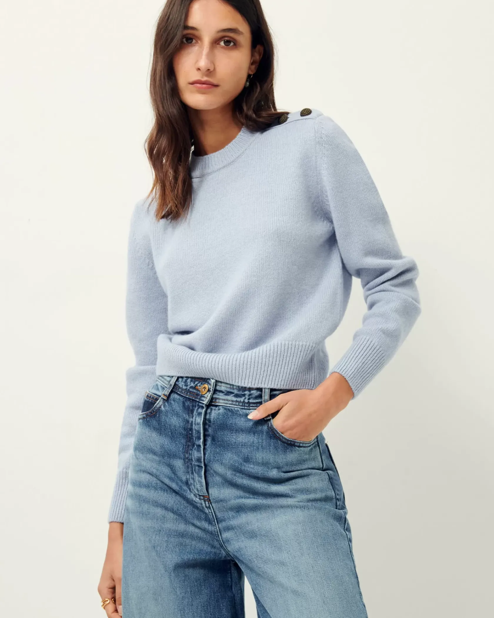 Pull ajusté à patte épaule boutonnée en maille point jersey.