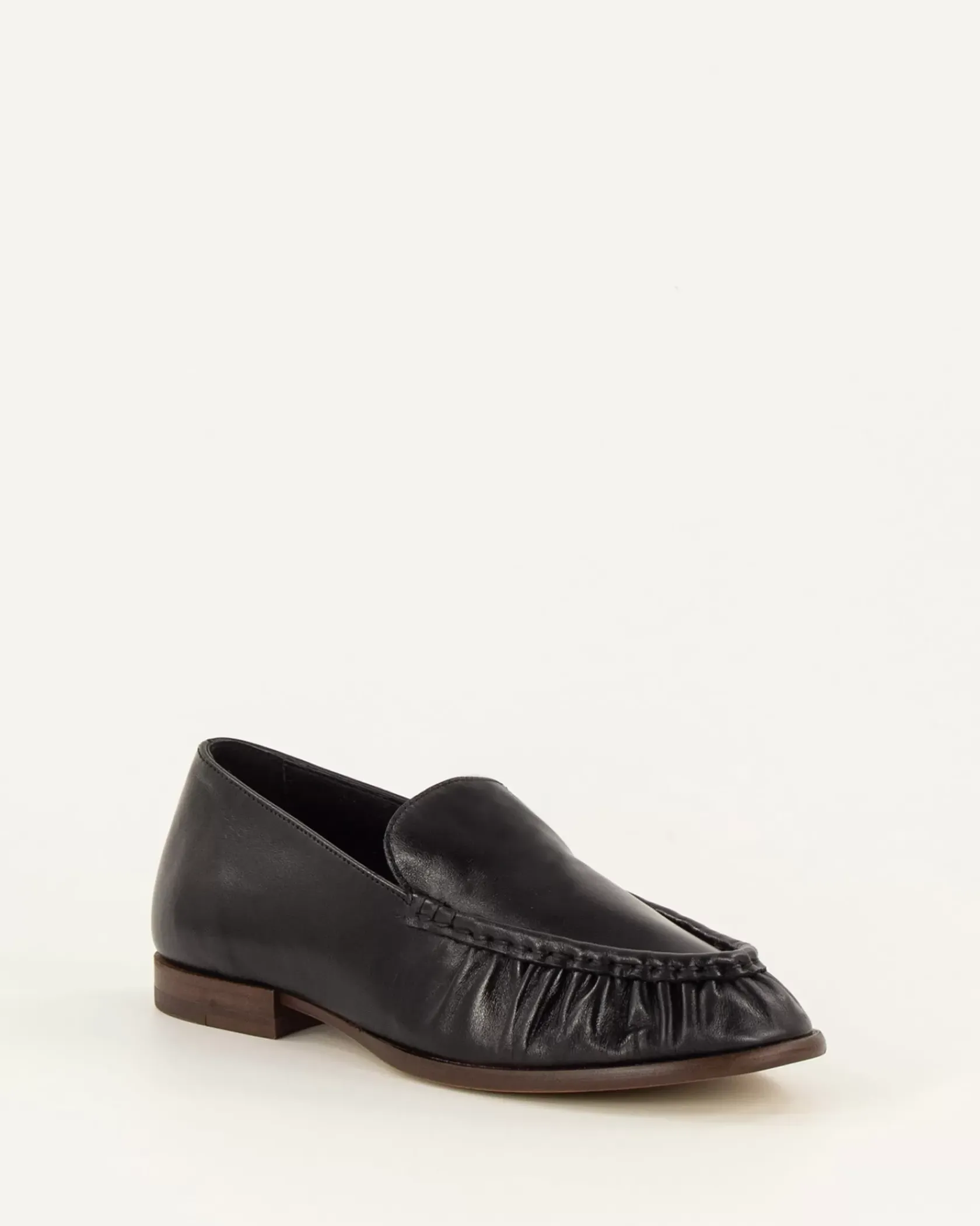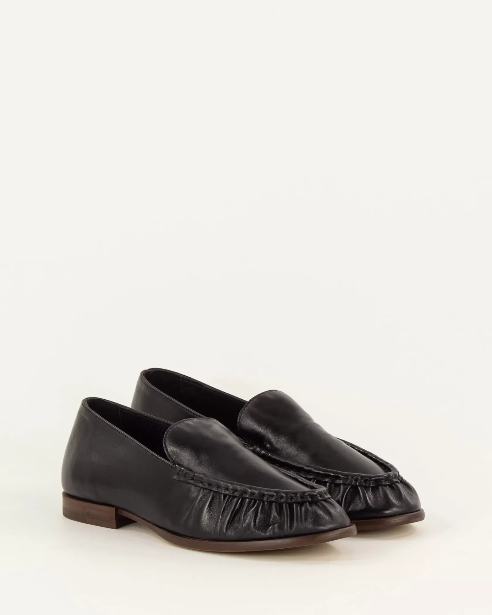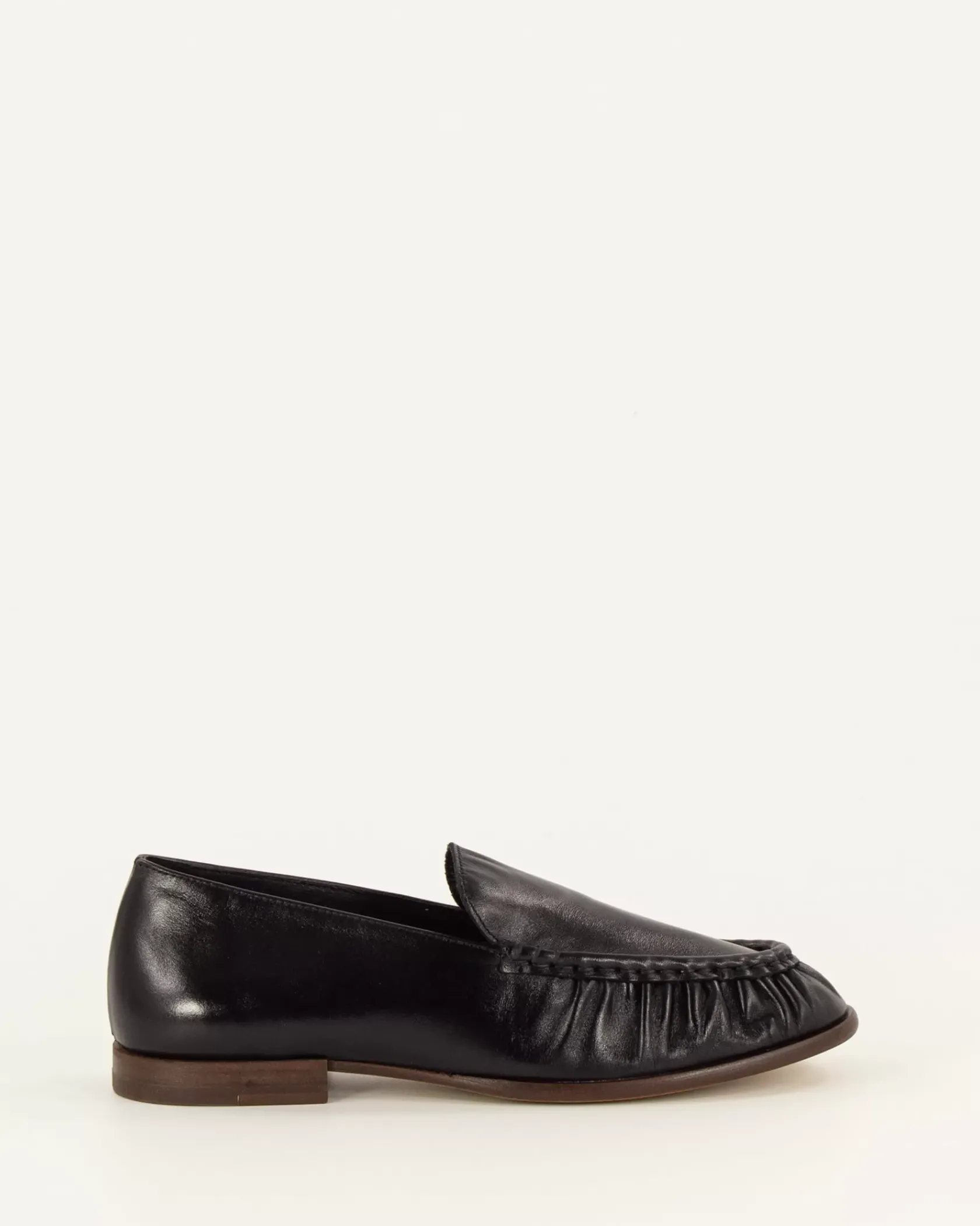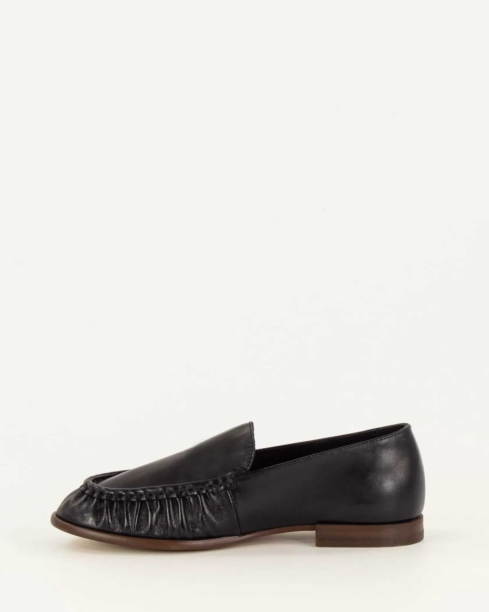 Mocassins souples et plats en cuir de vache, empeigne froncée, confectionnés au Portugal.