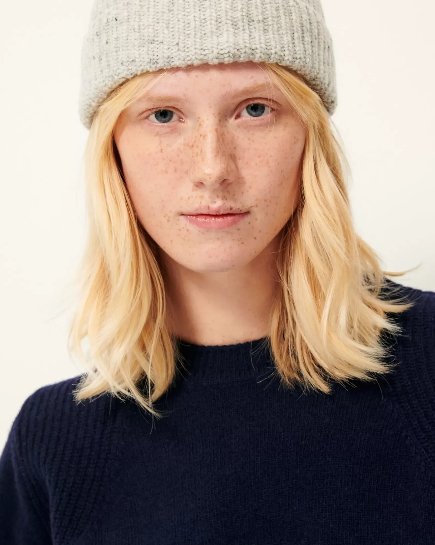 Bonnet marin en maille duveteuse à côtes anglaises.