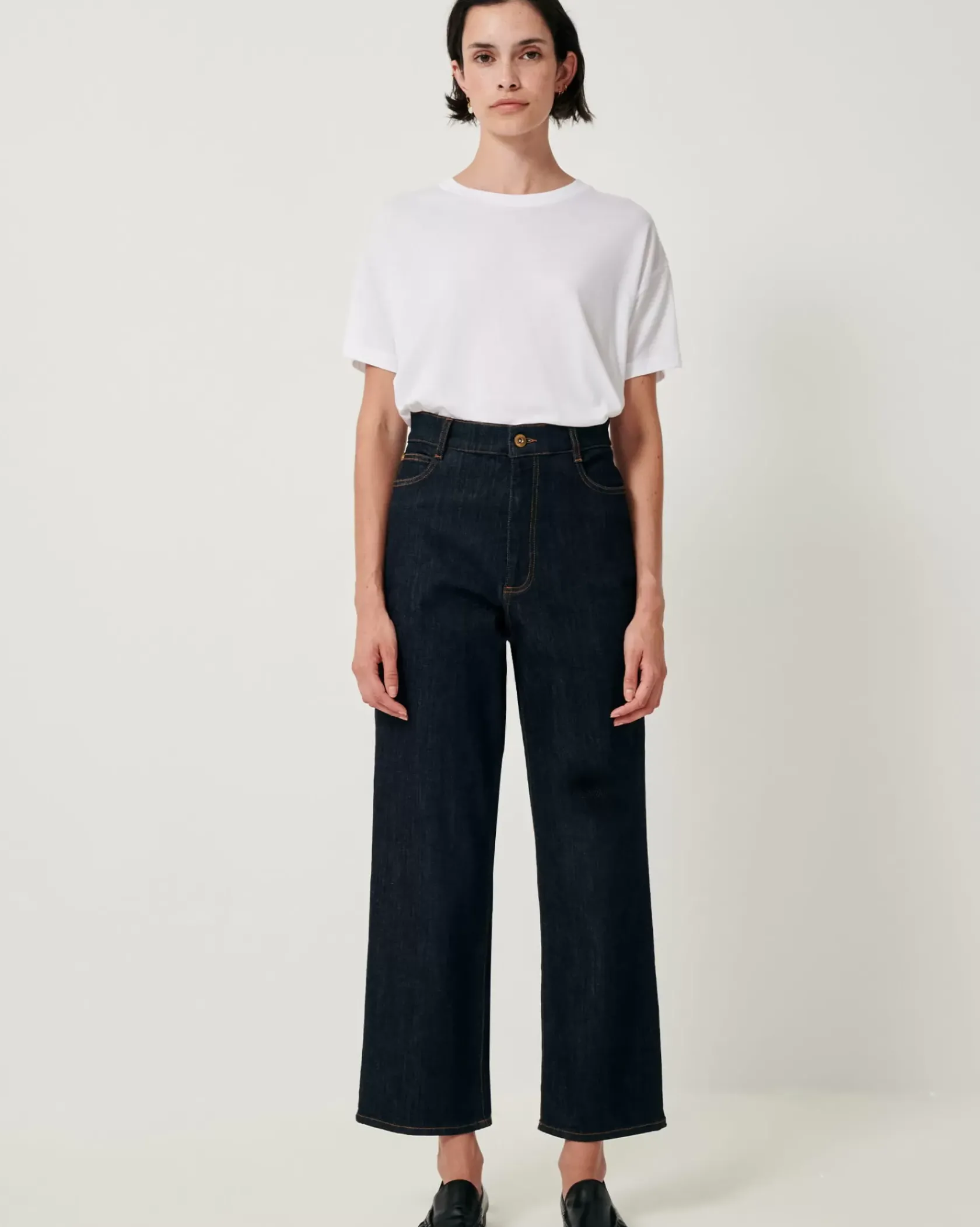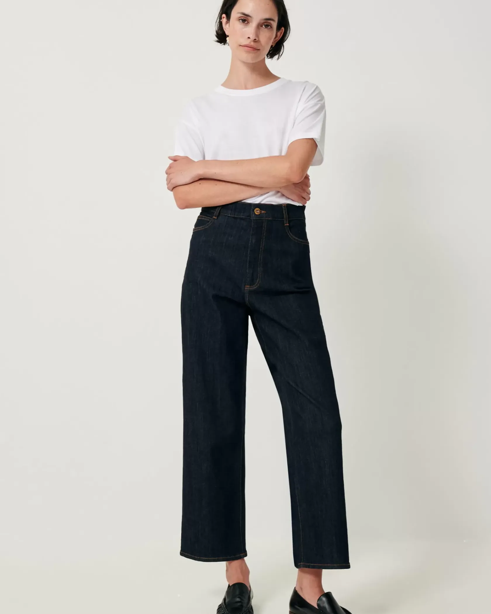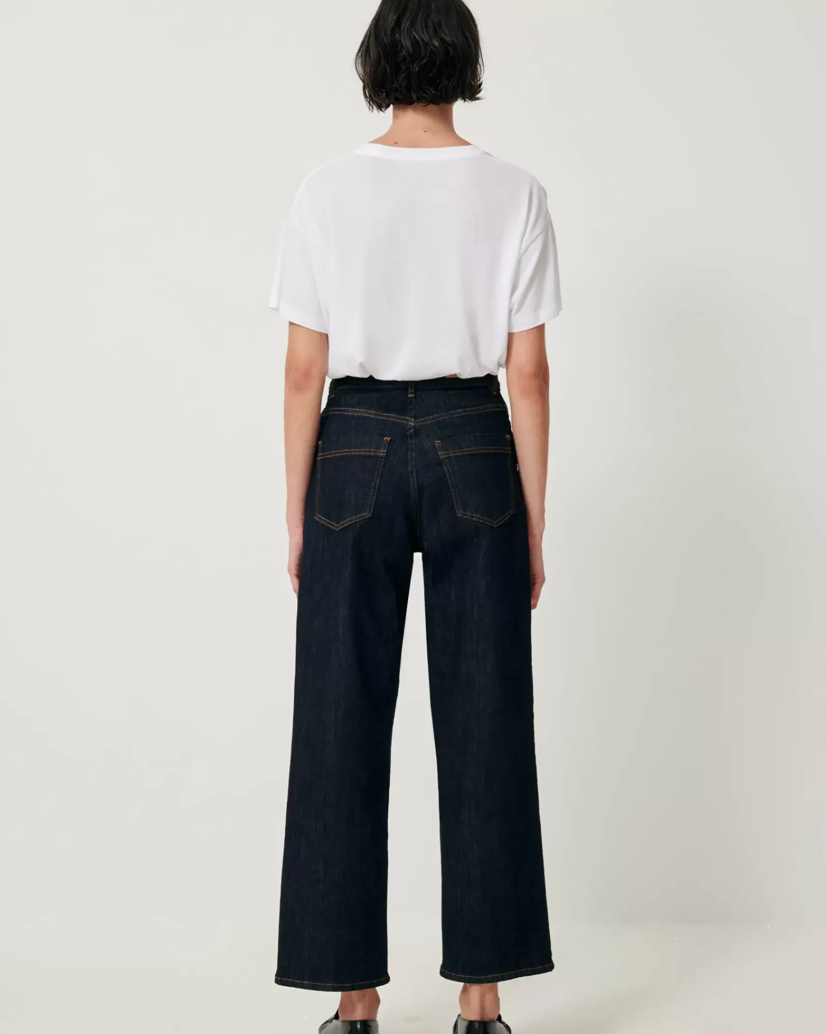 Ce vêtement est réalisé dans une matière contenant des fils teints en Indigo. Ce procédé très particulier révèle les spécificités de chaque tissu et peut créer des variations de couleur et des irrégularités, rendant chaque pièce unique.