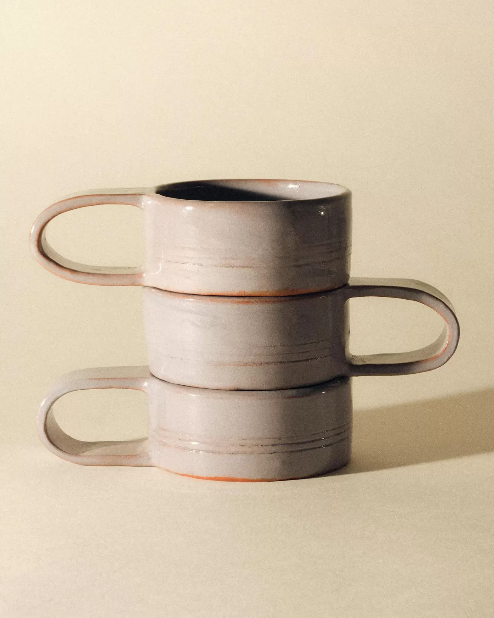 Notre tasse revisitée dans des coloris d’été aux tons pastels. Son dessin à large anse inspiré des années 1960 est engravé de lignes discrètes.