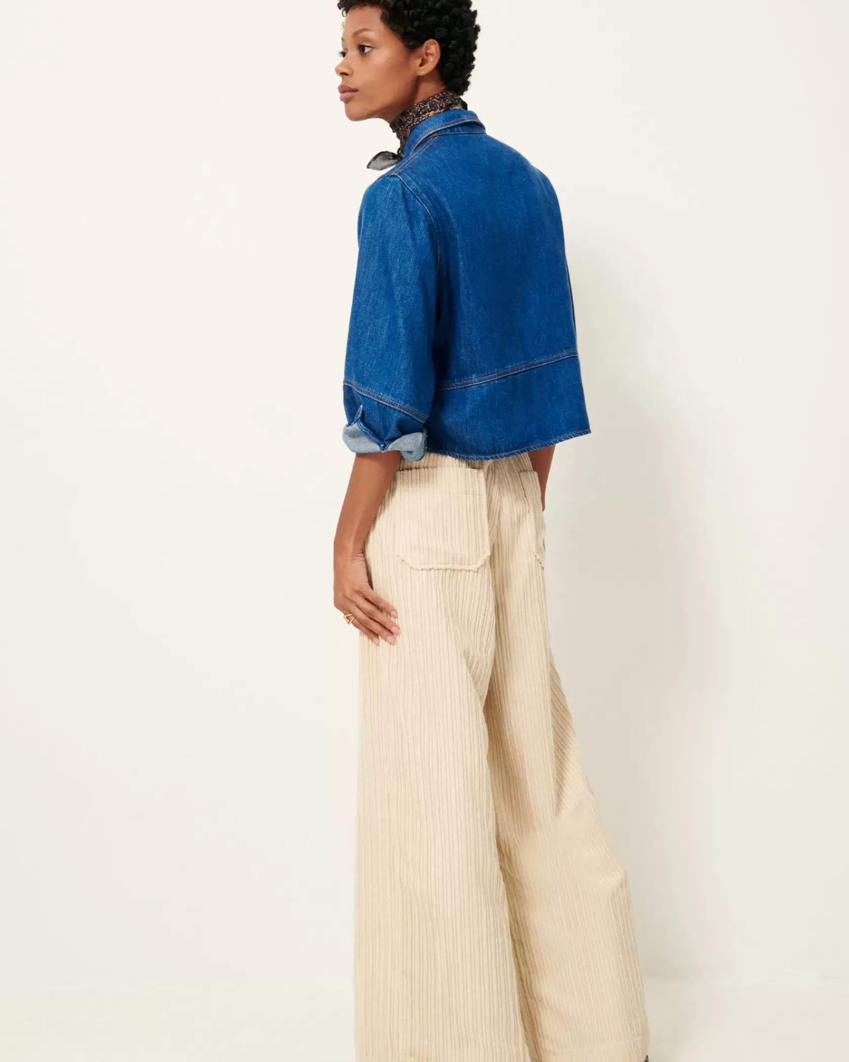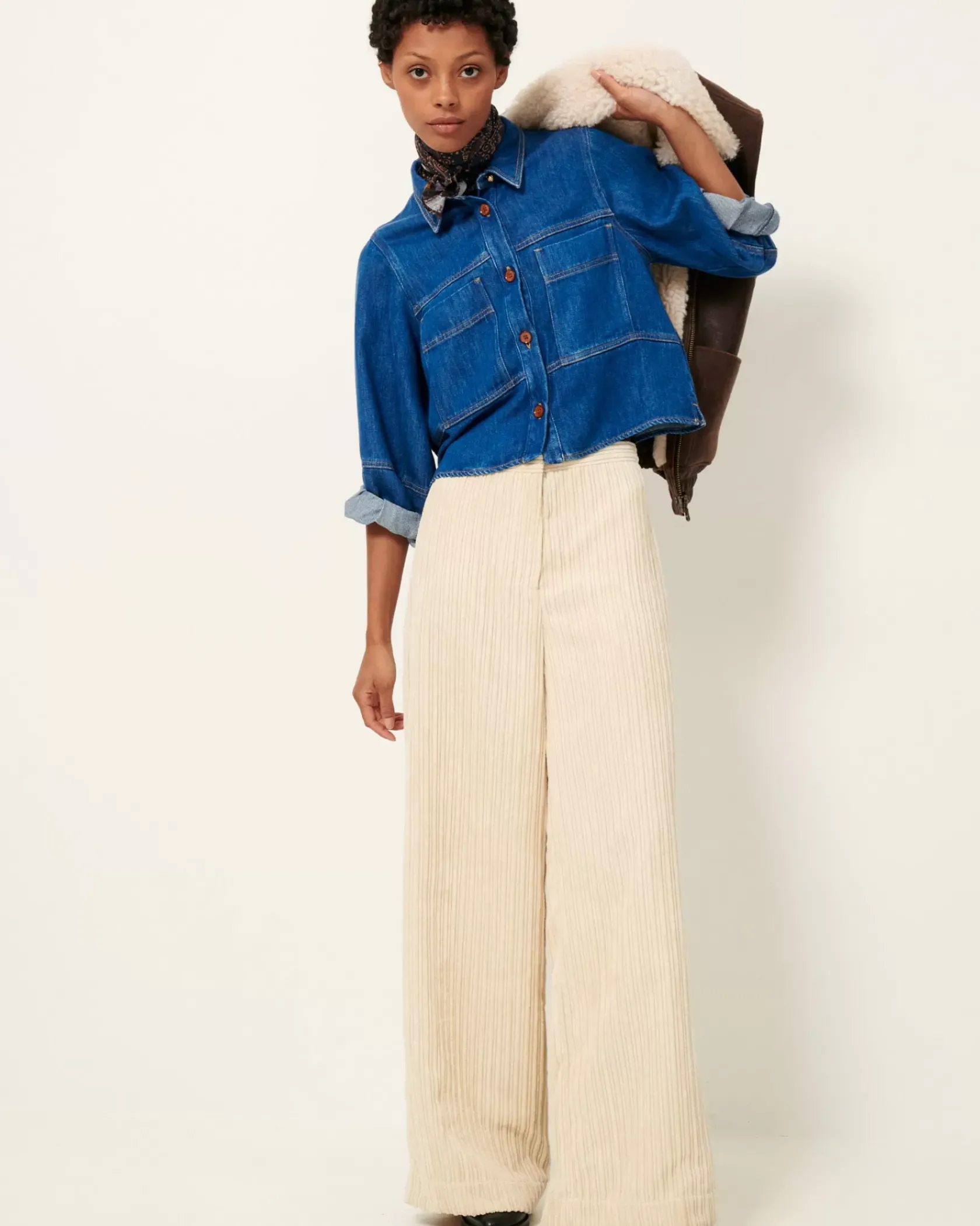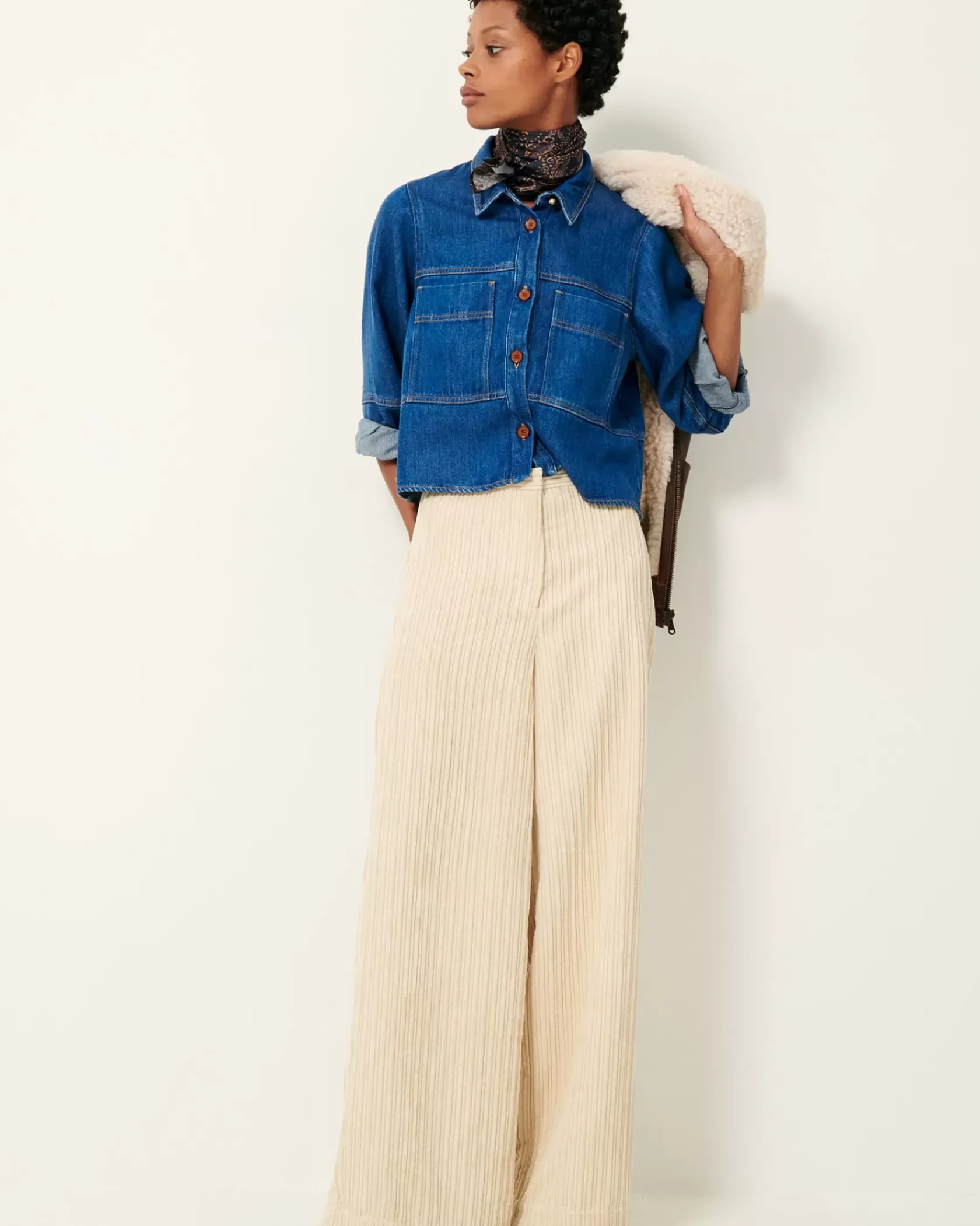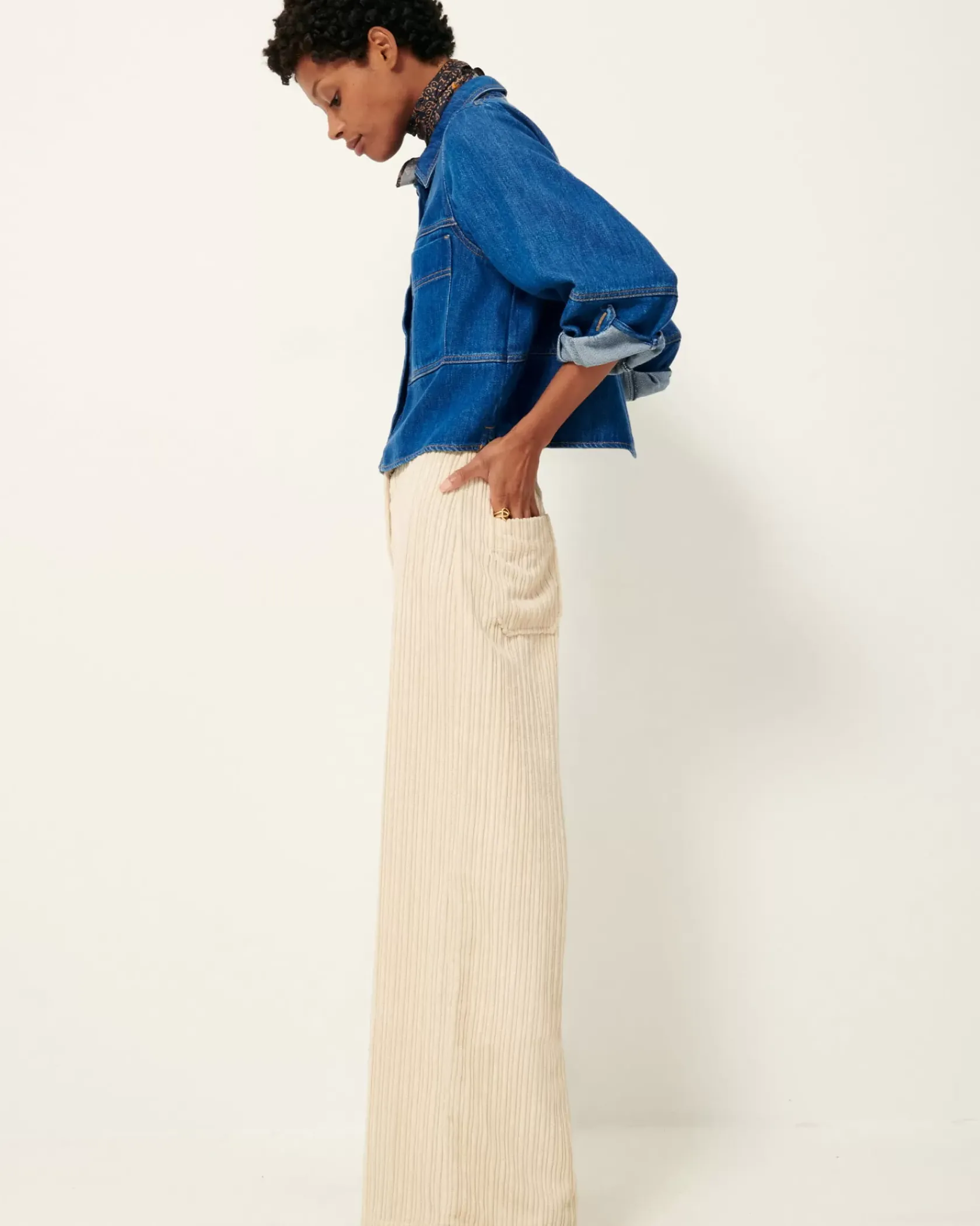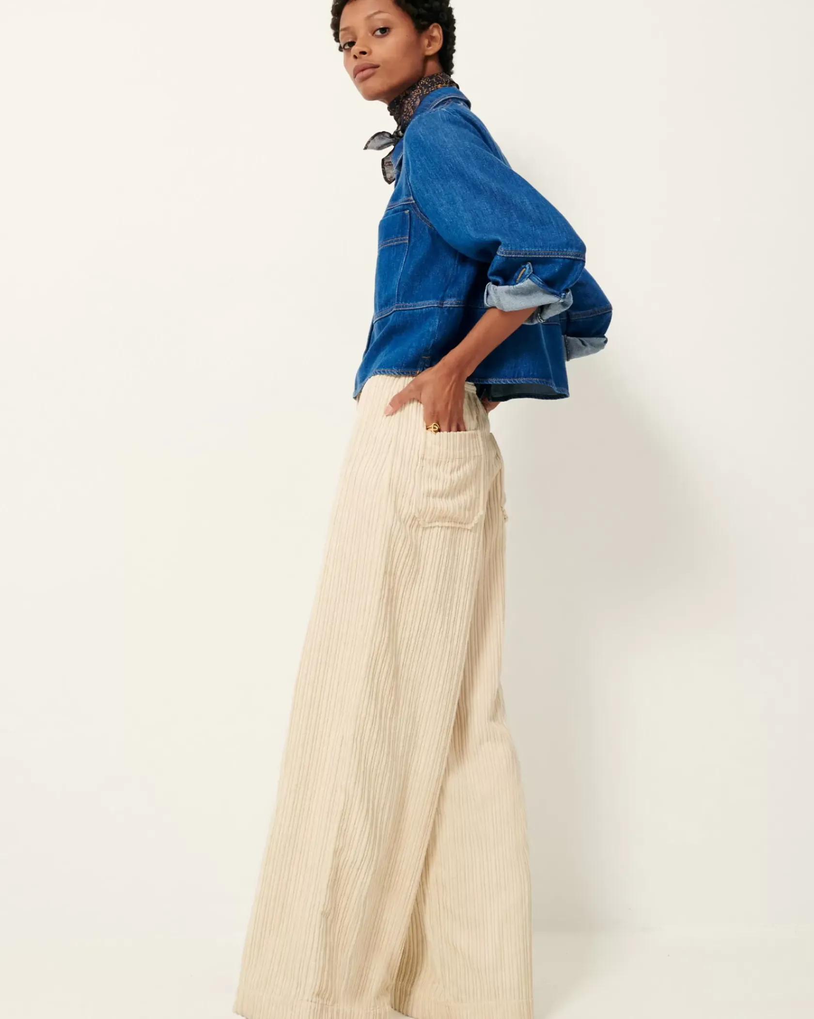Pantalon évasé taille haute en velours côtelé à côtes irrégulières.