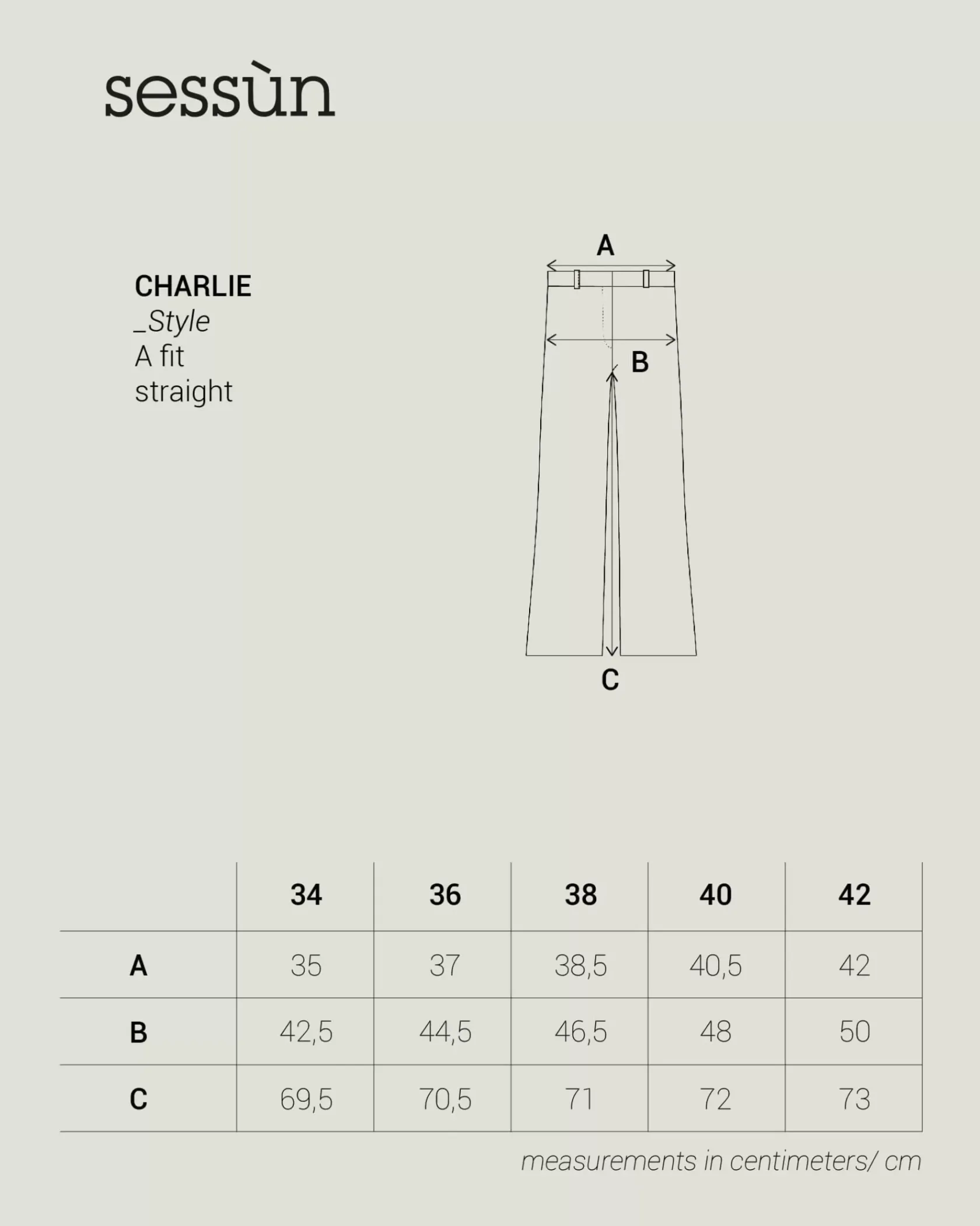 | Size | 34, 36, 38, 40, 42 |