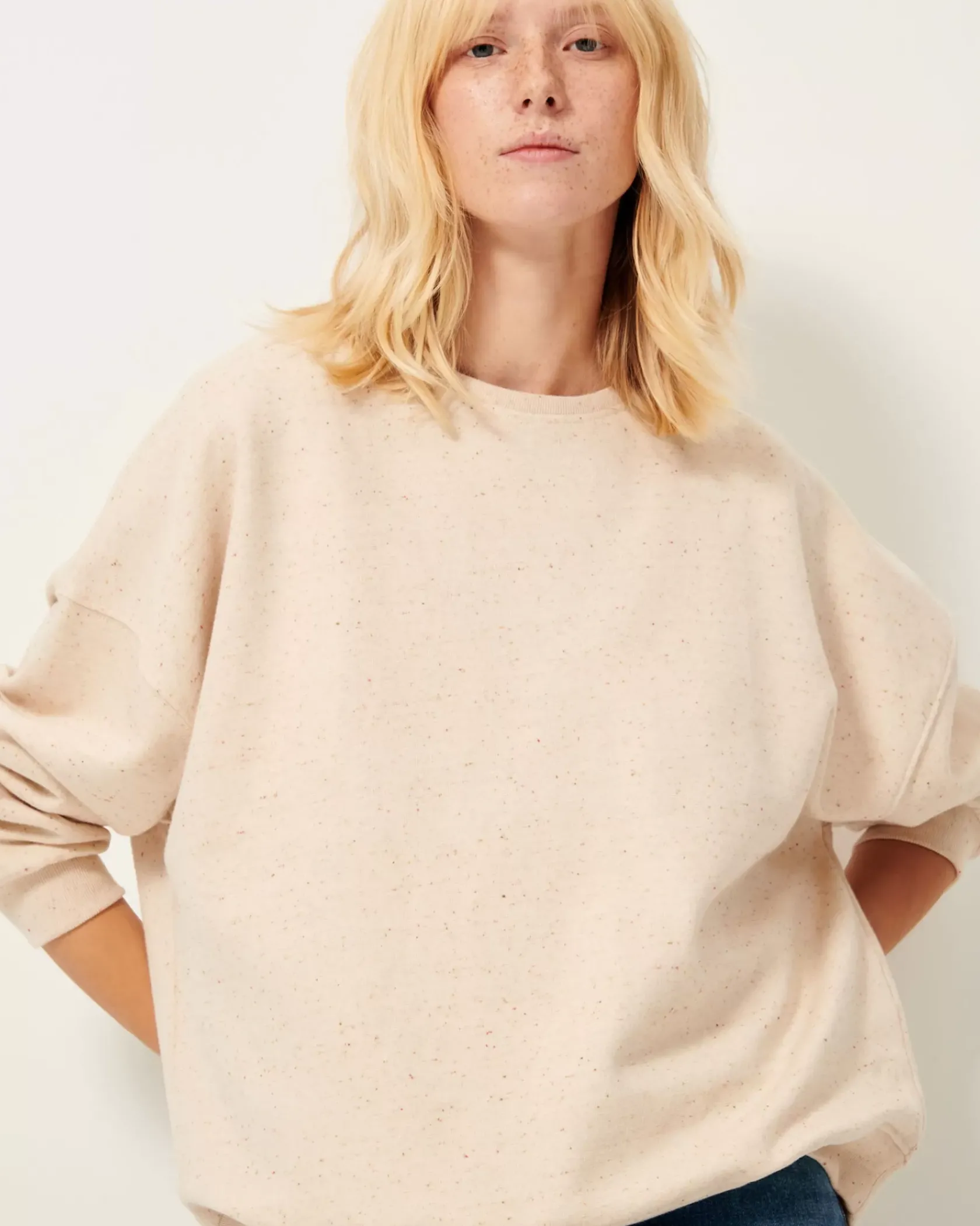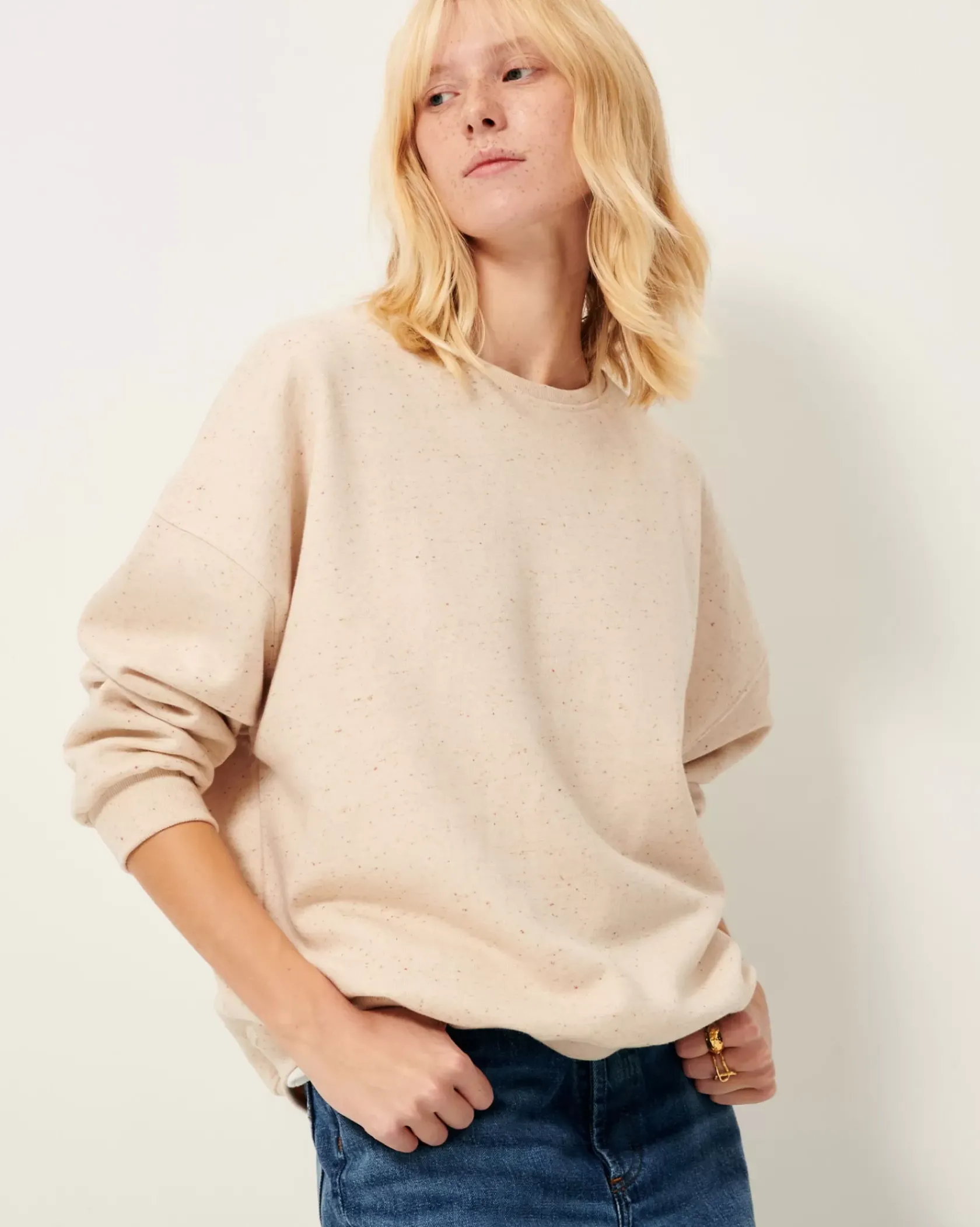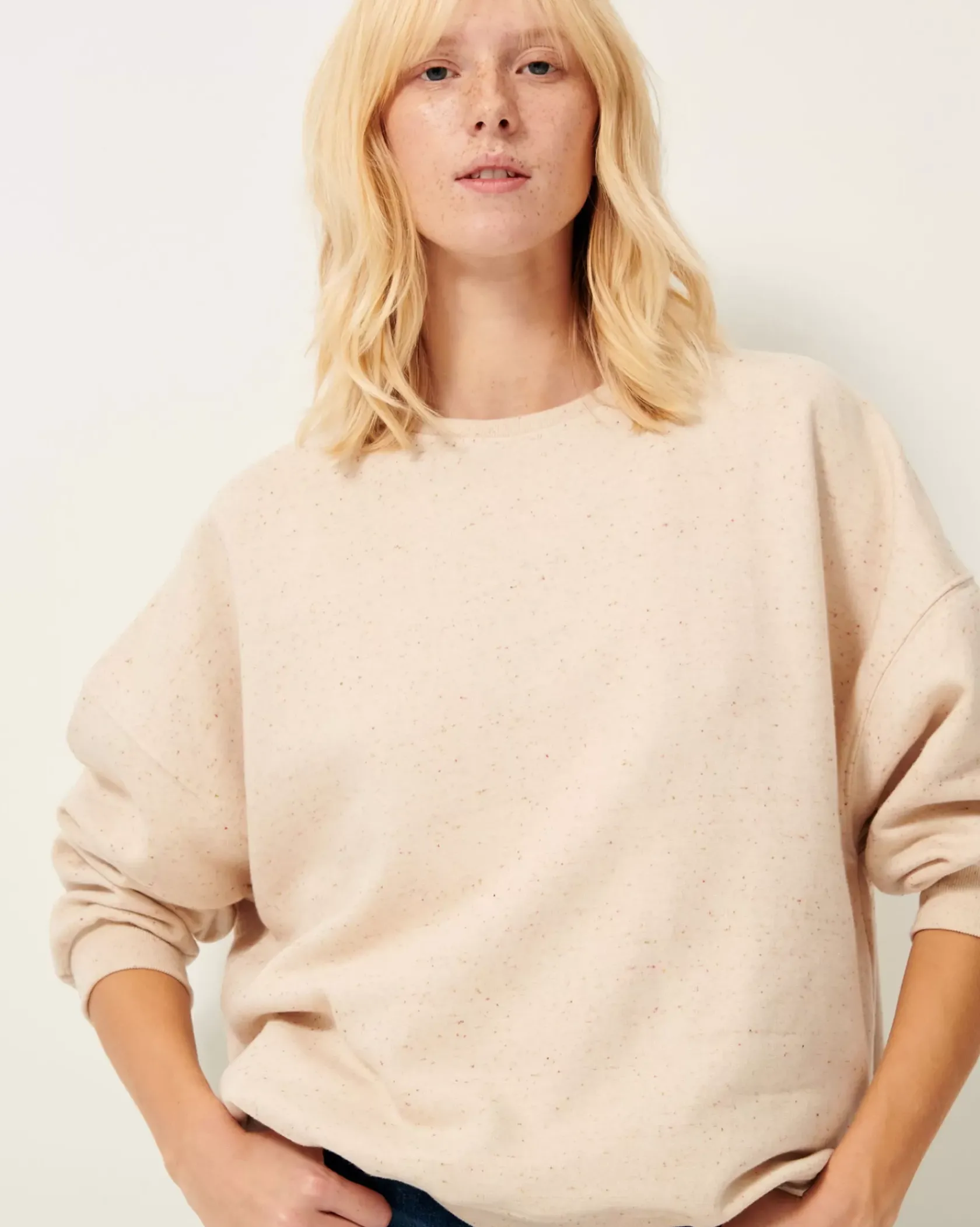 Sweat oversize en molleton chiné boutonné.