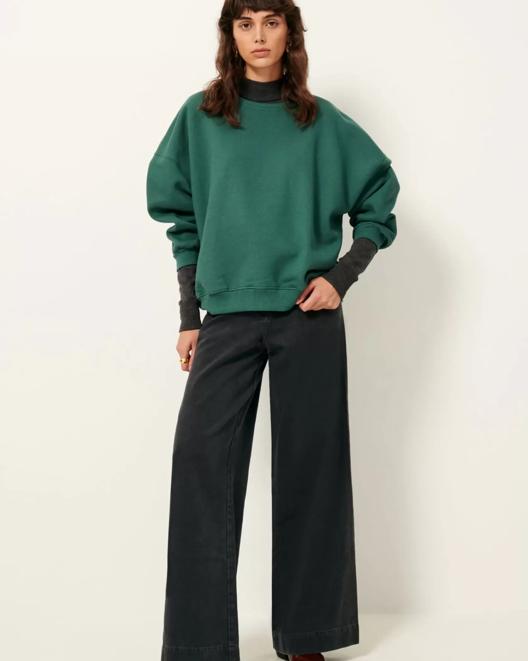 Sweat oversize en molleton chiné boutonné confectionné au Portugal.