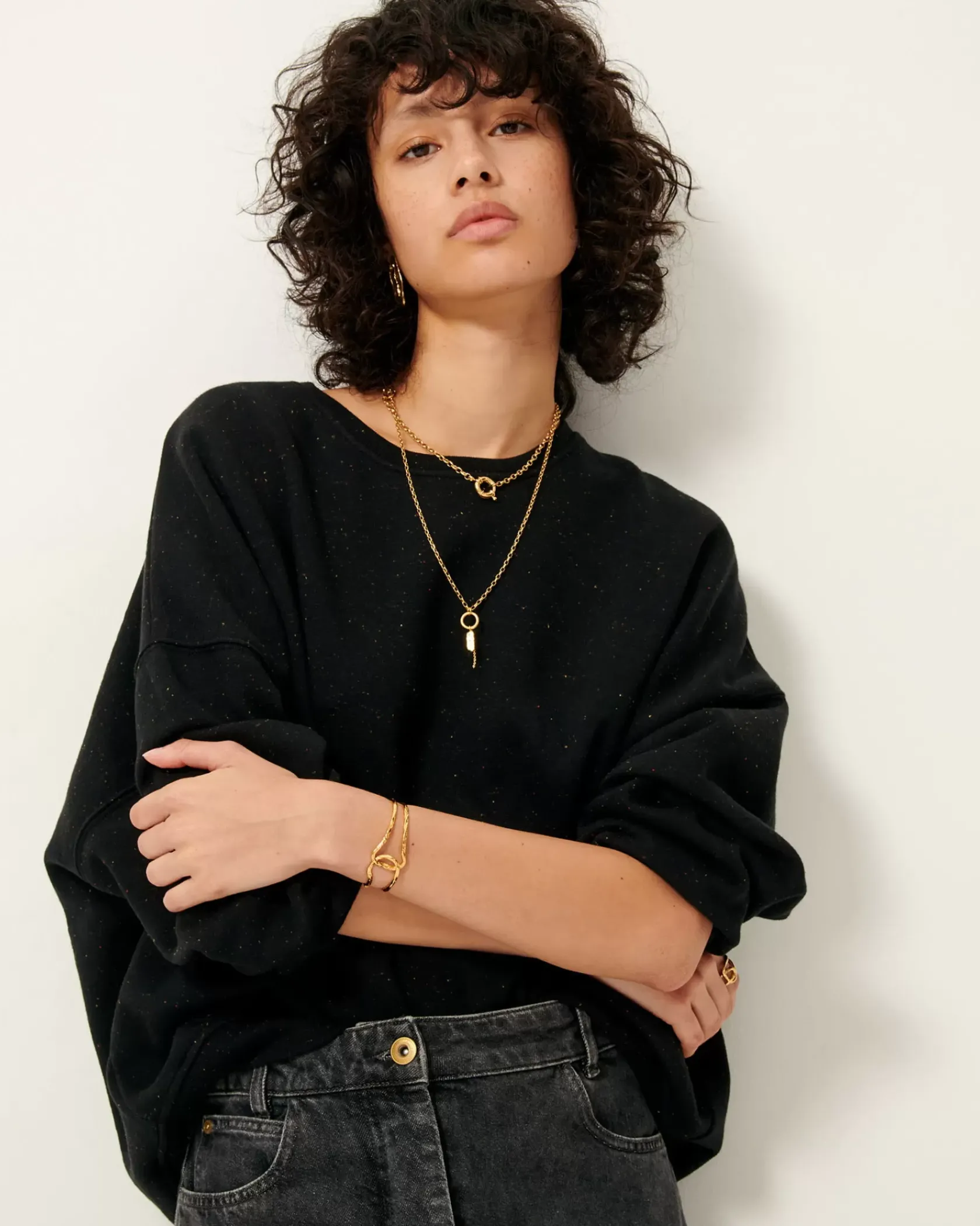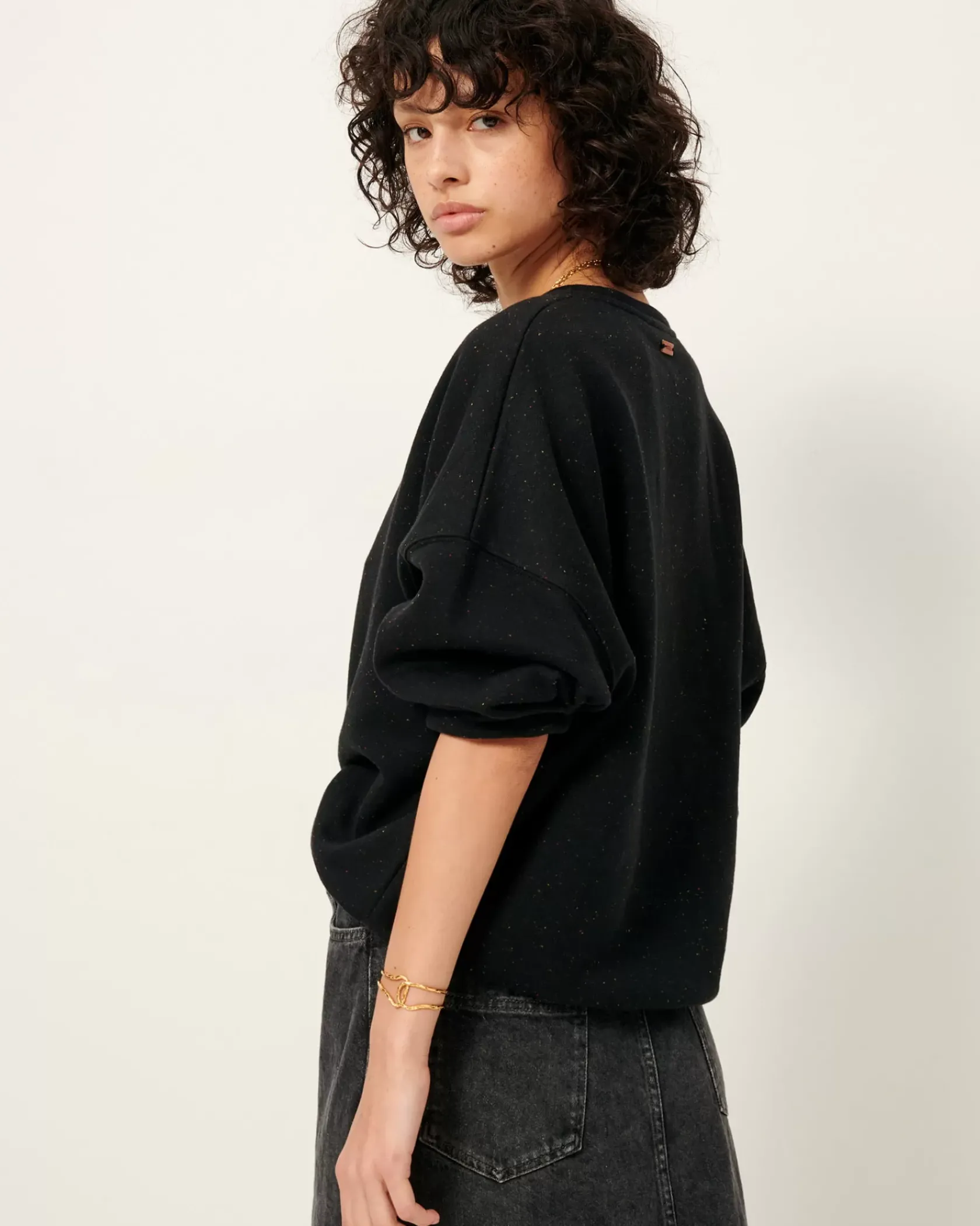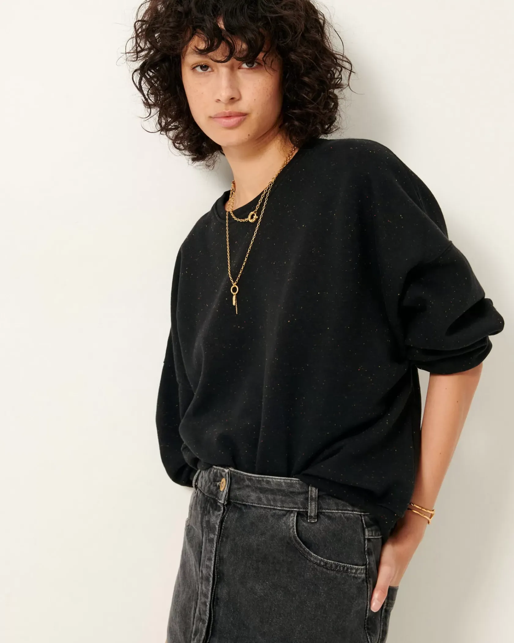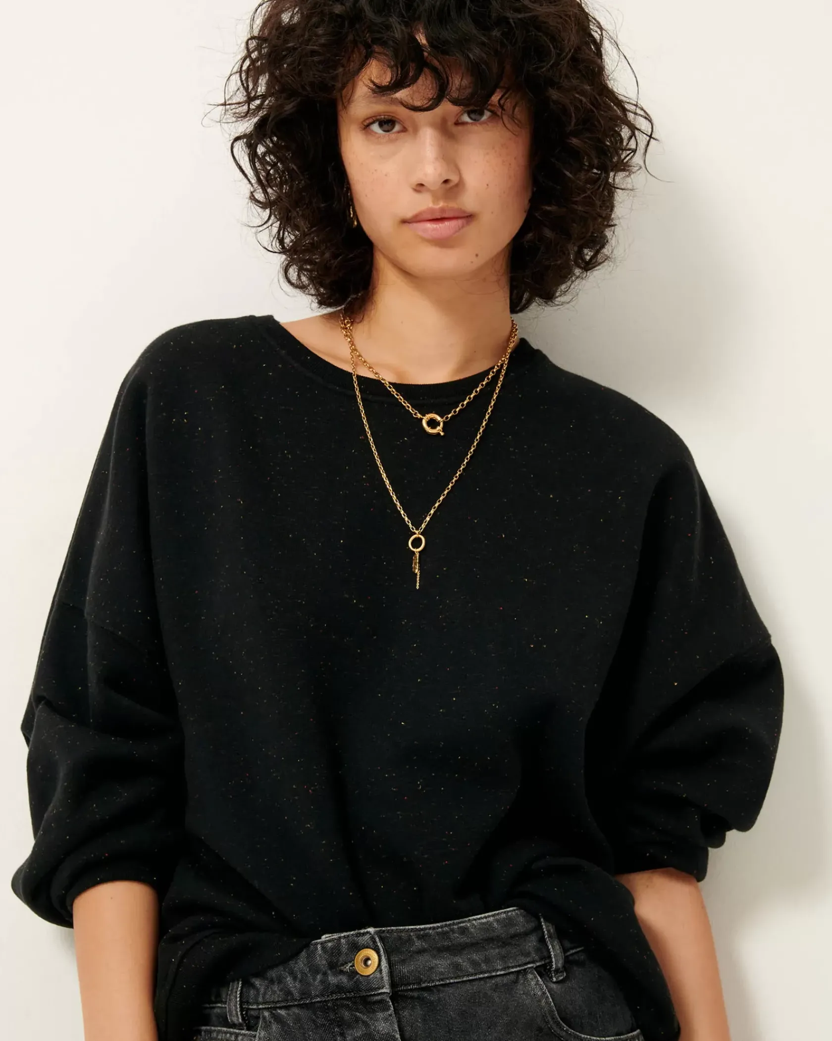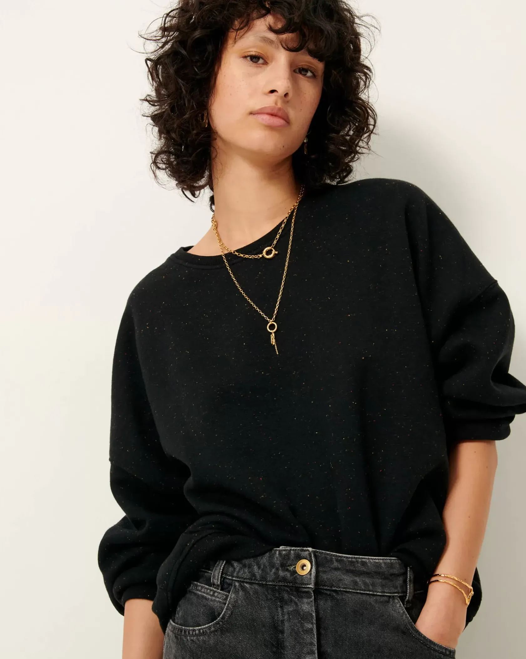 Sweat oversize en molleton chiné boutonné.