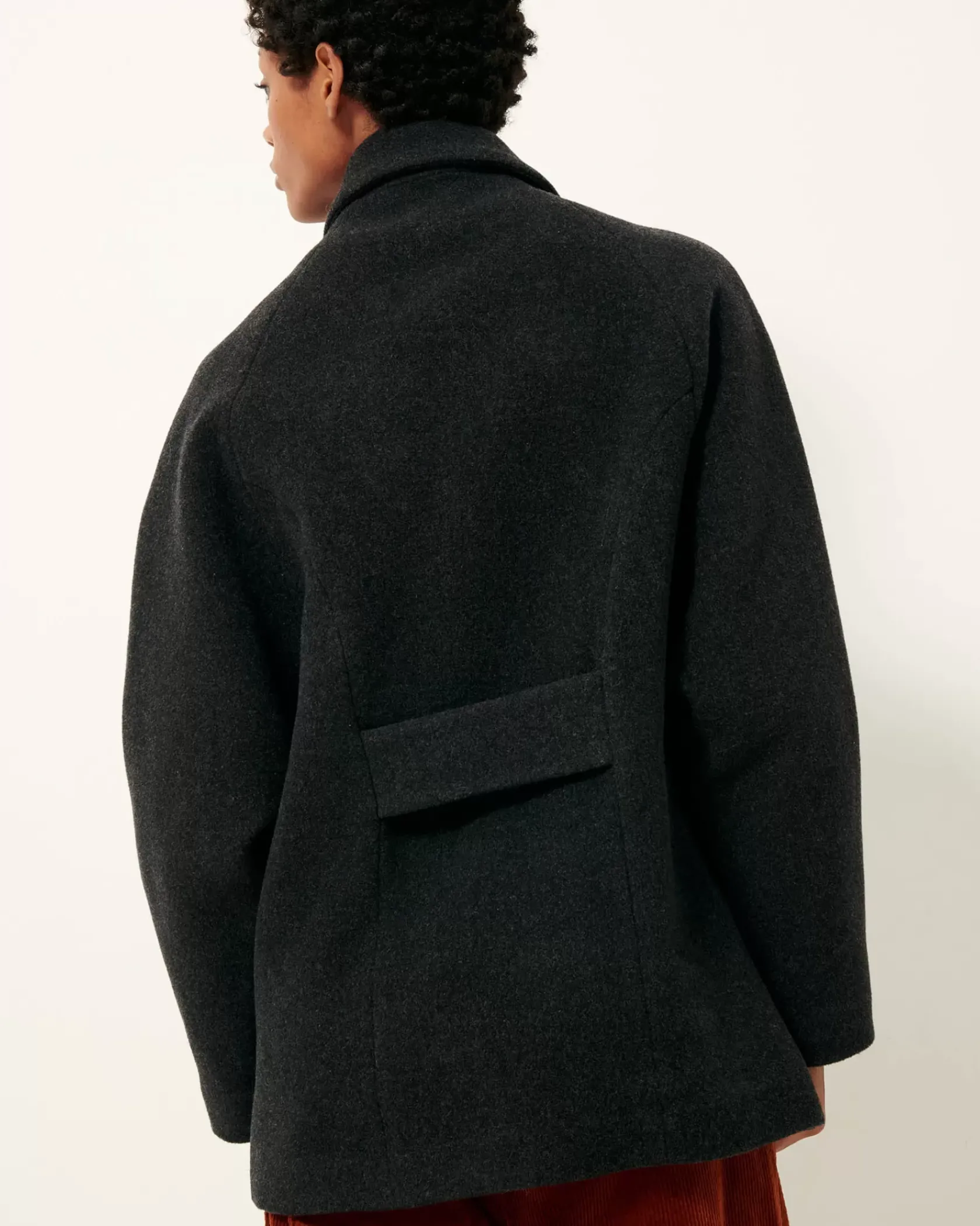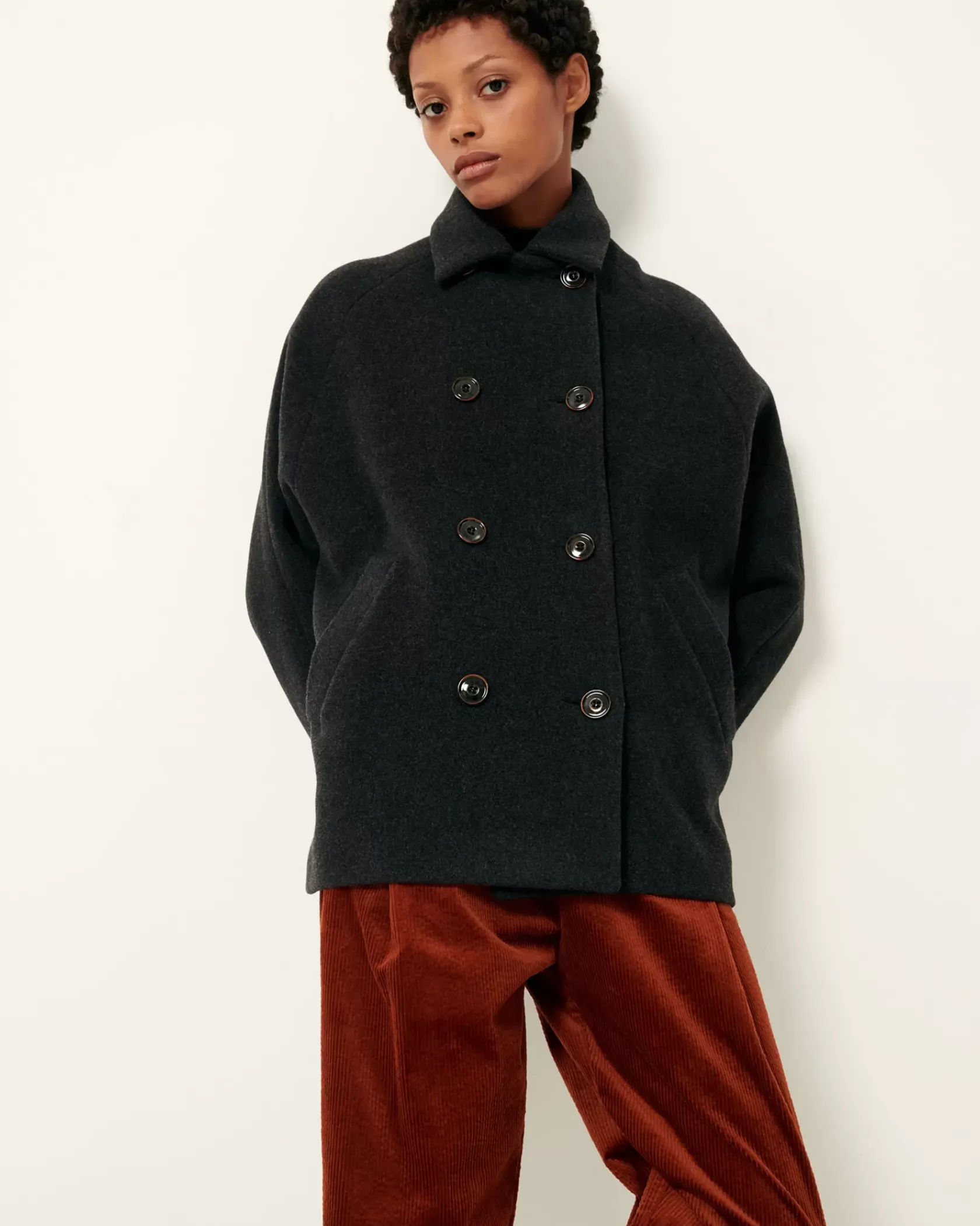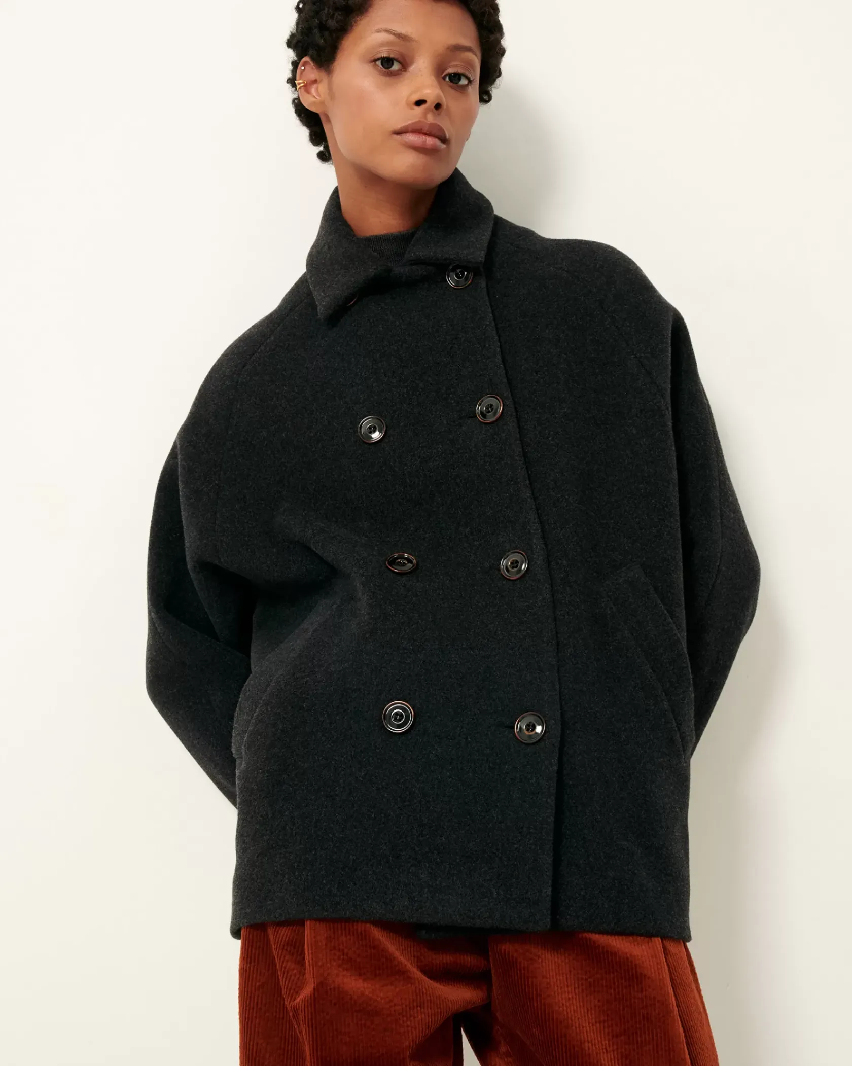 Caban à double boutonnage en flanelle double tissage finition velvet tissée en Italie.