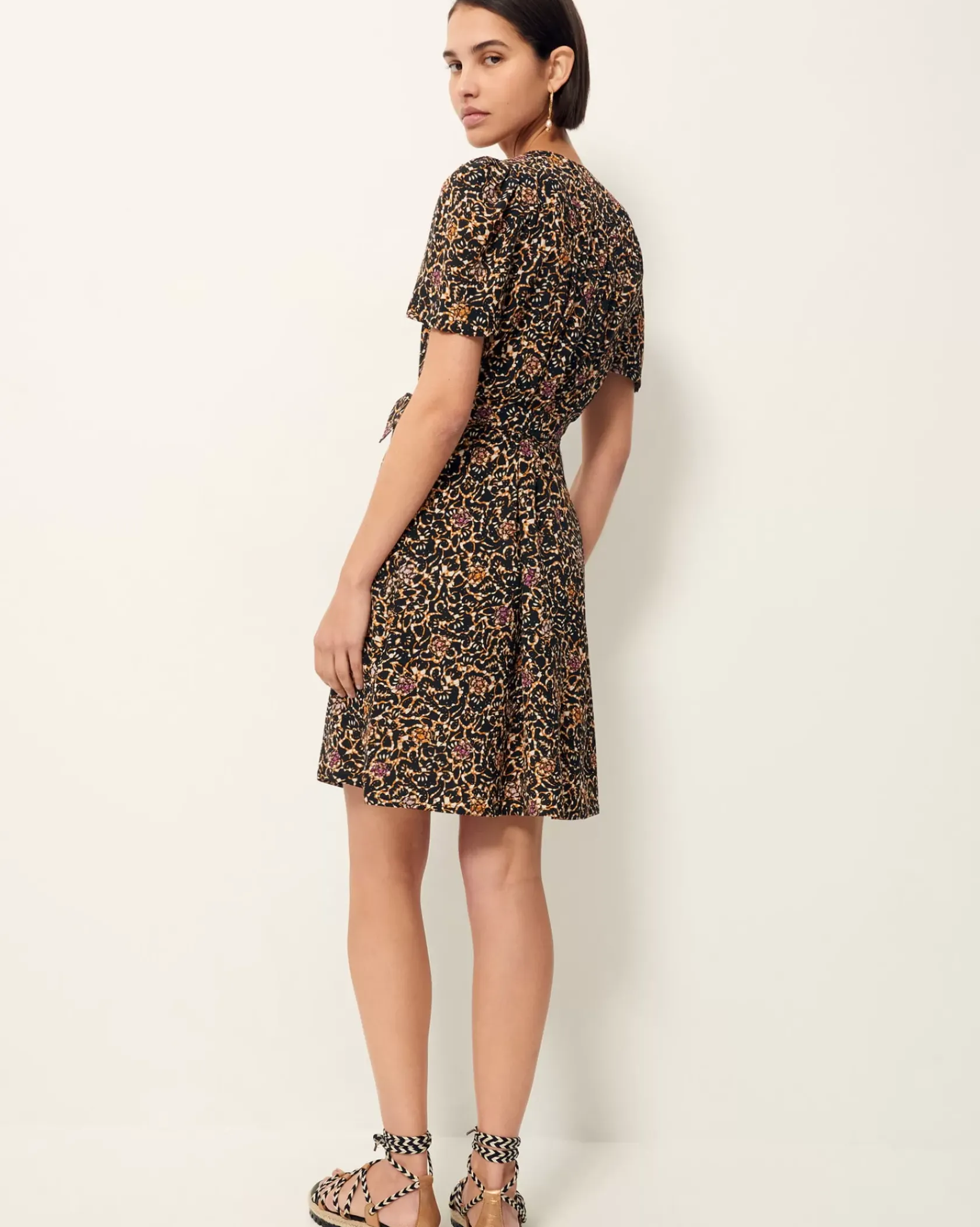 Robe courte boutonnée en toile de viscose fluide et aérienne imprimée, motif exclusif Sessùn.