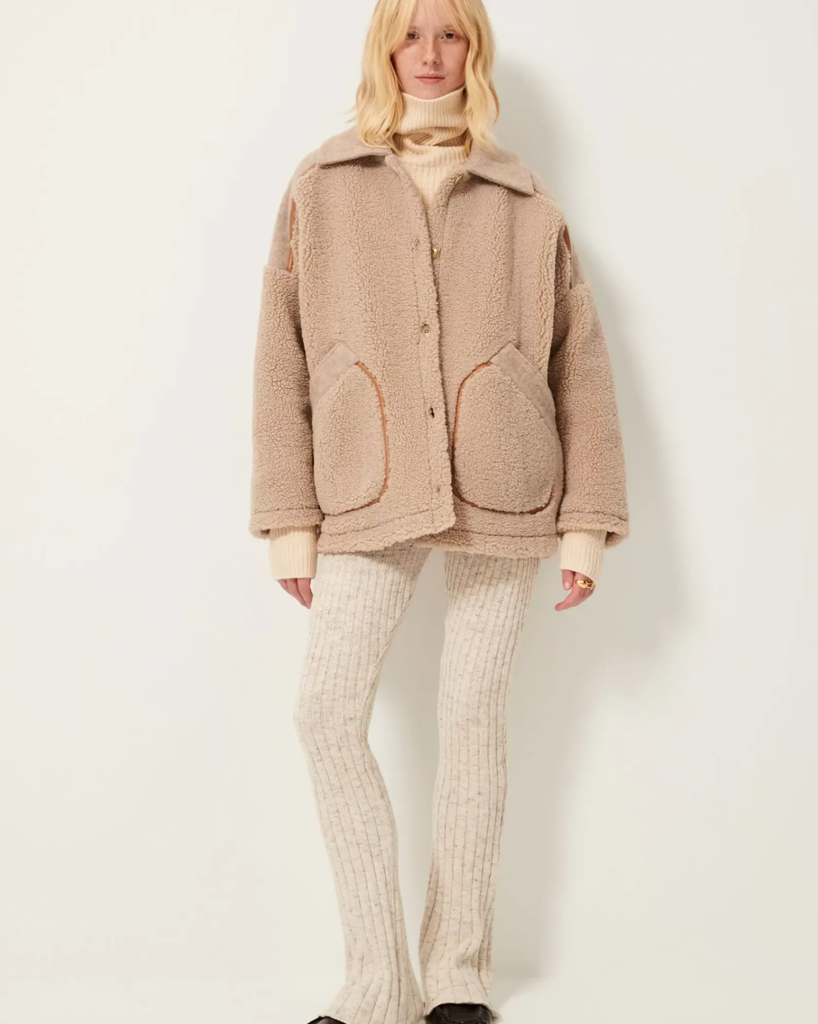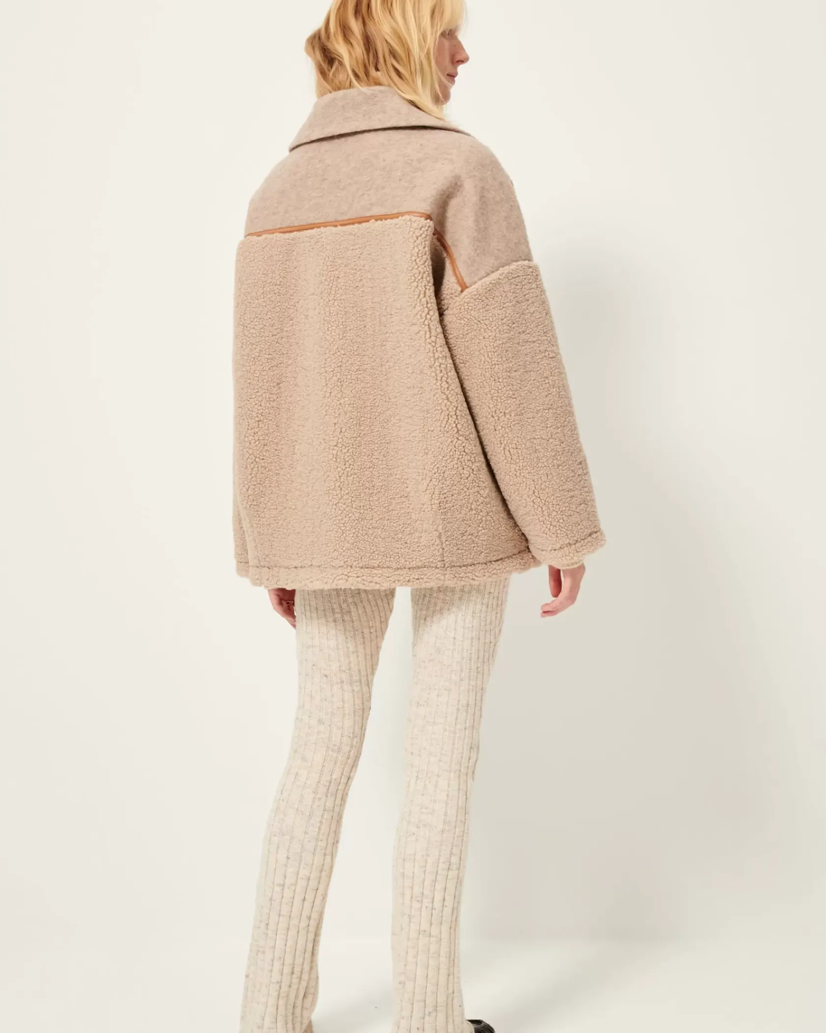 Pantalon près du corps et évasé en maille à côtes régulières en fil chiné boutonné.