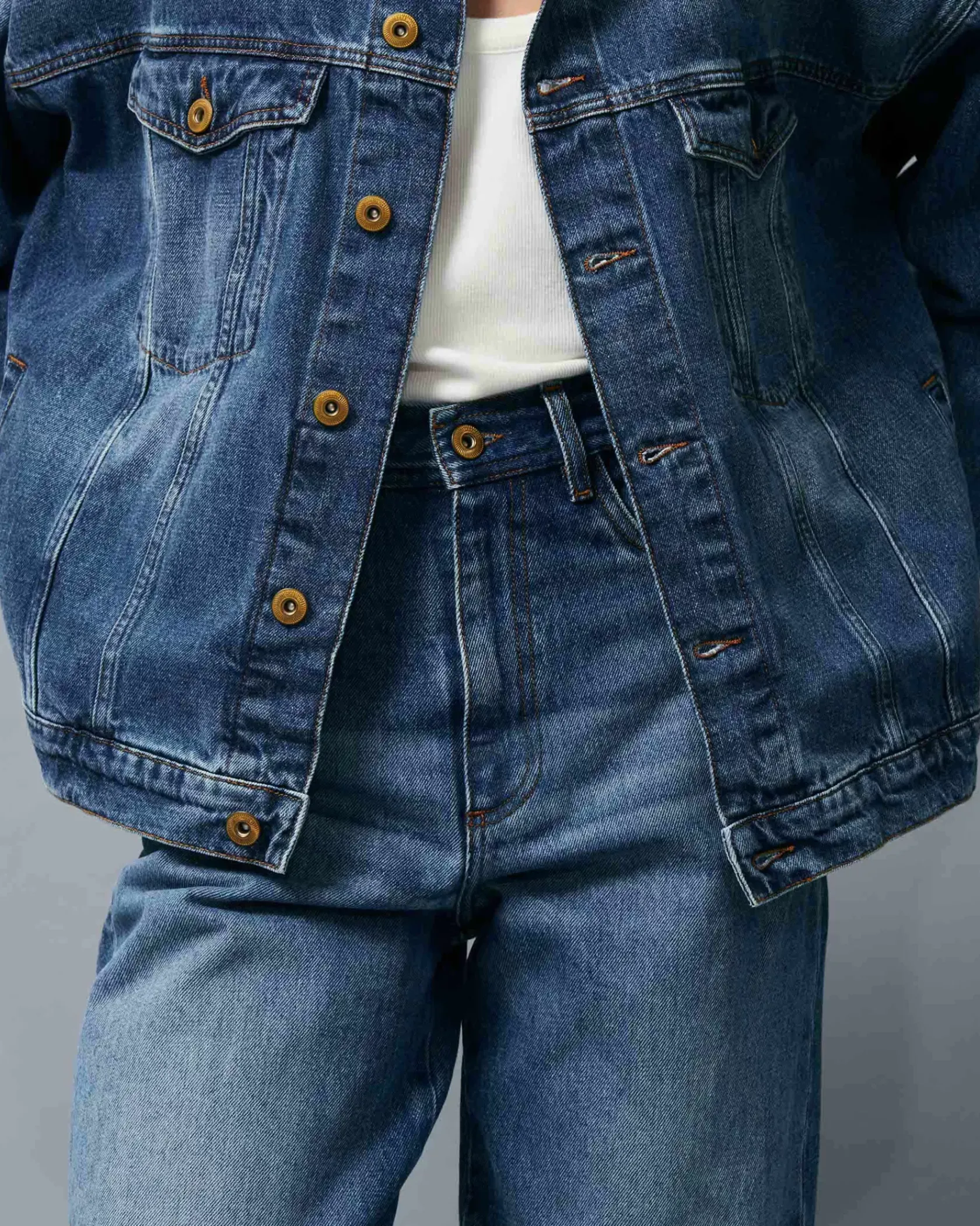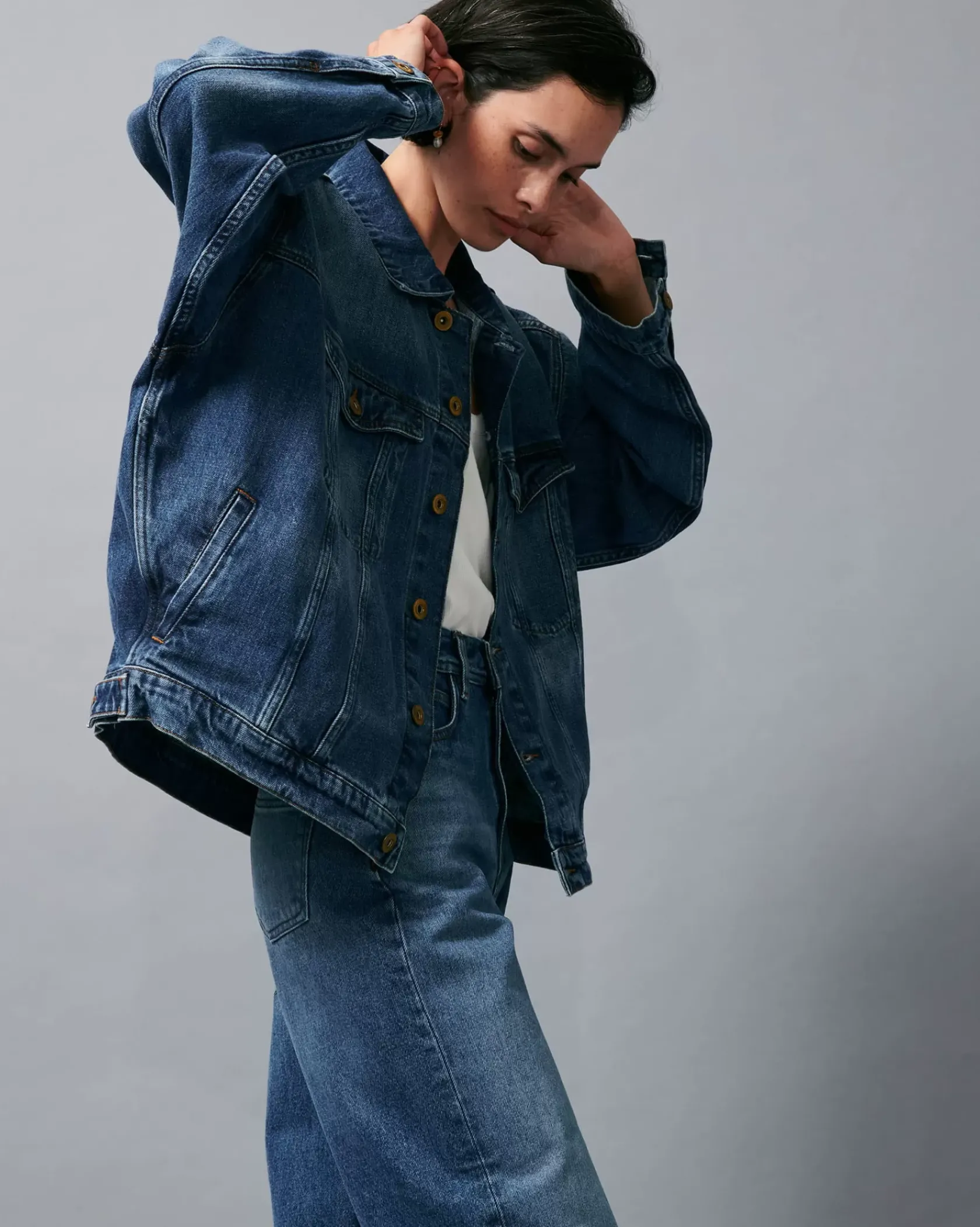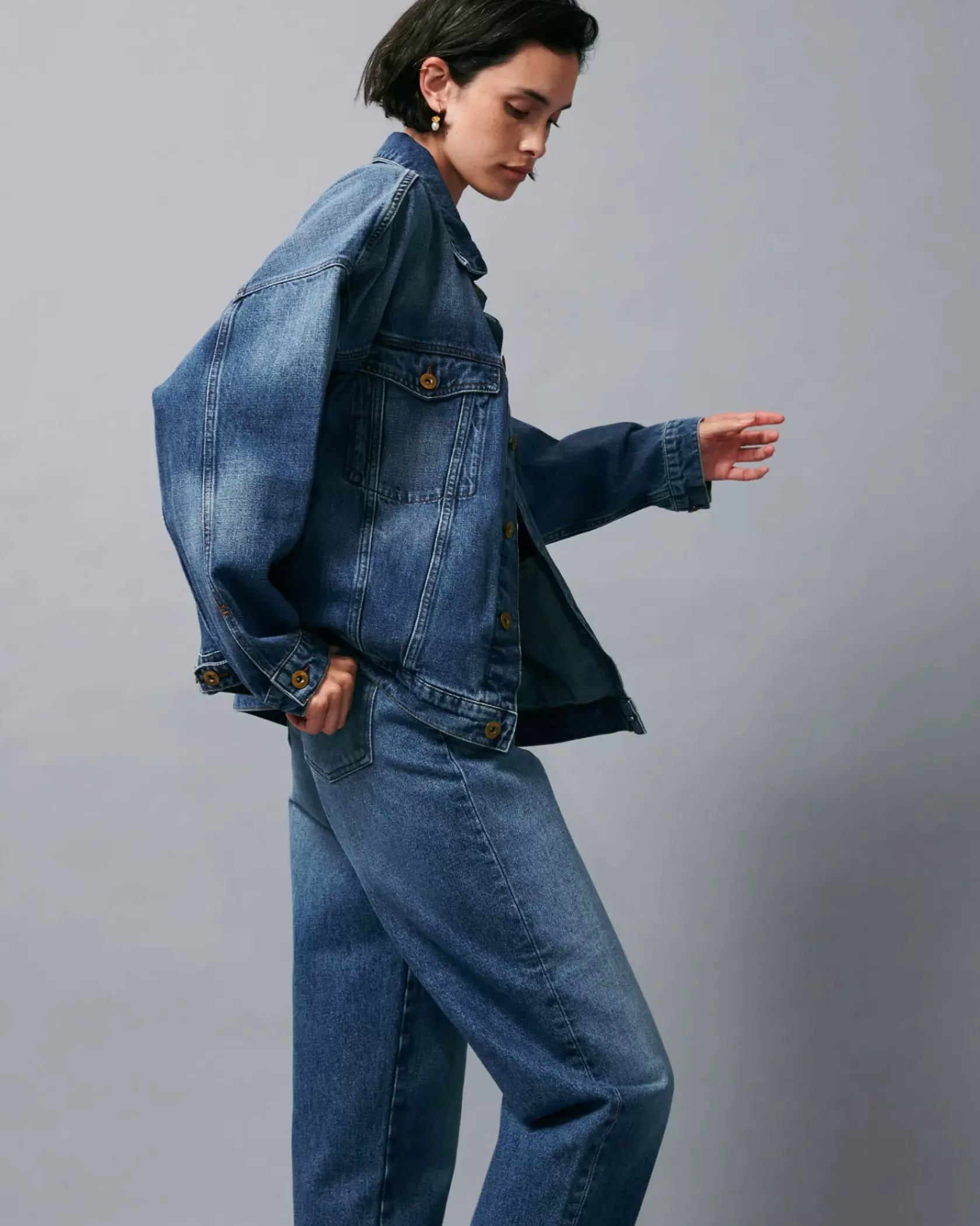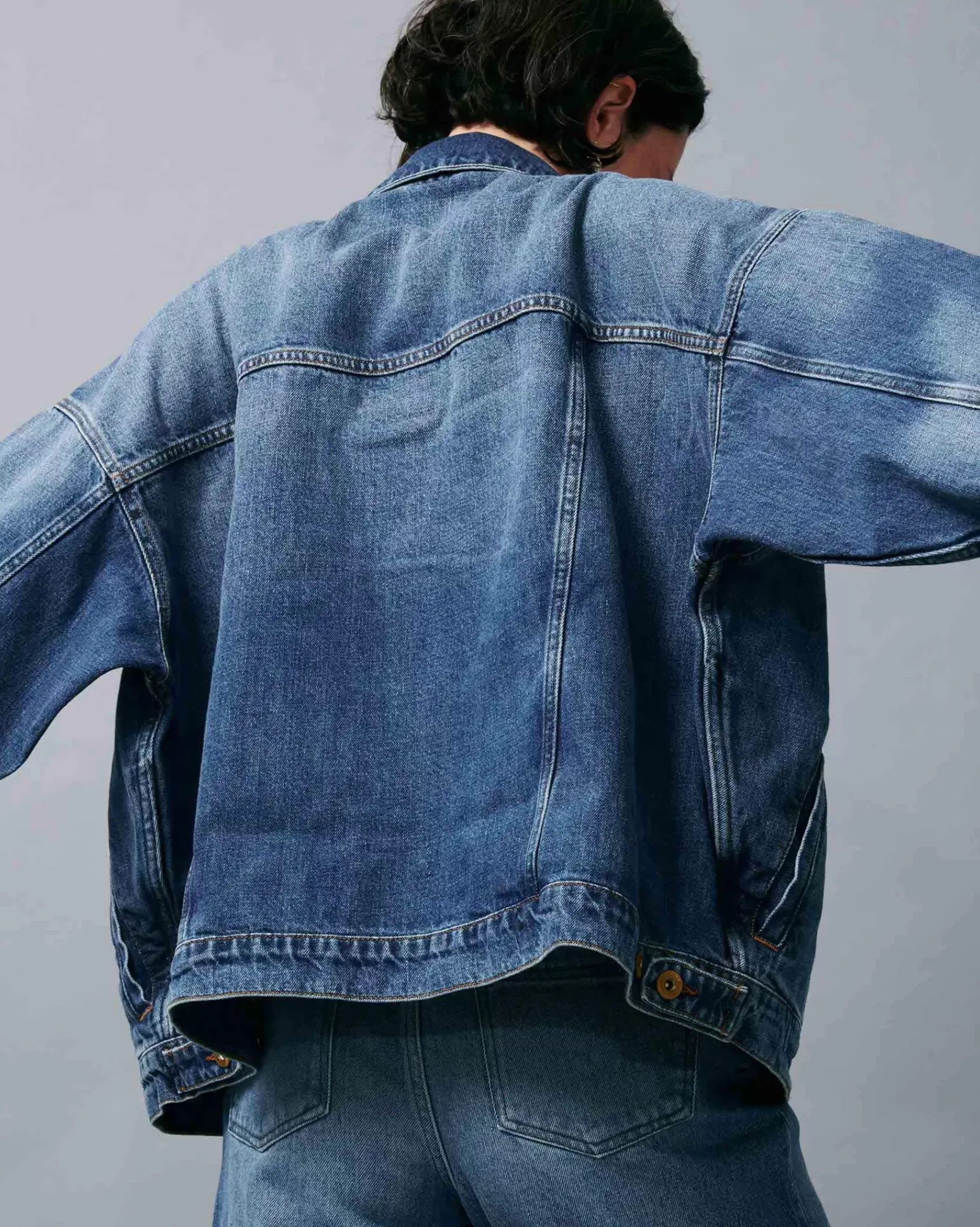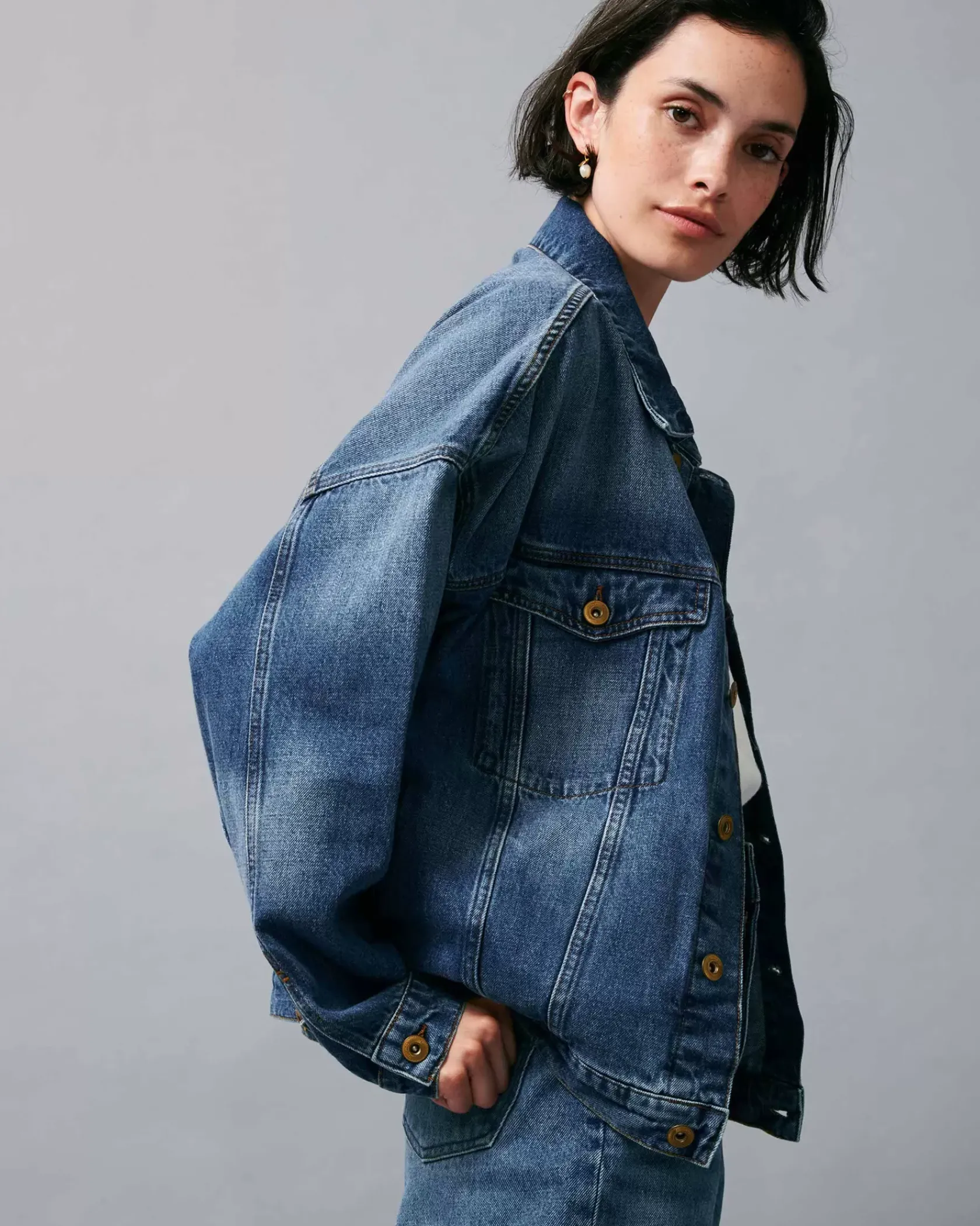 Blouson oversize en denim stonewashé.