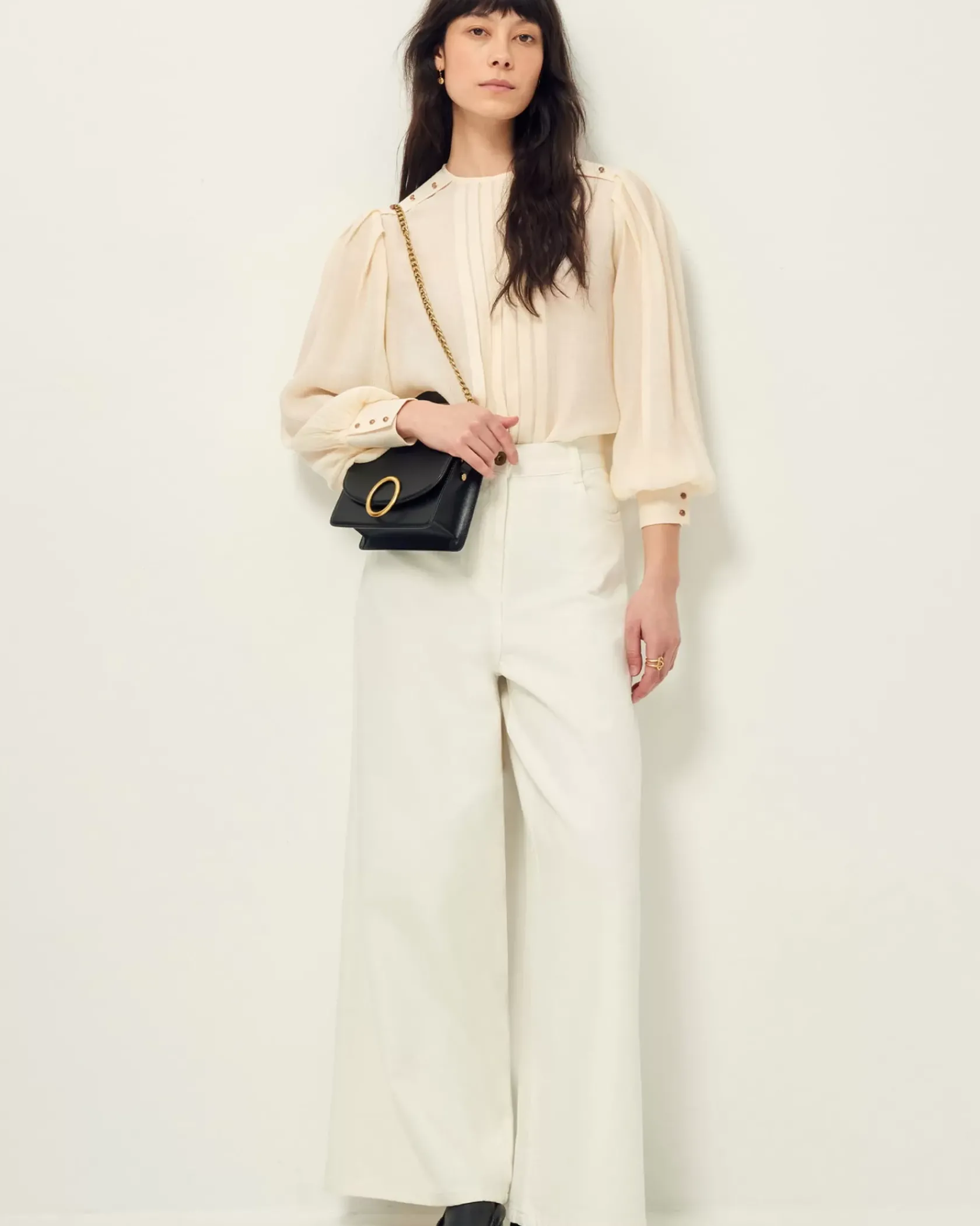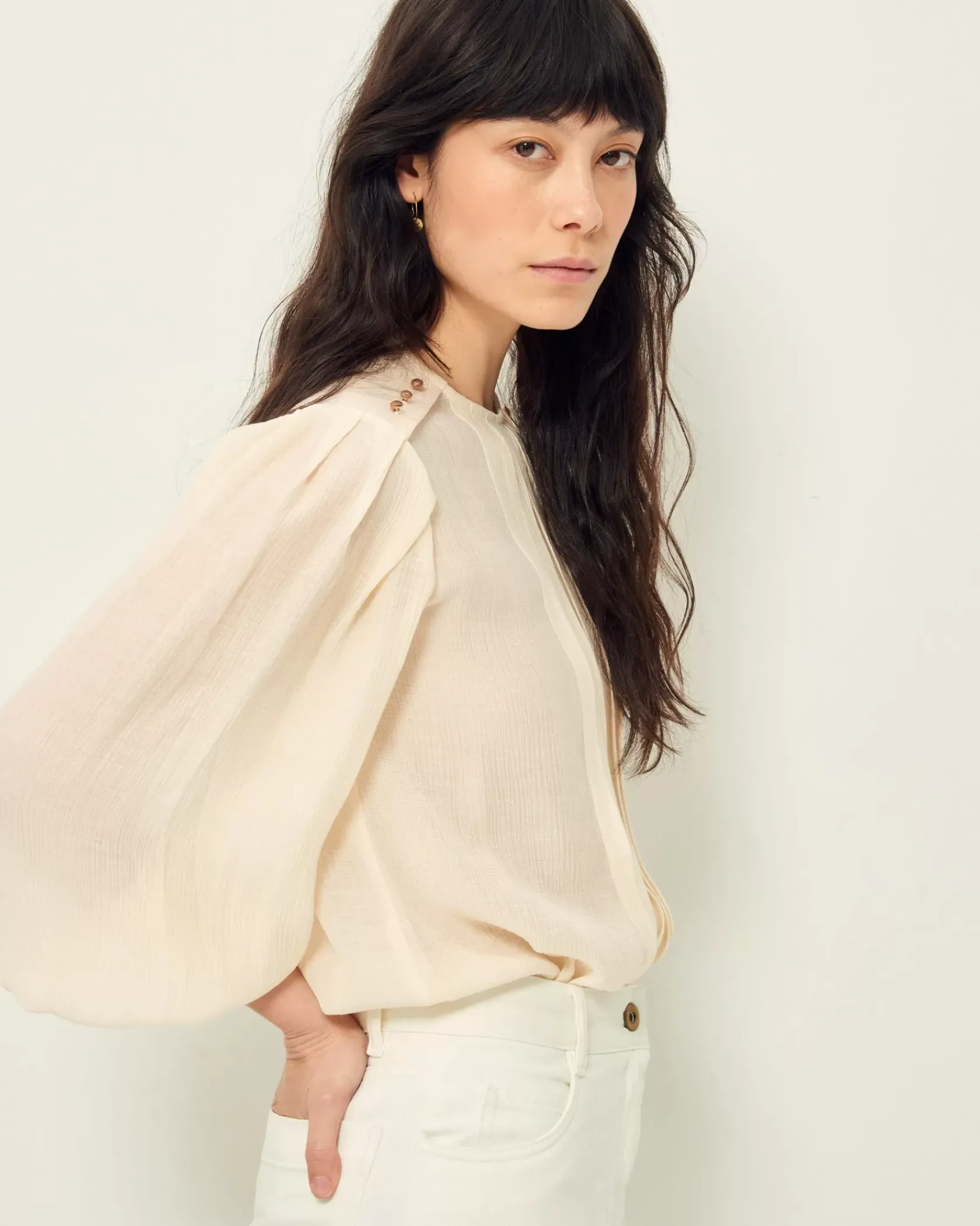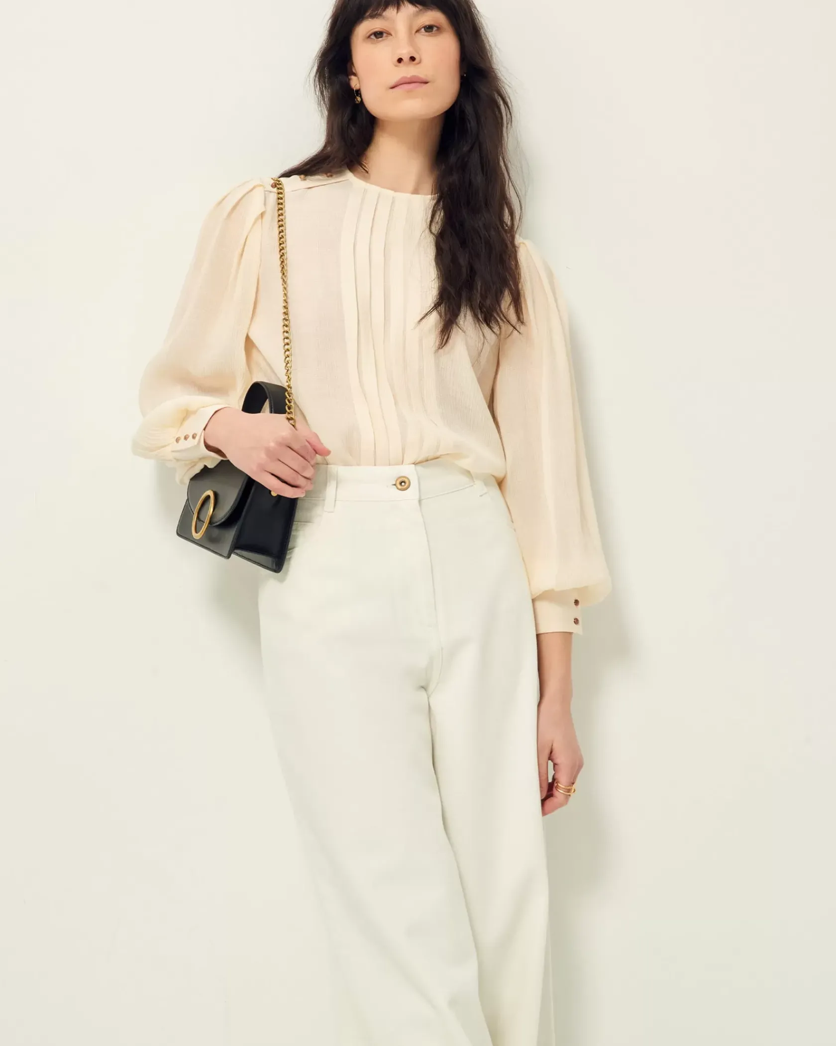 Blouse col rond et détails de plis couchés en crépon gaufré de viscose.