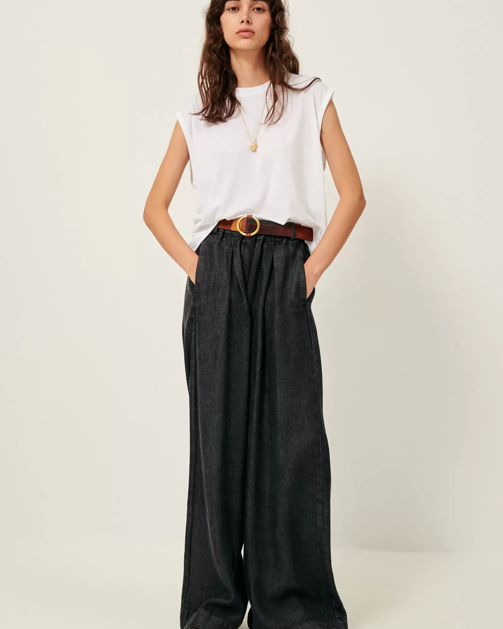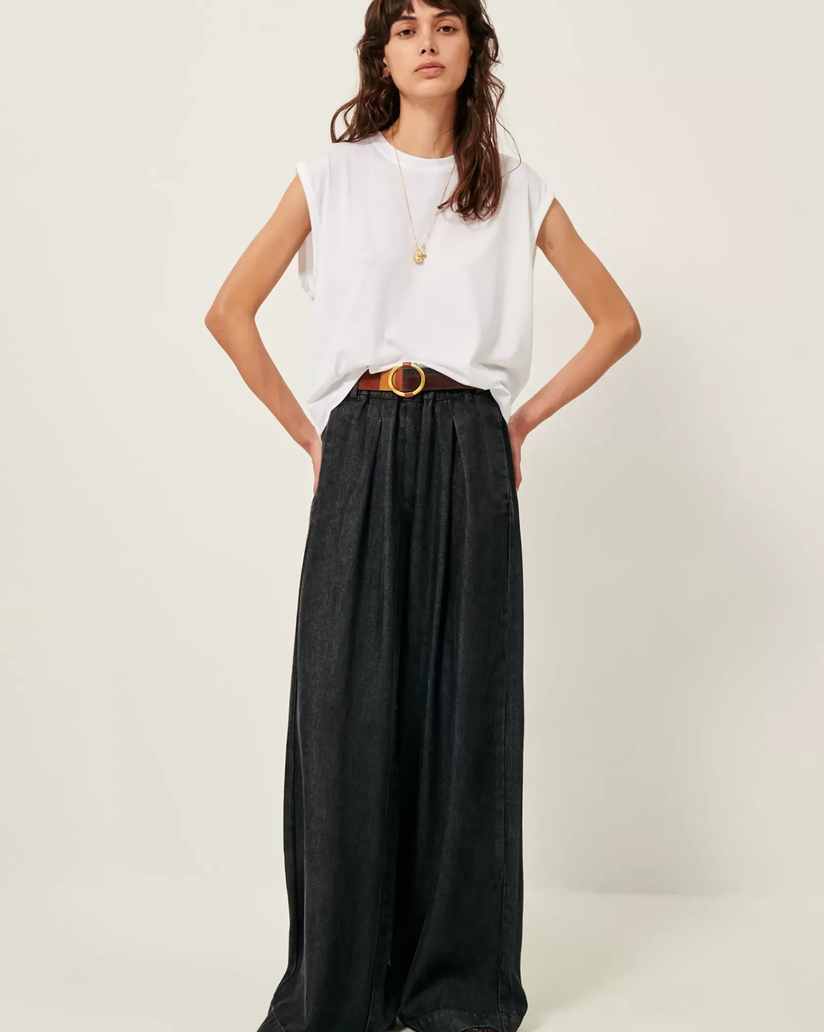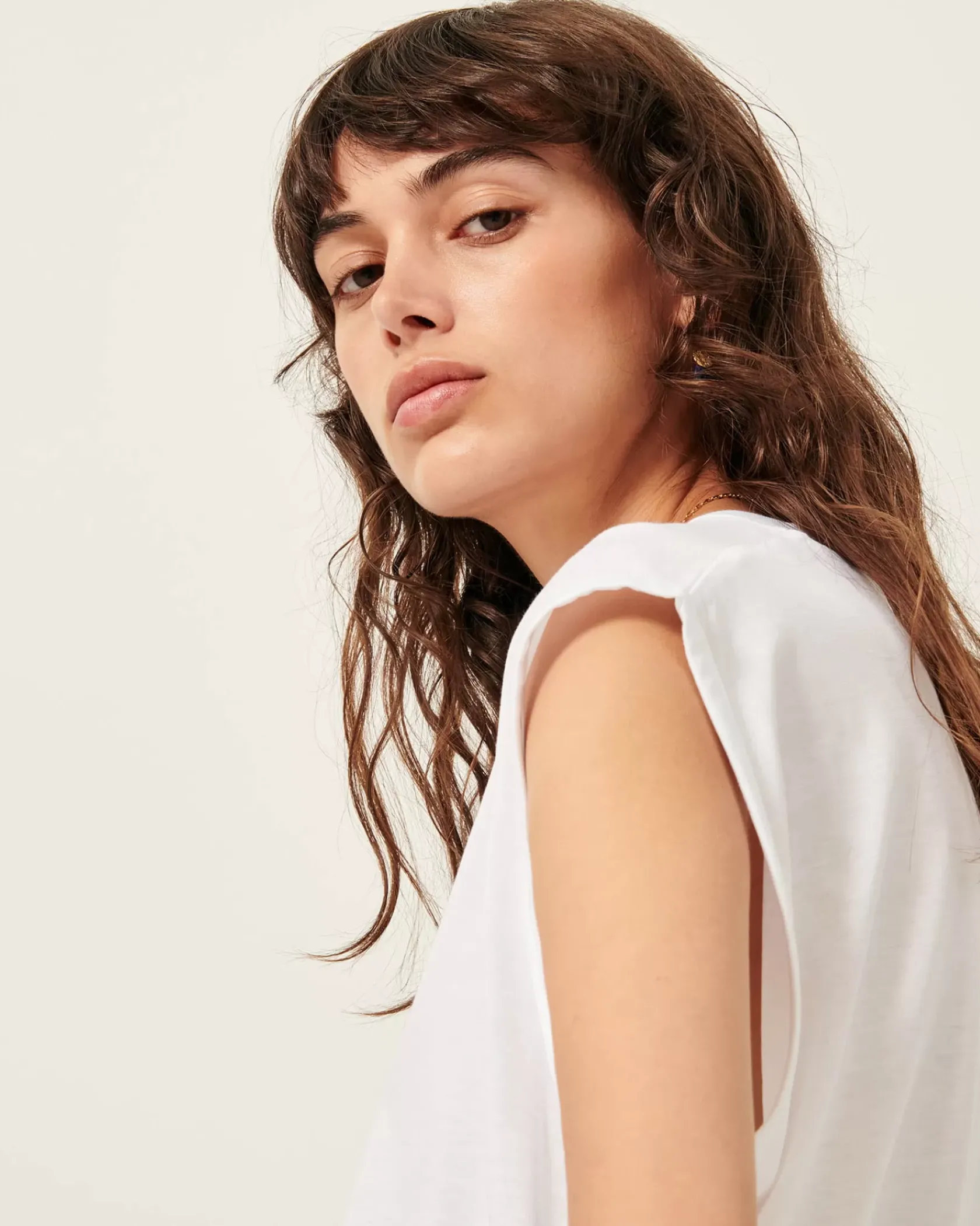 T-shirt col rond sans manches en jersey fluide, confectionné au Portugal.