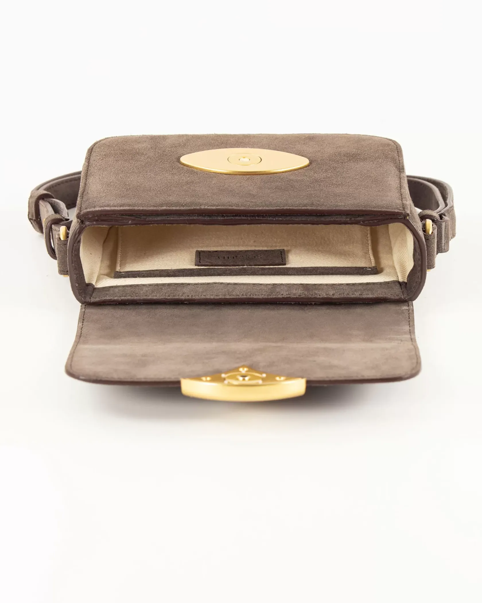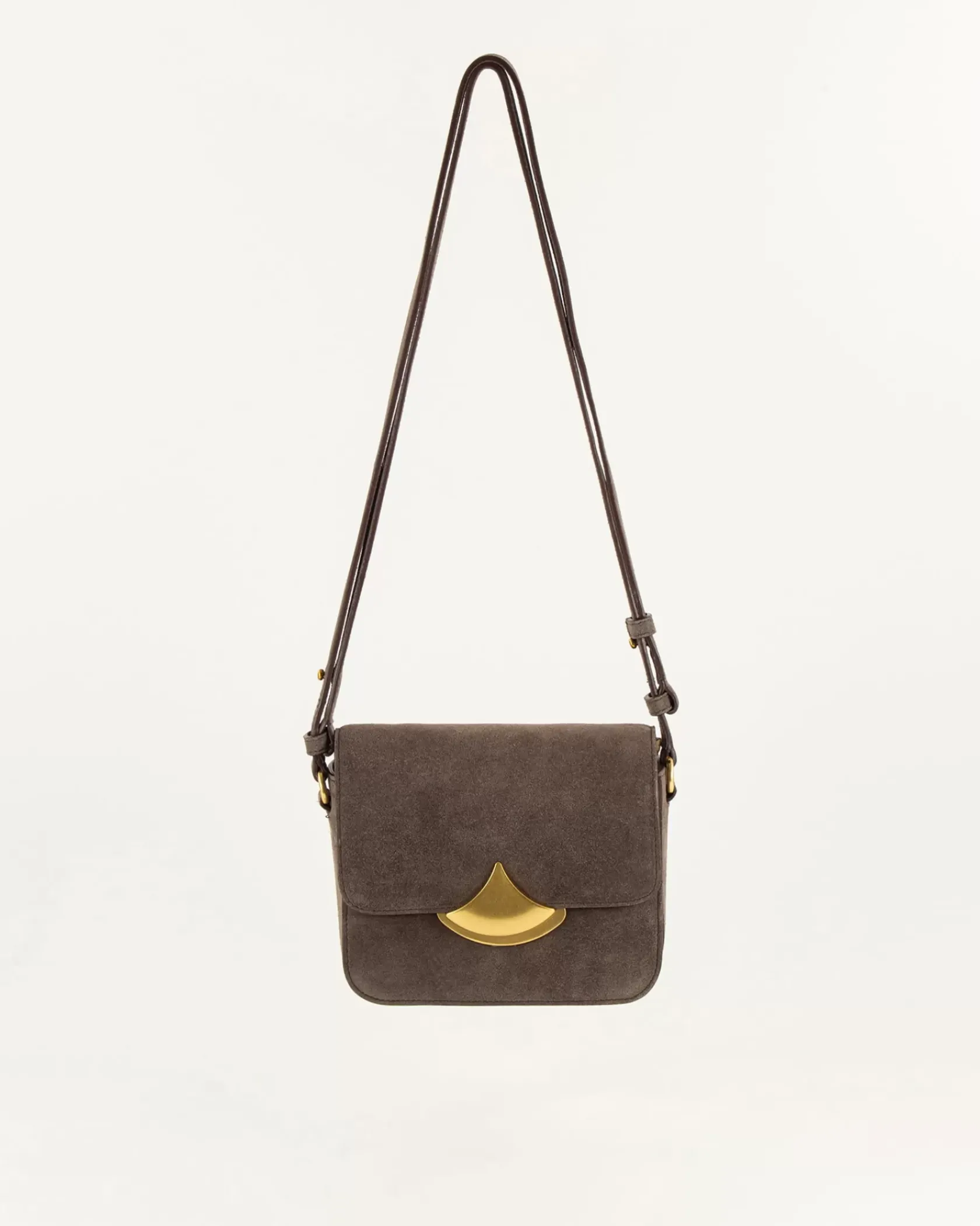 Petit sac boîte à deux compartiments en cuir de vache suédé avec fermoir magnétique, développement exclusif Sessùn.