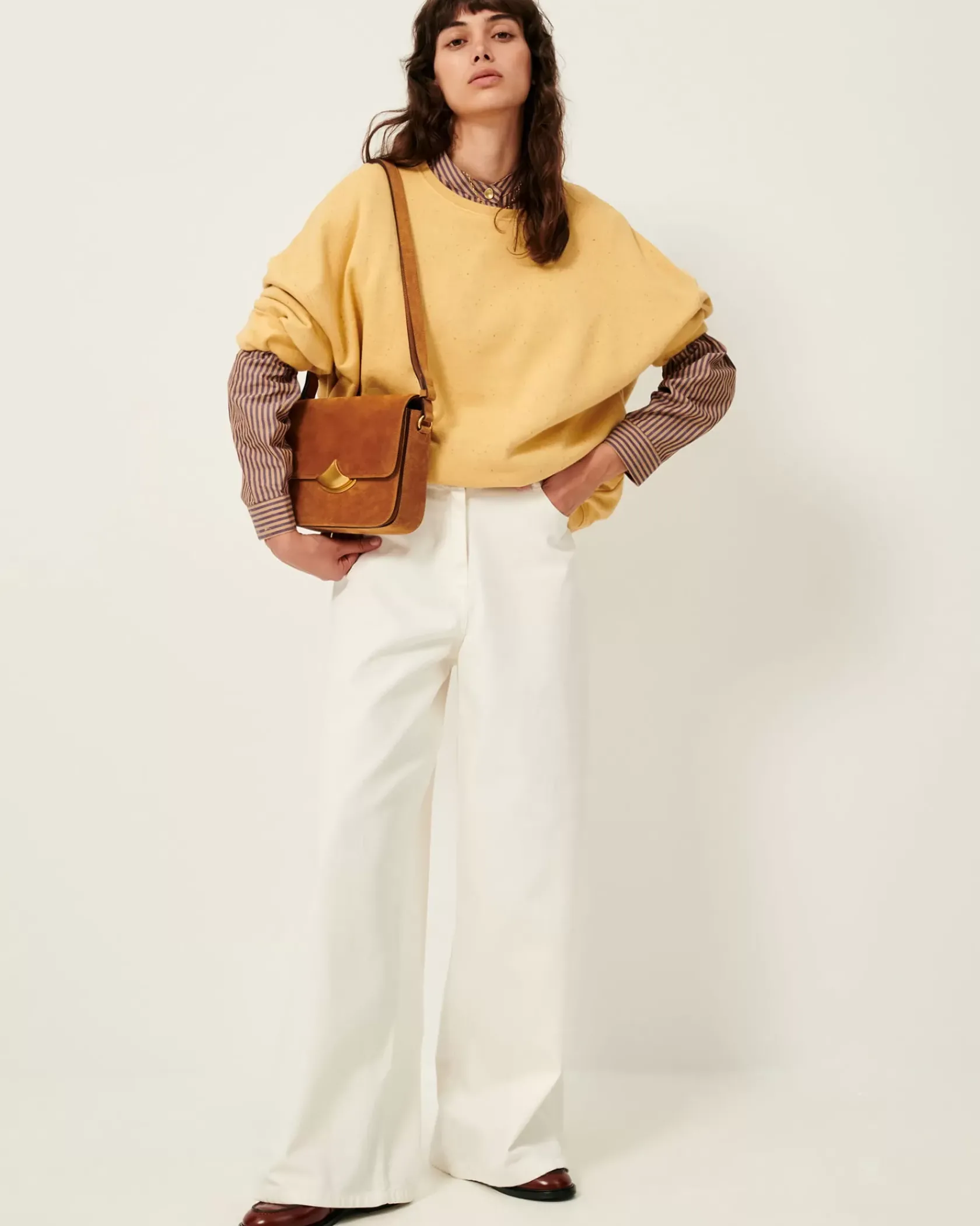 Sac boîte à deux compartiments en cuir de vache suédé avec fermoir magnétique, développement exclusif Sessùn.