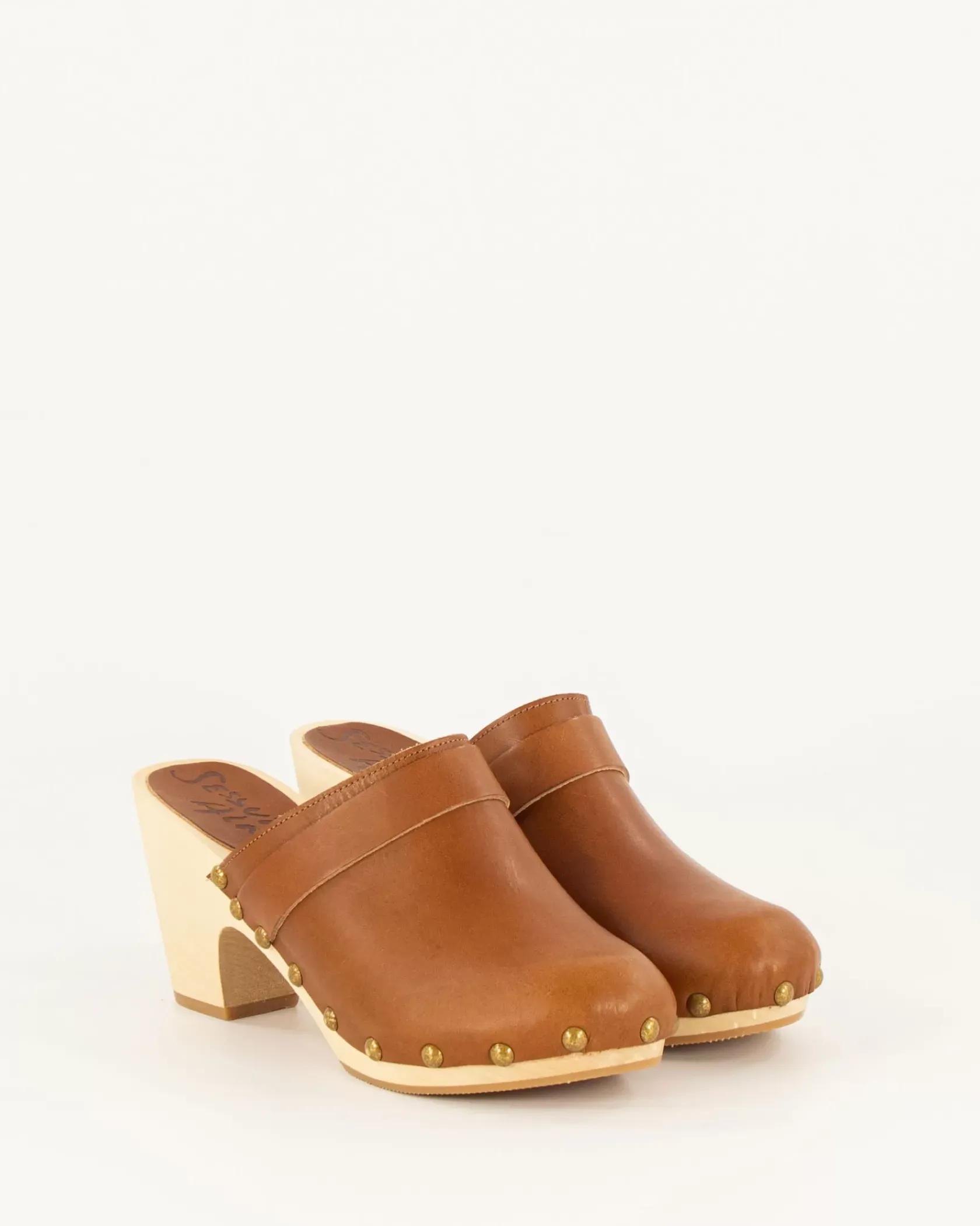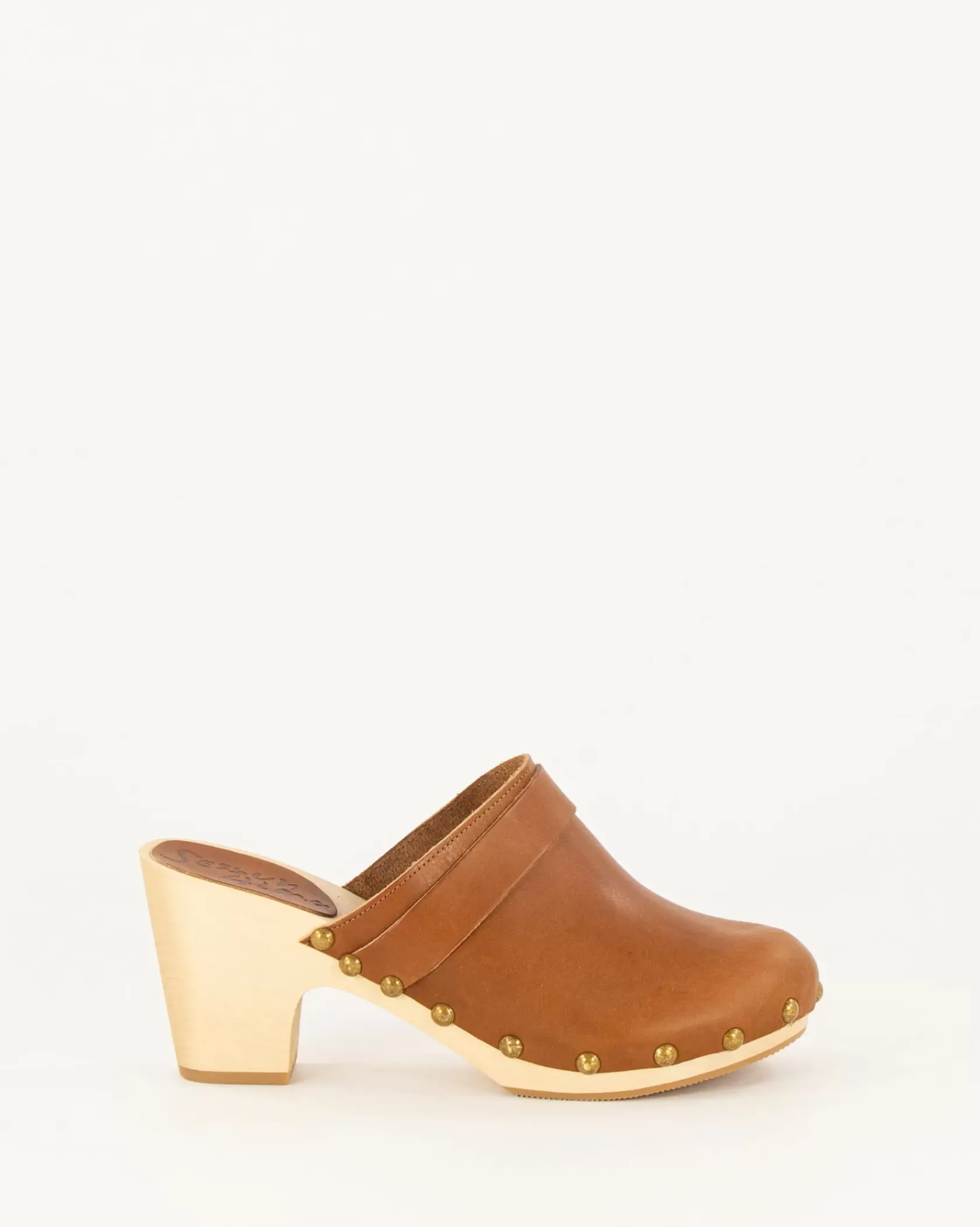 Sabots en cuir de vache à tannage végétal, confectionnés en France.