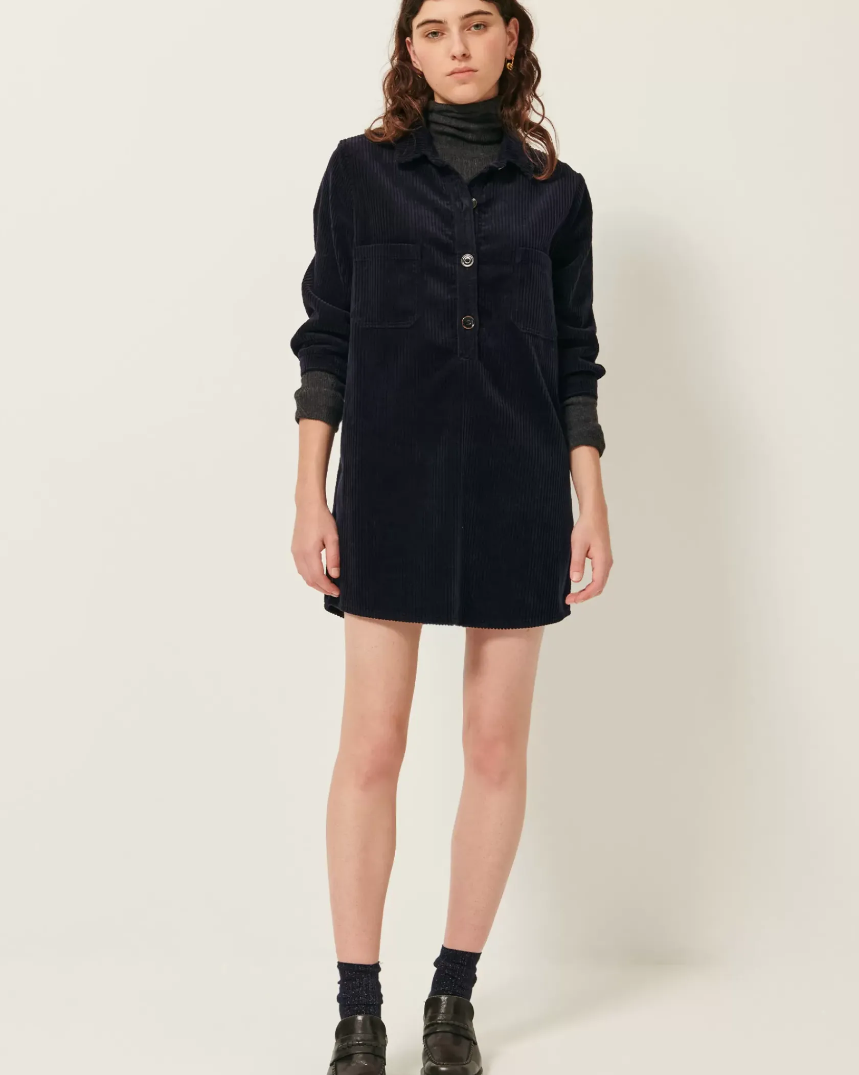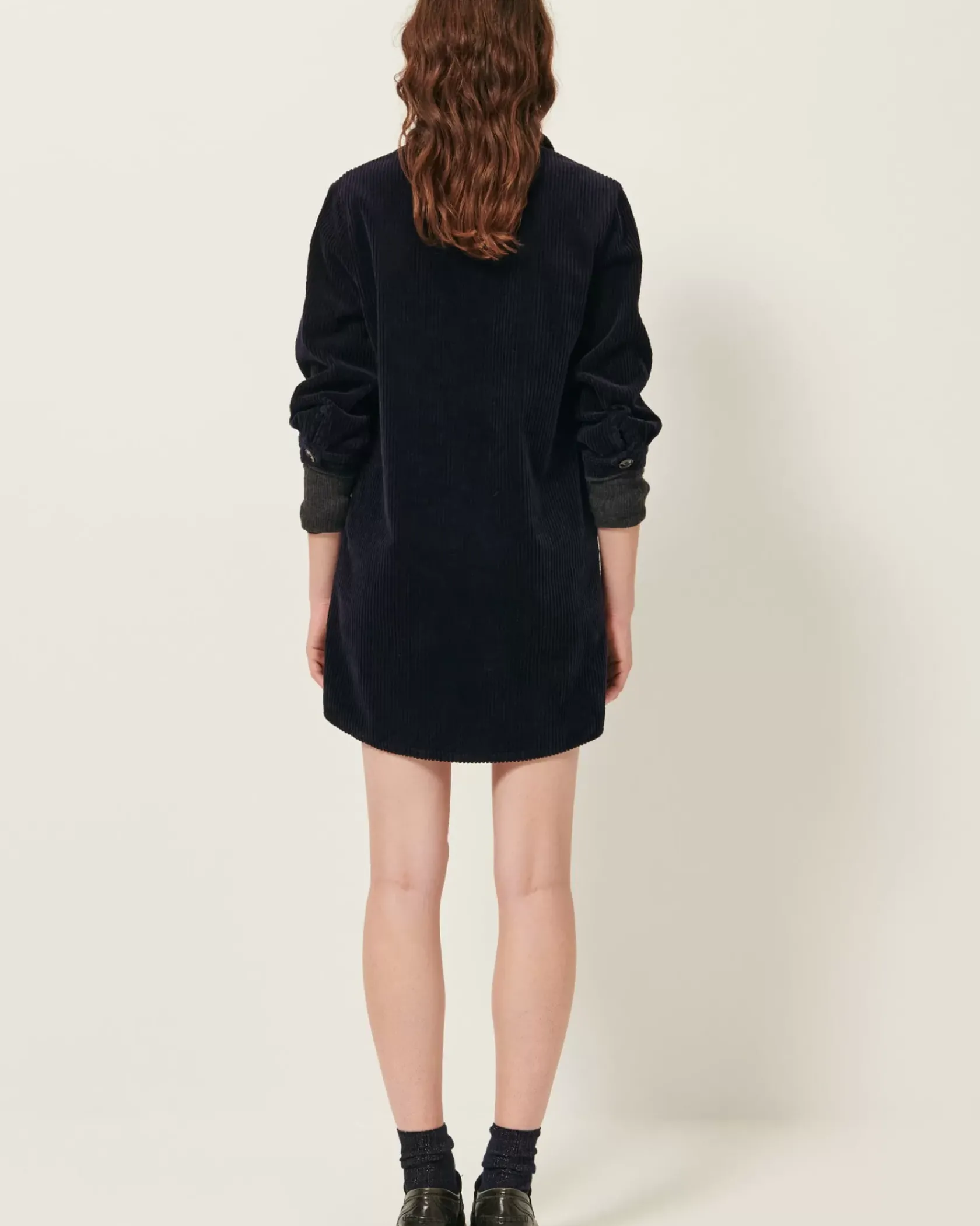 Robe courte esprit liquette en velours côtelé 500 raies, lavé, apprêté en France.