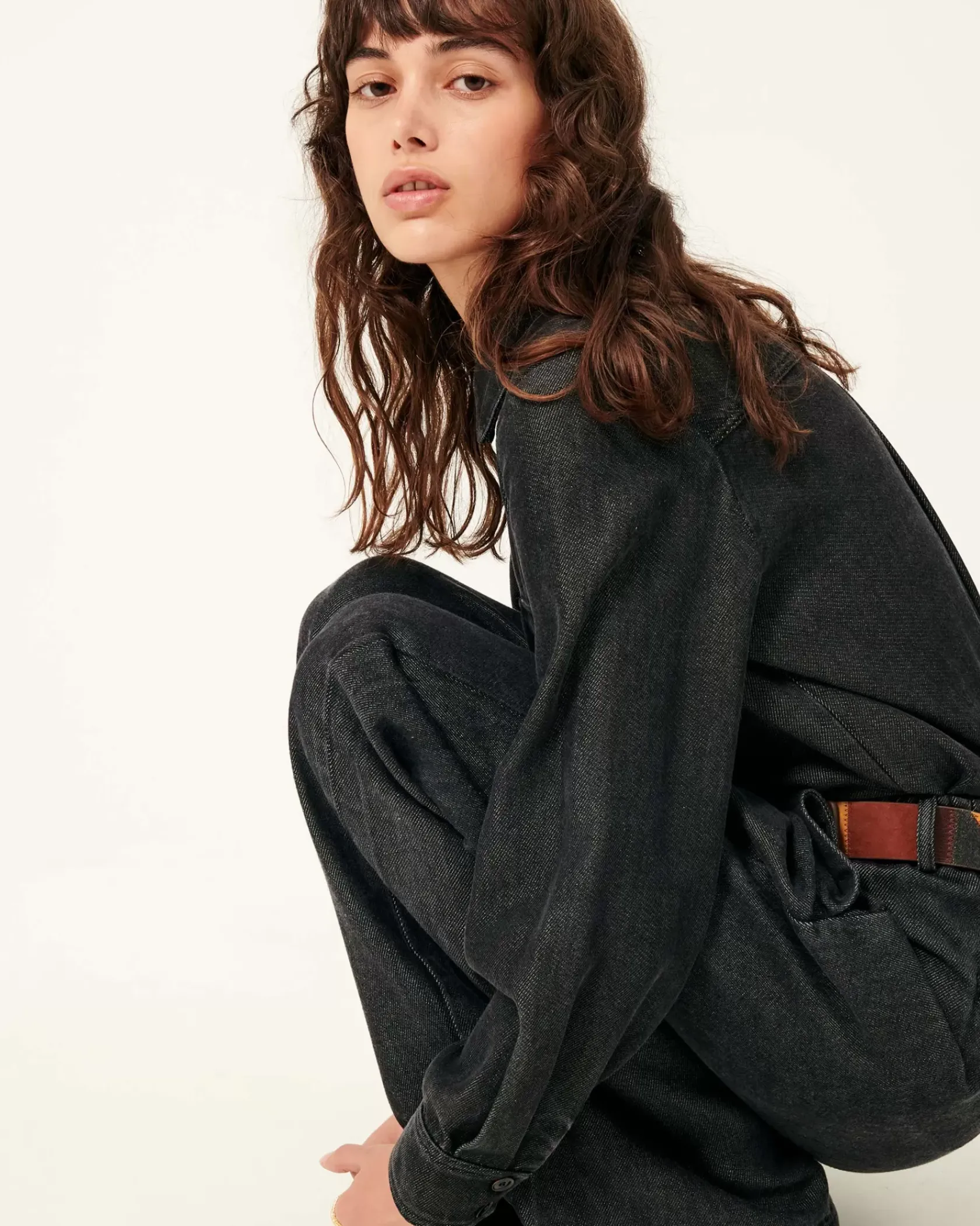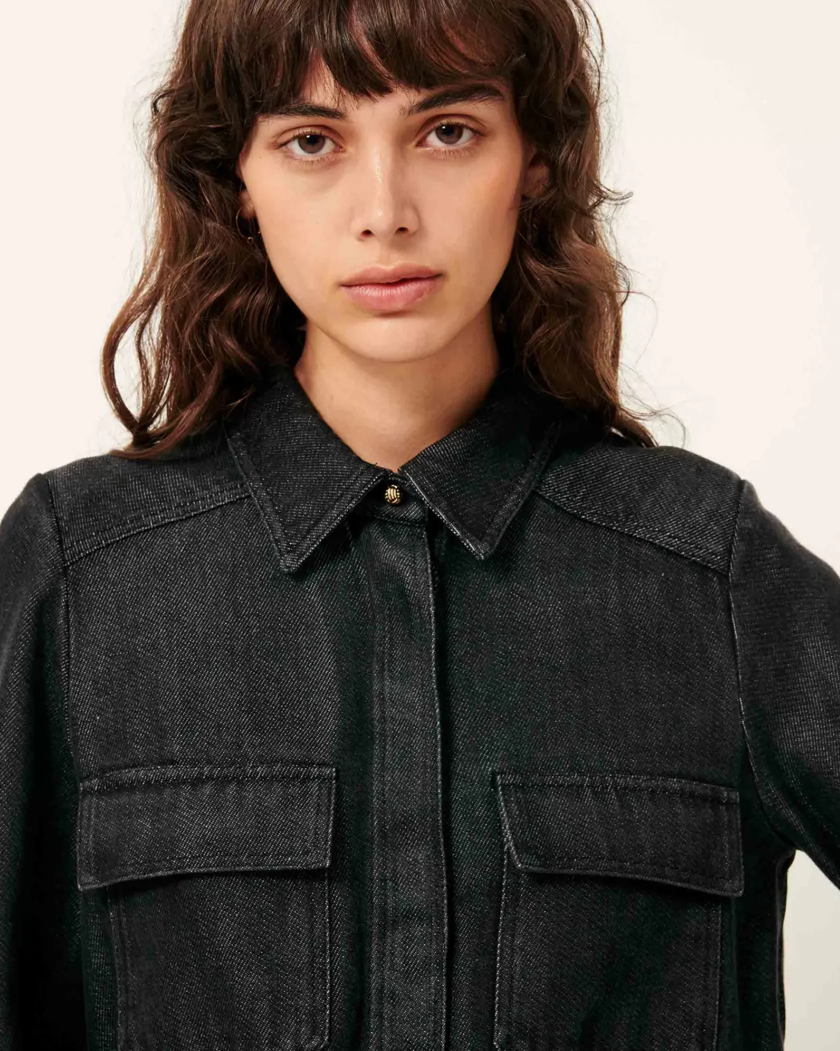 Chemise ajustée à poches plaquées en toile denim de lyocell fluide tissée en Espagne.