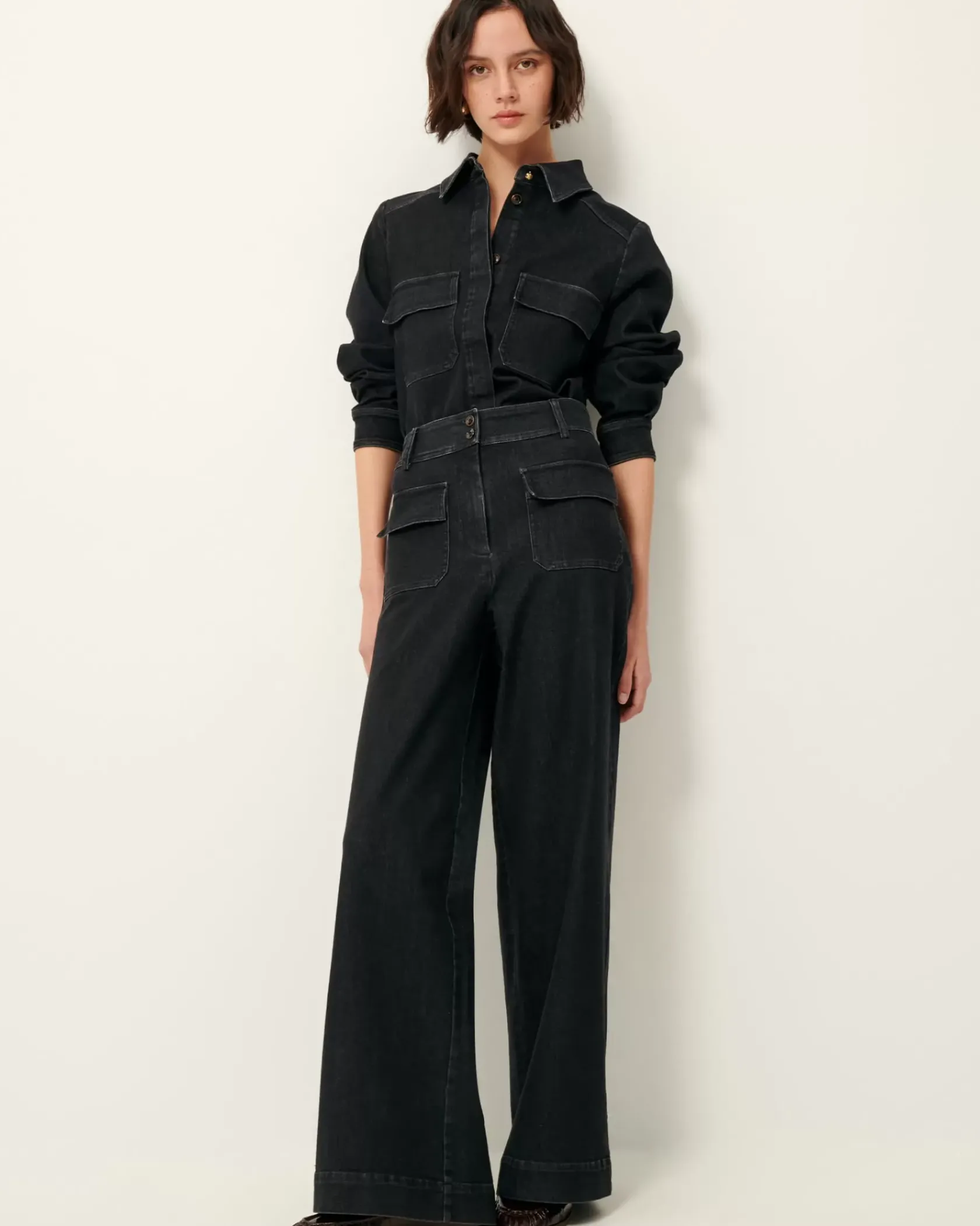 Chemise ajustée à poches plaquées en sergé denim lavé, tissé au Portugal.