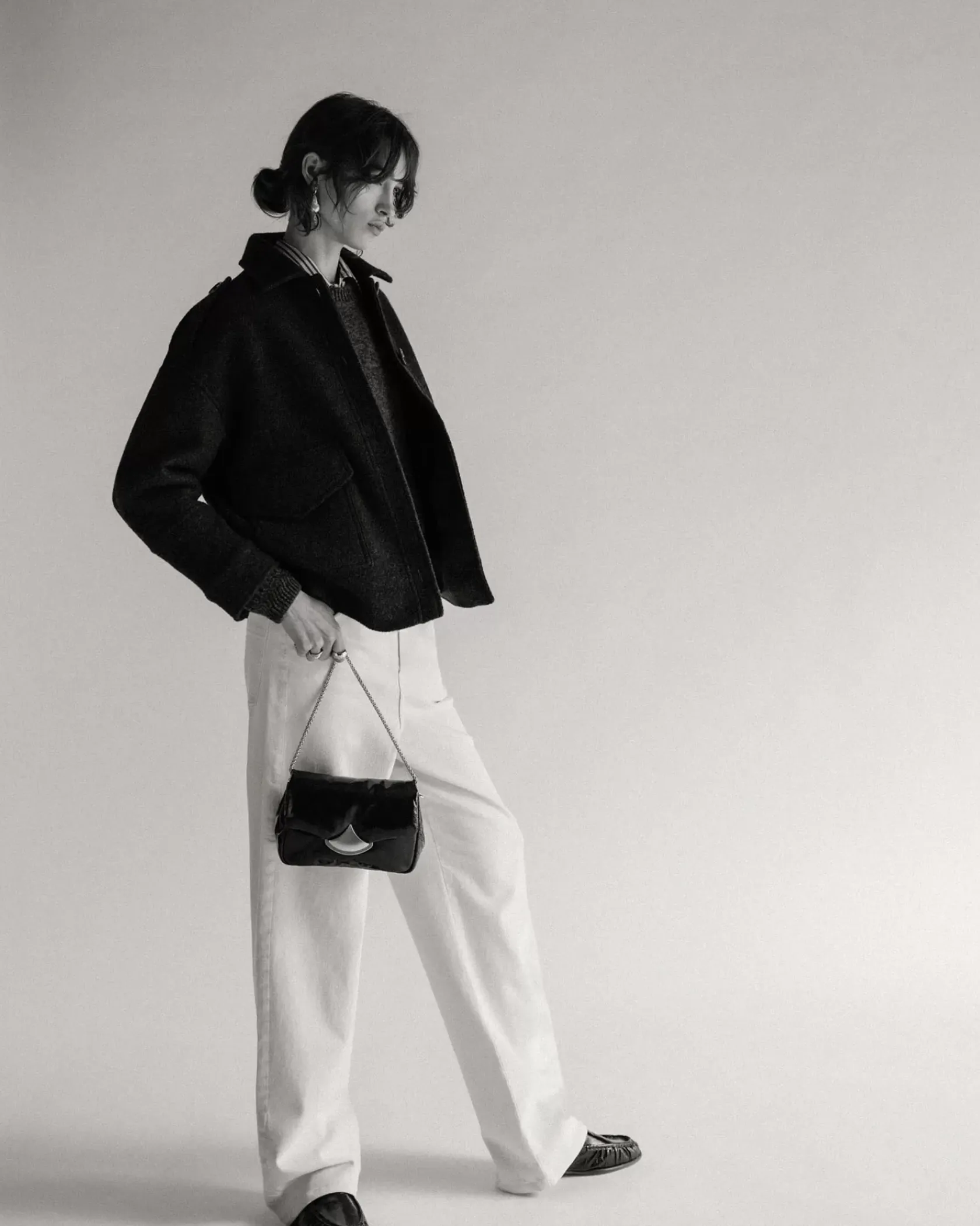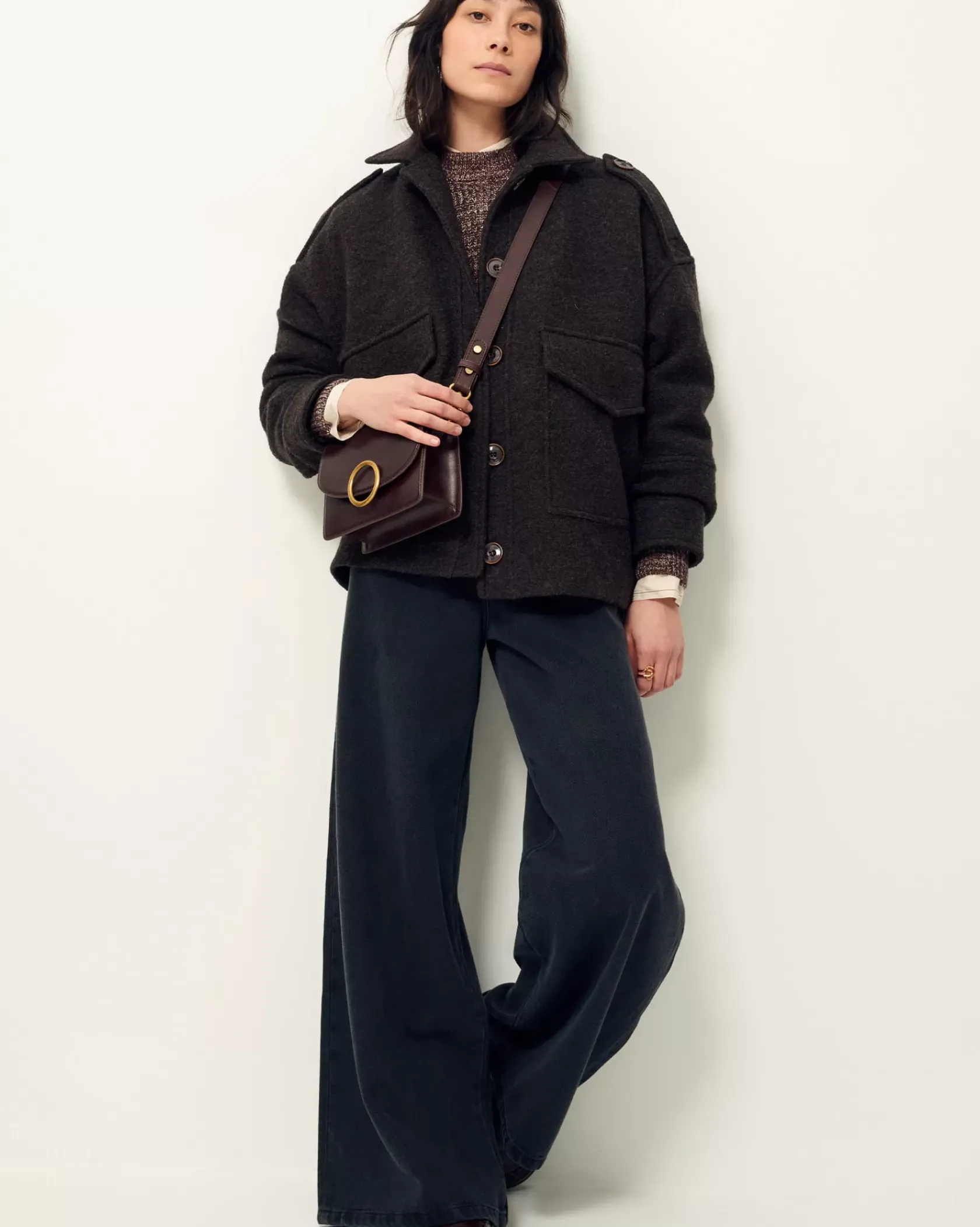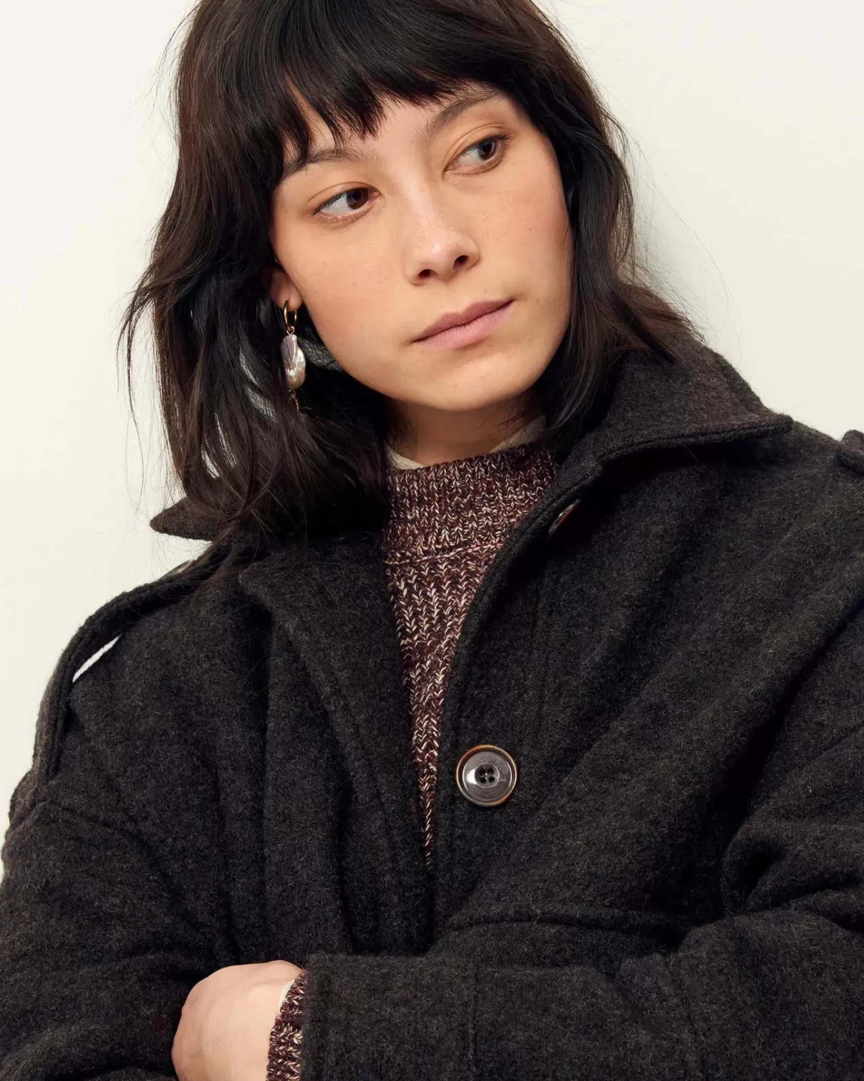 Blouson élastiqué au dos à poches plaquées et pattes épaules en lainage lourd loden (laine bouillie) en armure toile, tissé en Italie