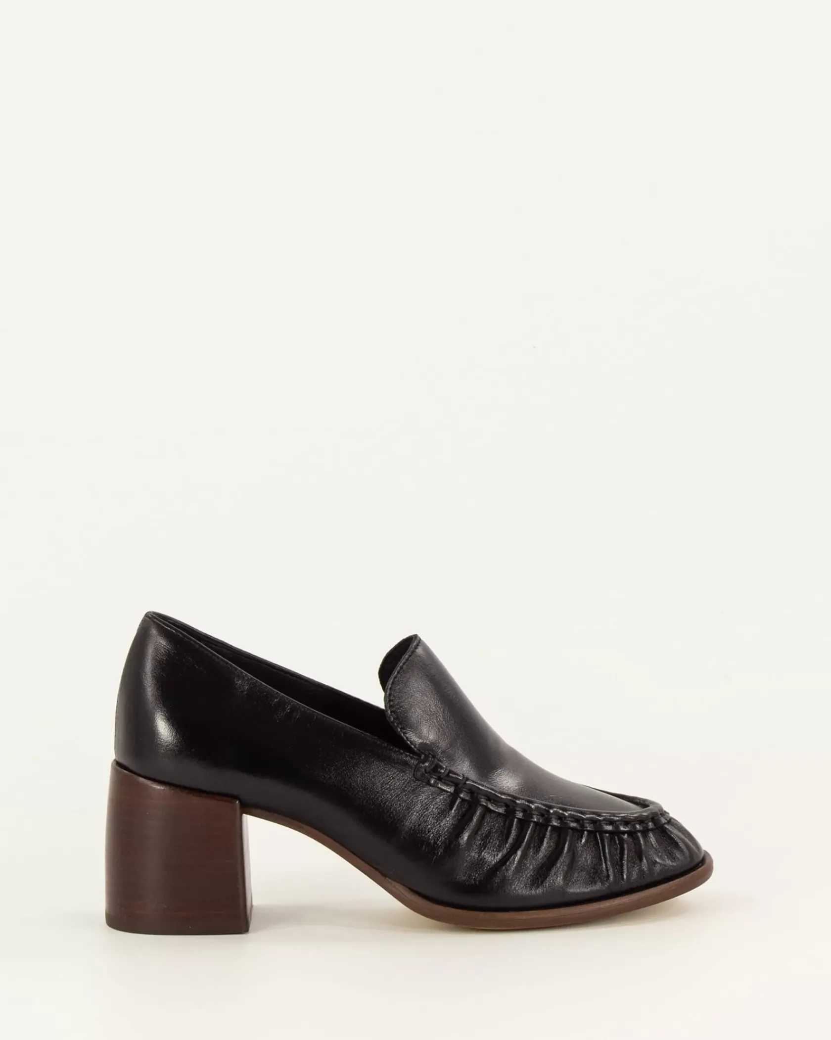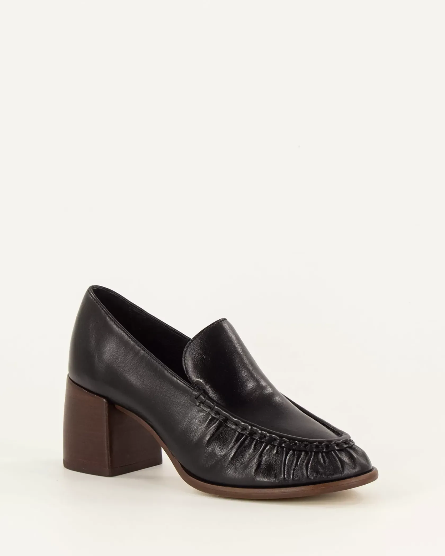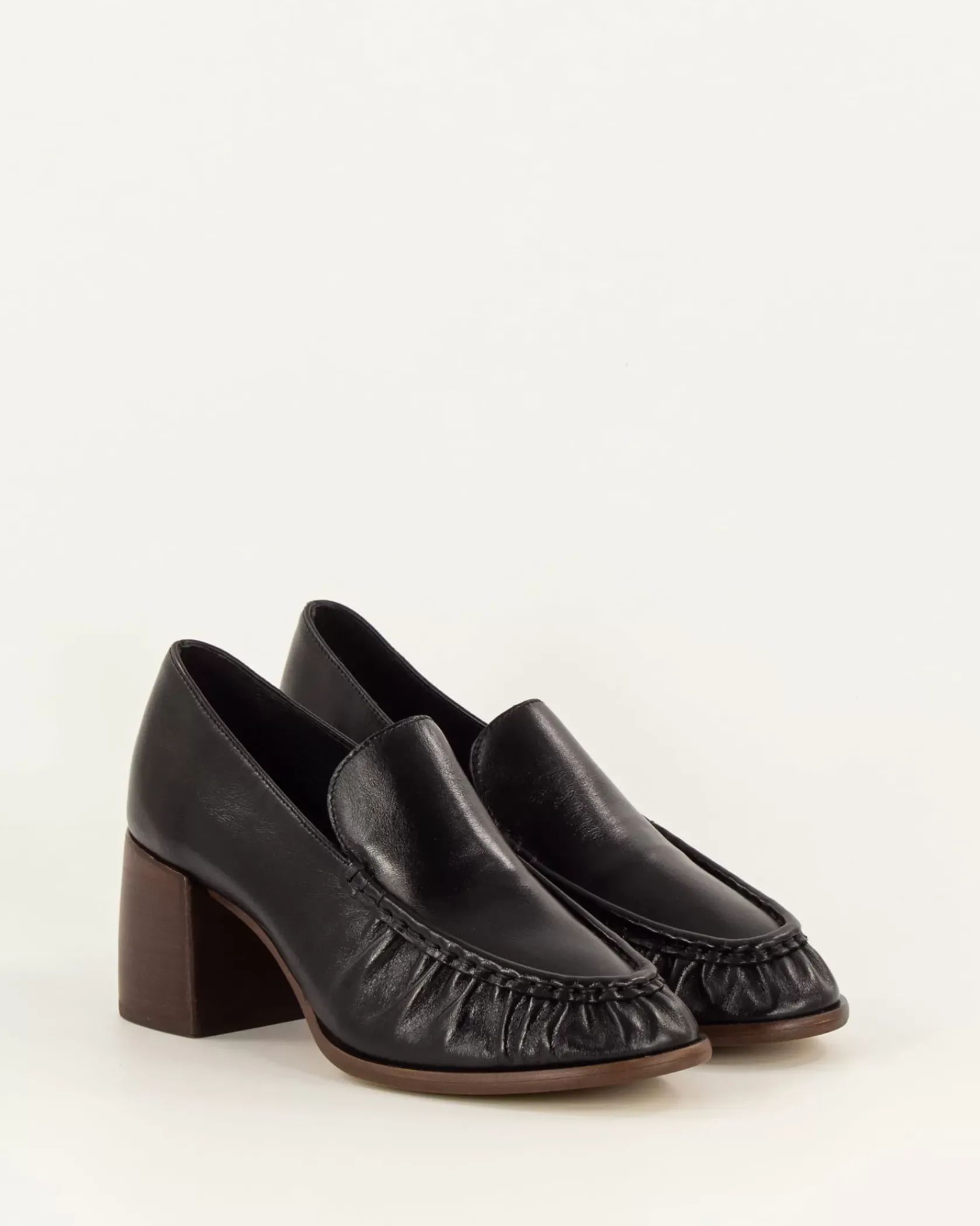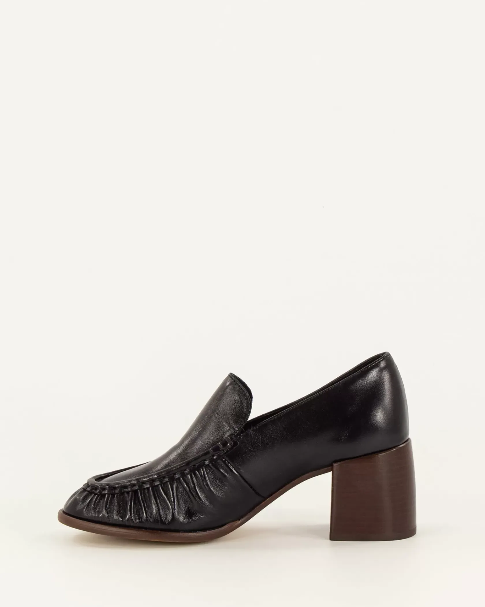 Mocassins souples à talons en cuir de vache, empeigne froncée, confectionnés au Portugal.