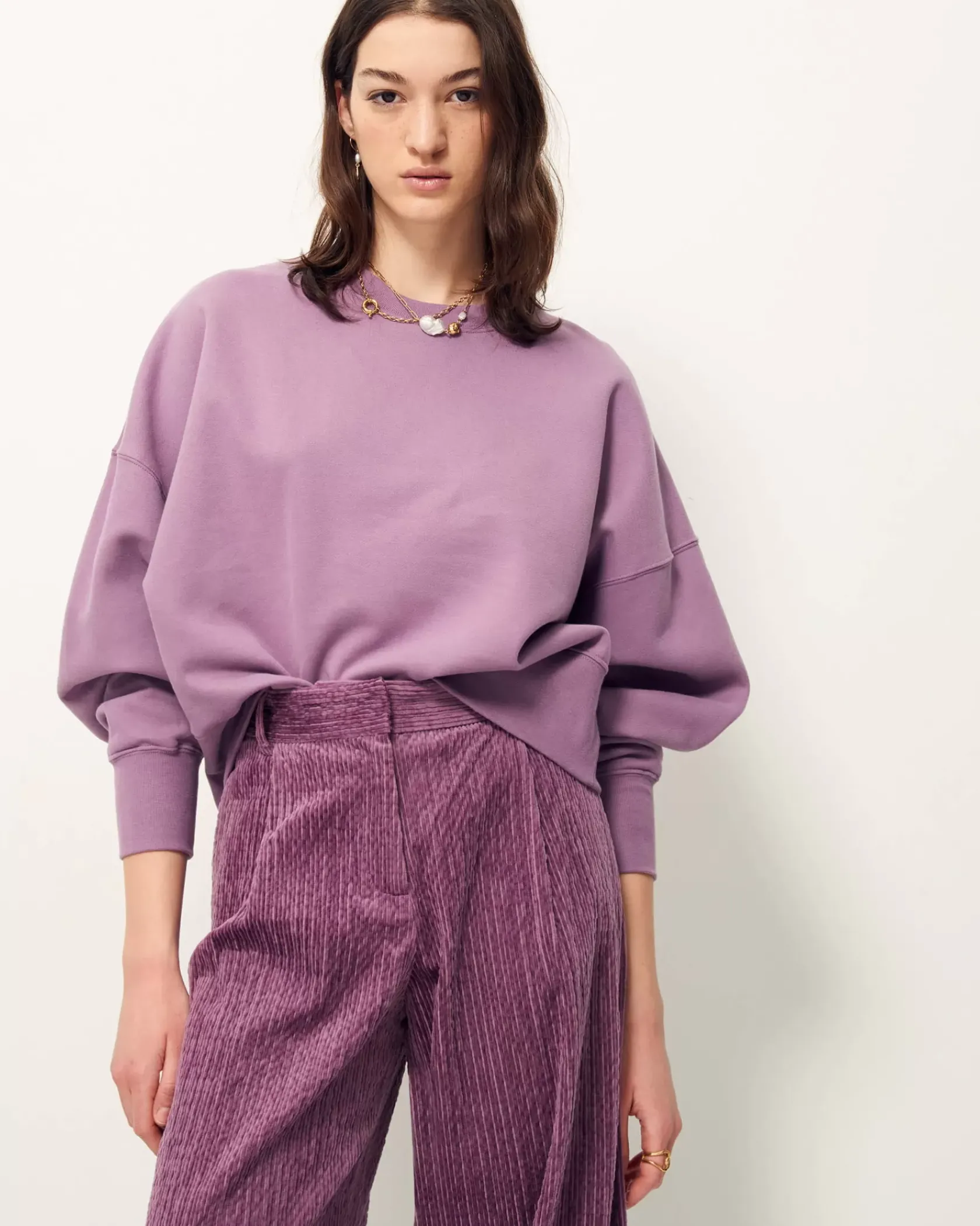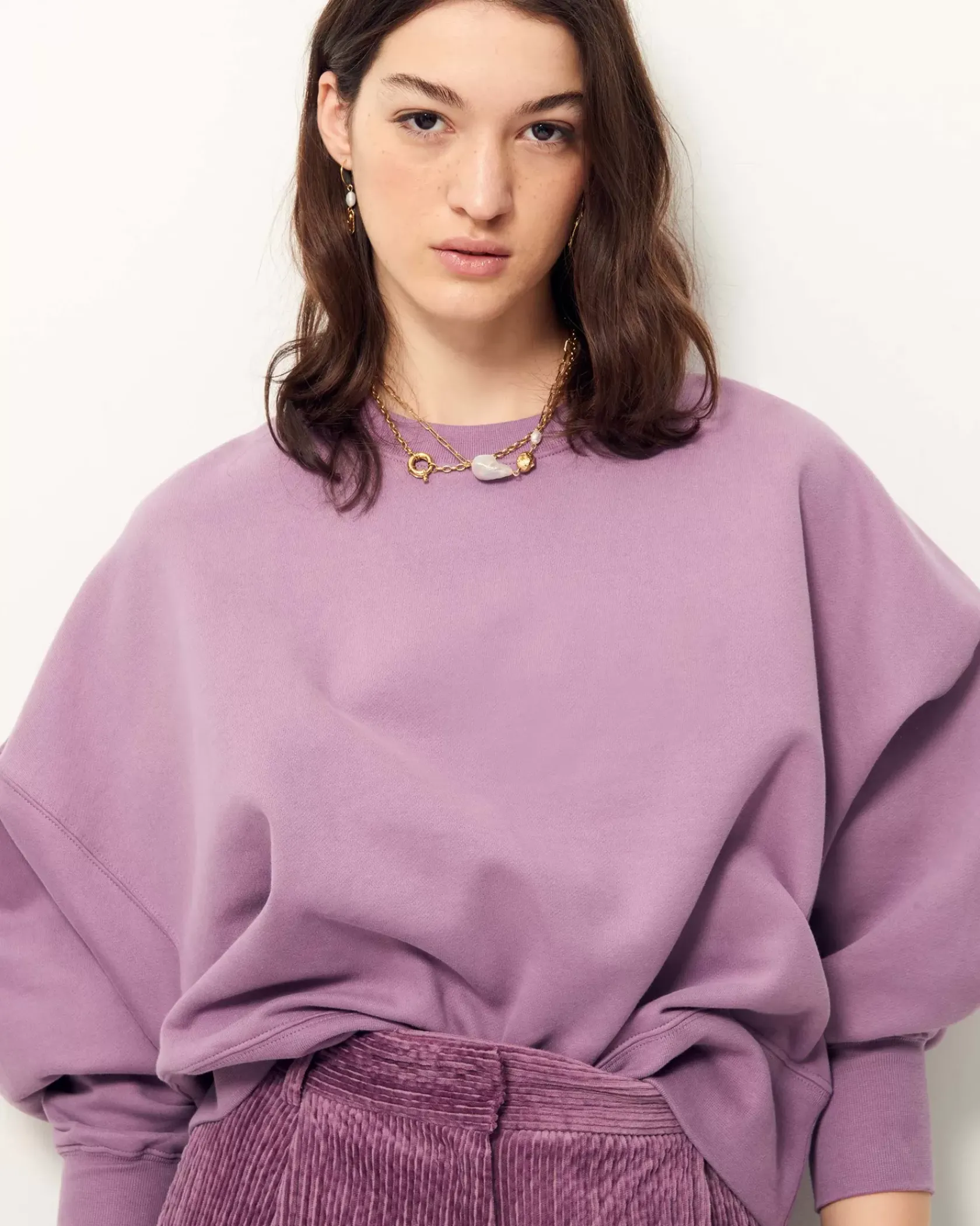 Sweat court oversize en molleton gratté, confectionné au Portugal.