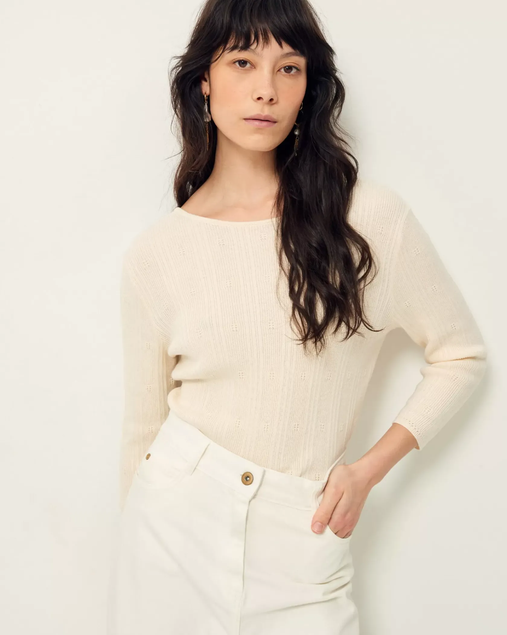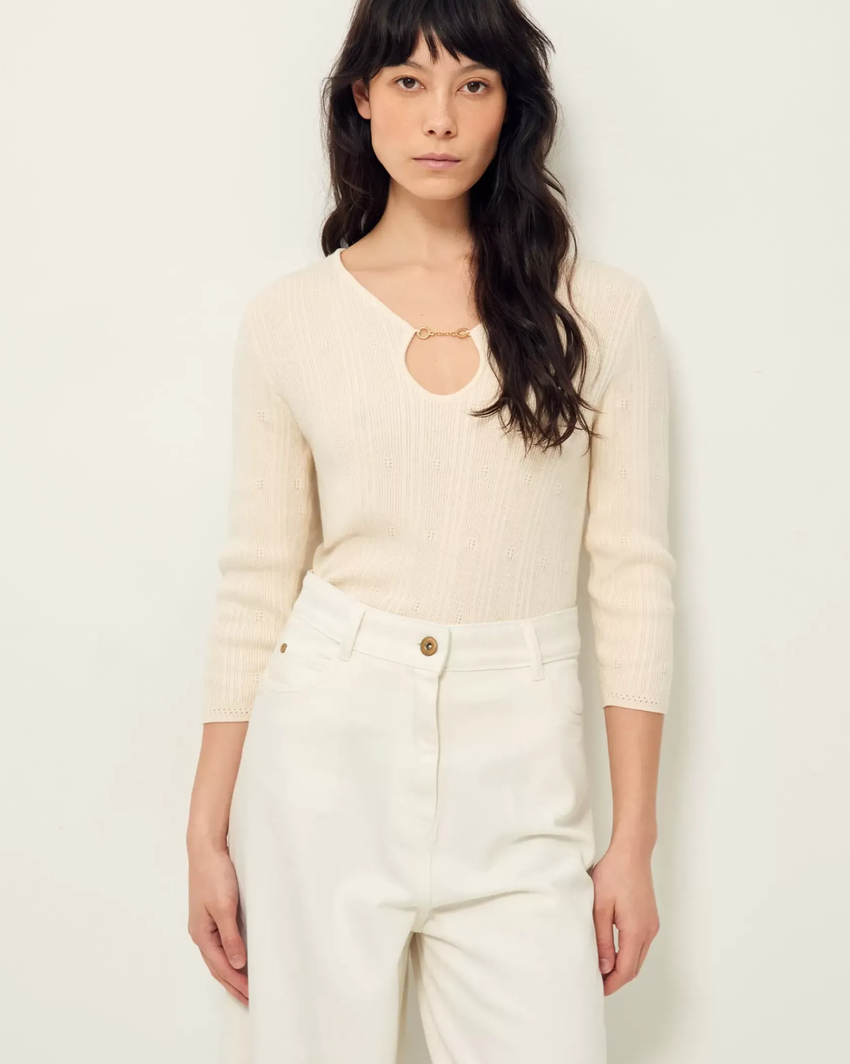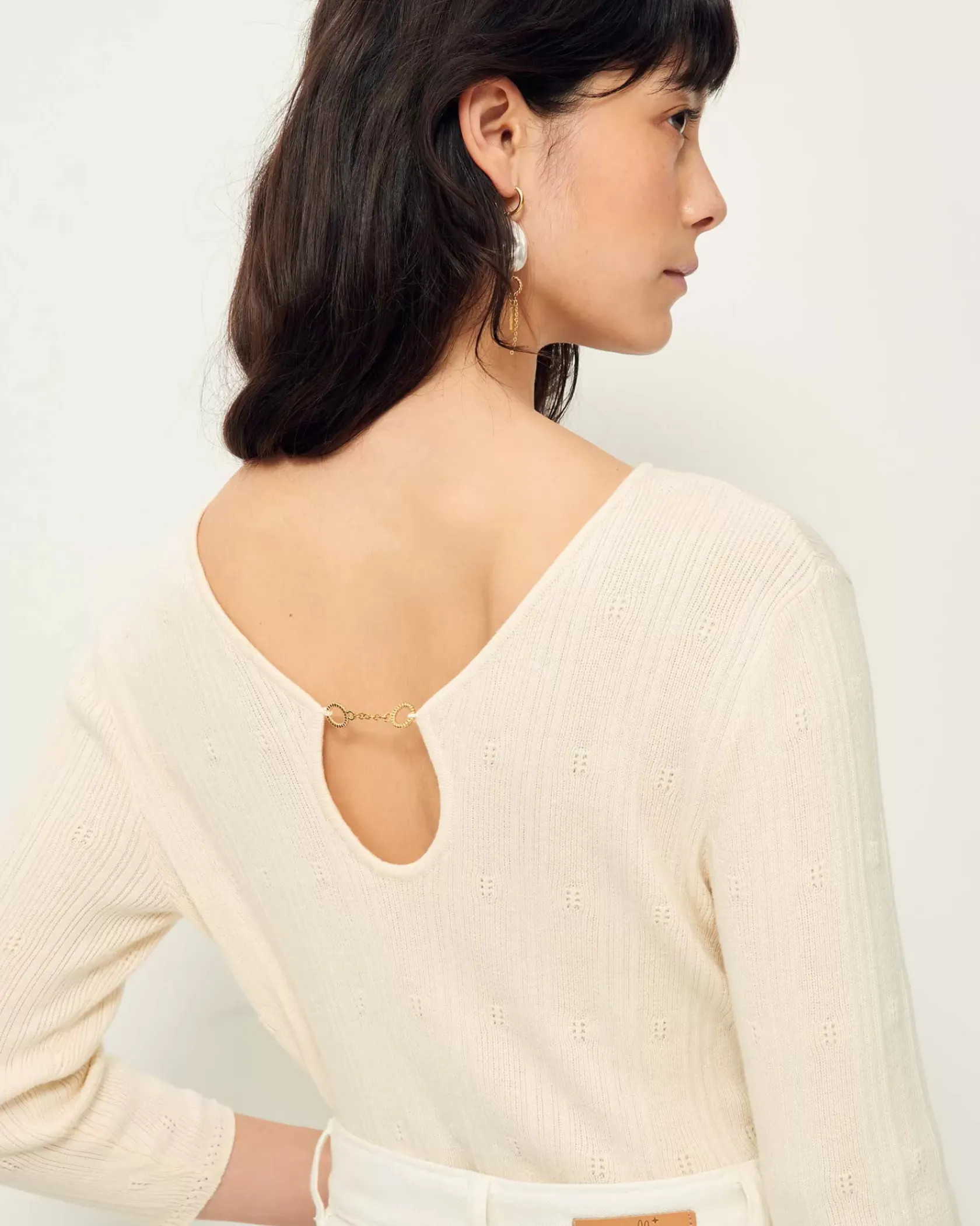 Pull ajustée en maille fantaisie à points ajourés.