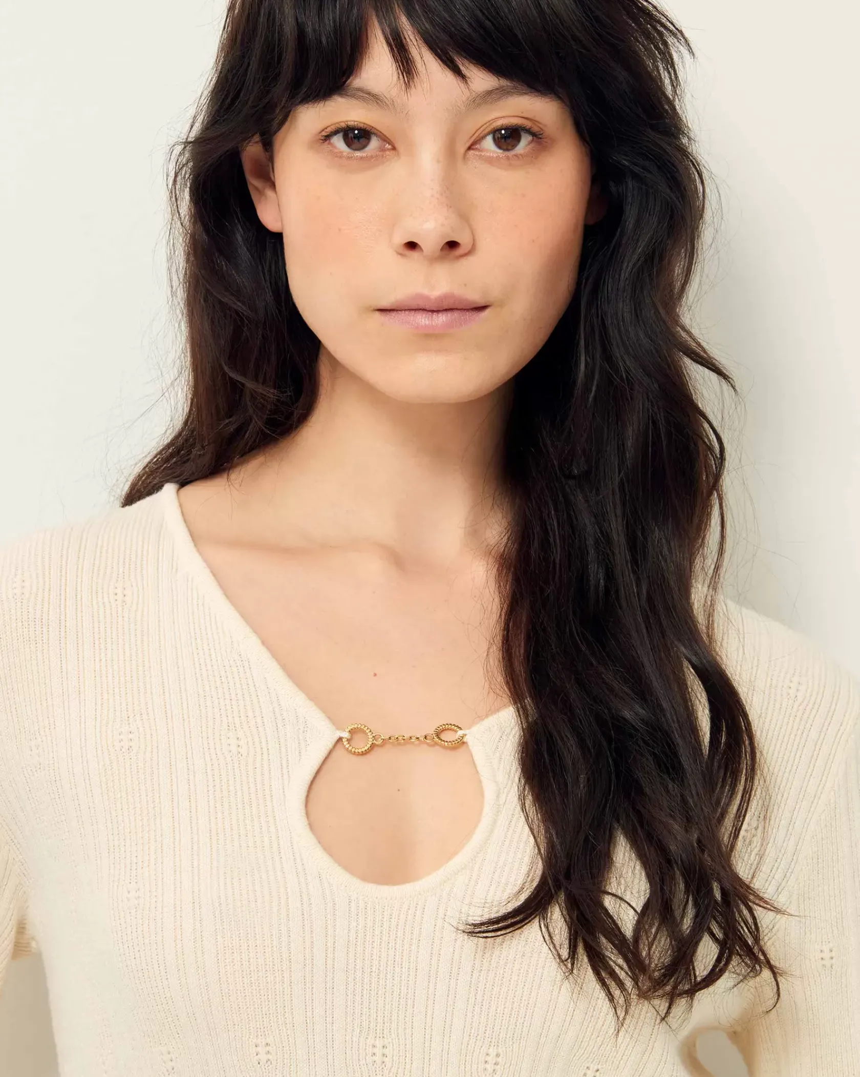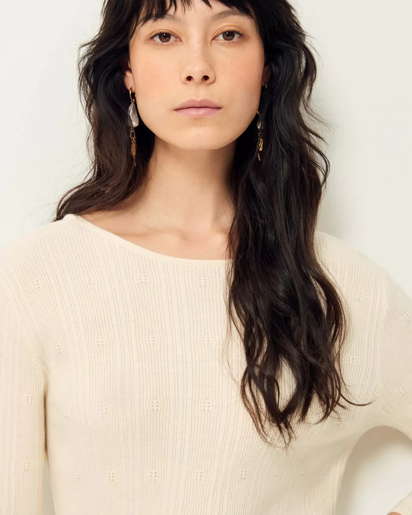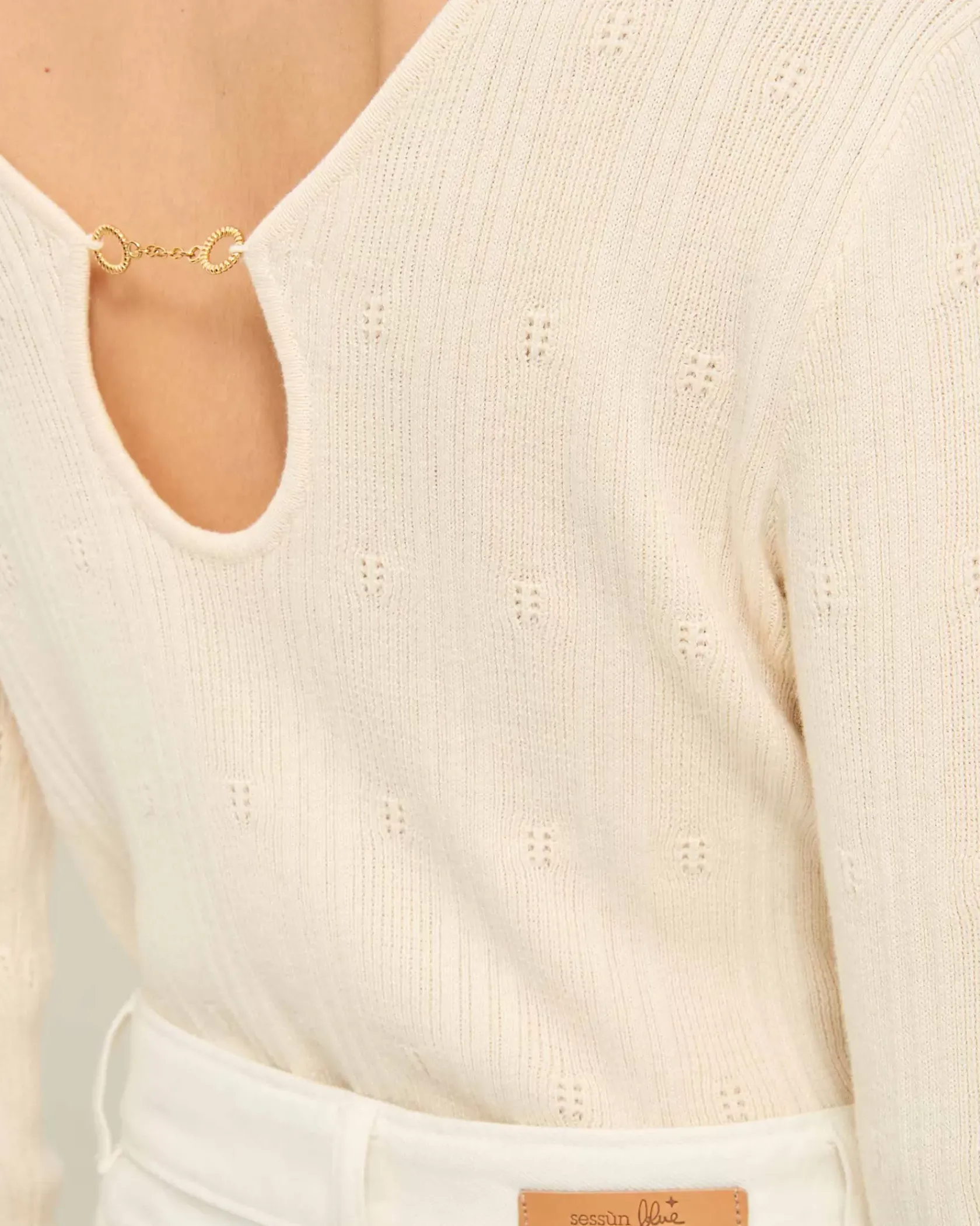 Pull ajustée en maille fantaisie à points ajourés.