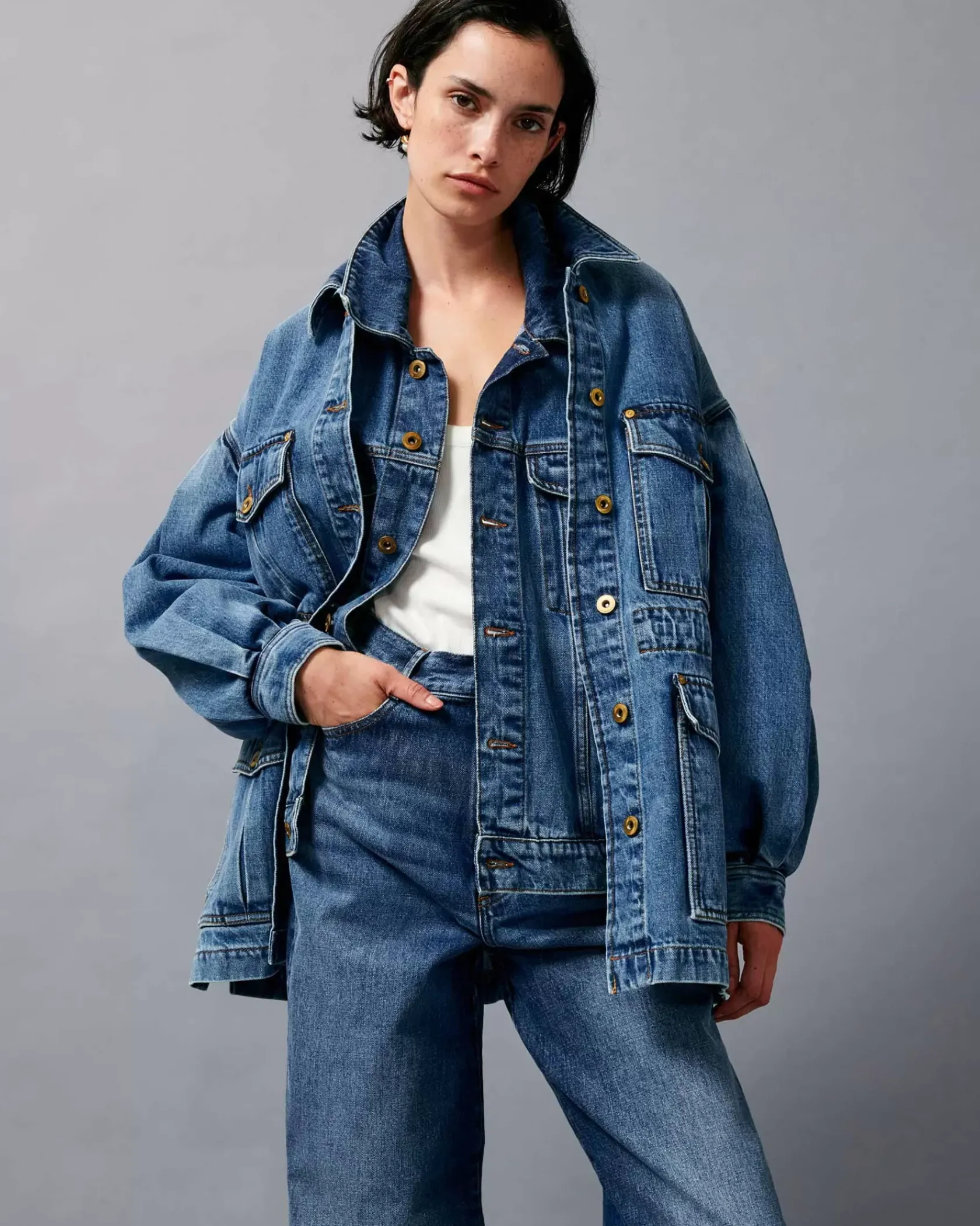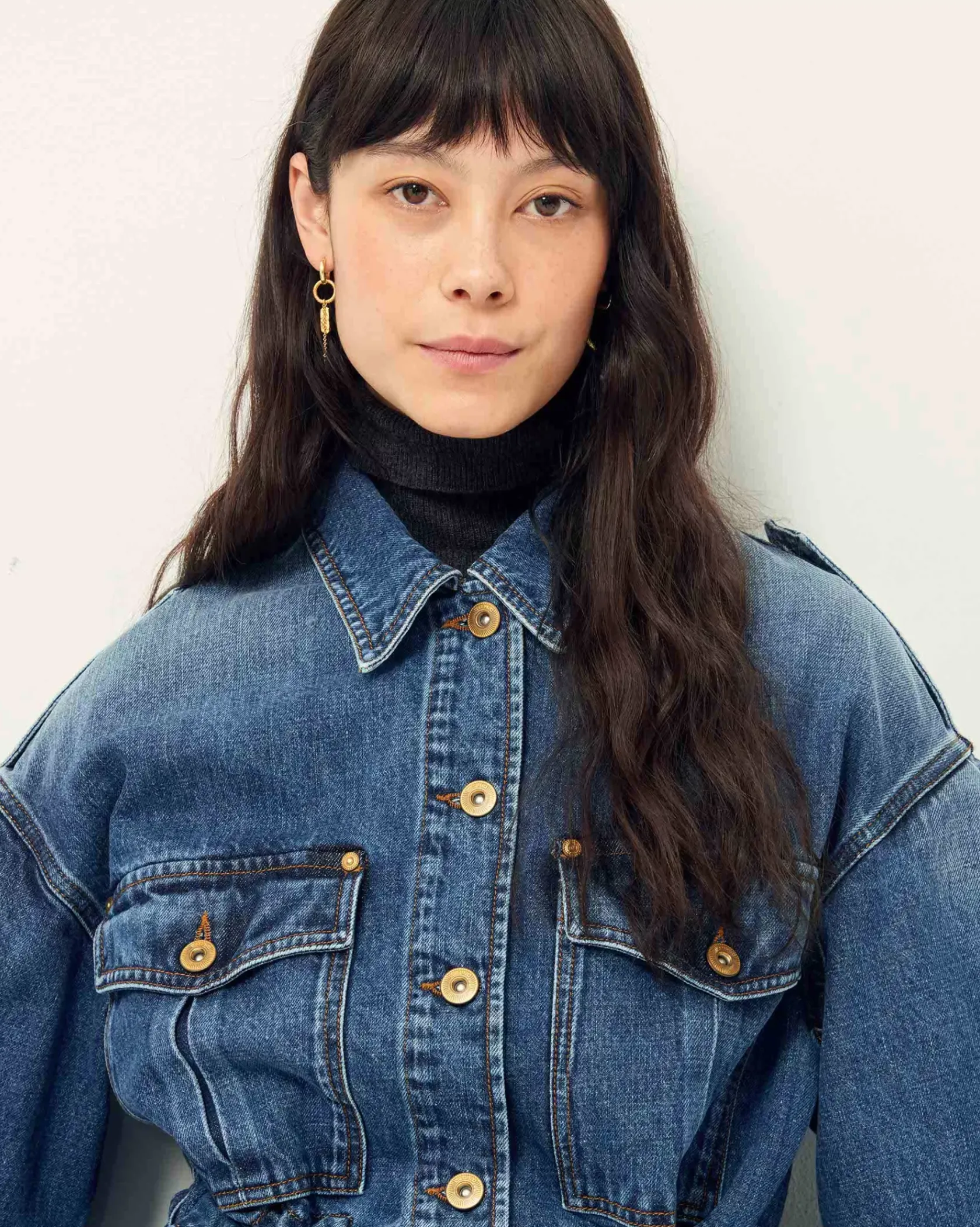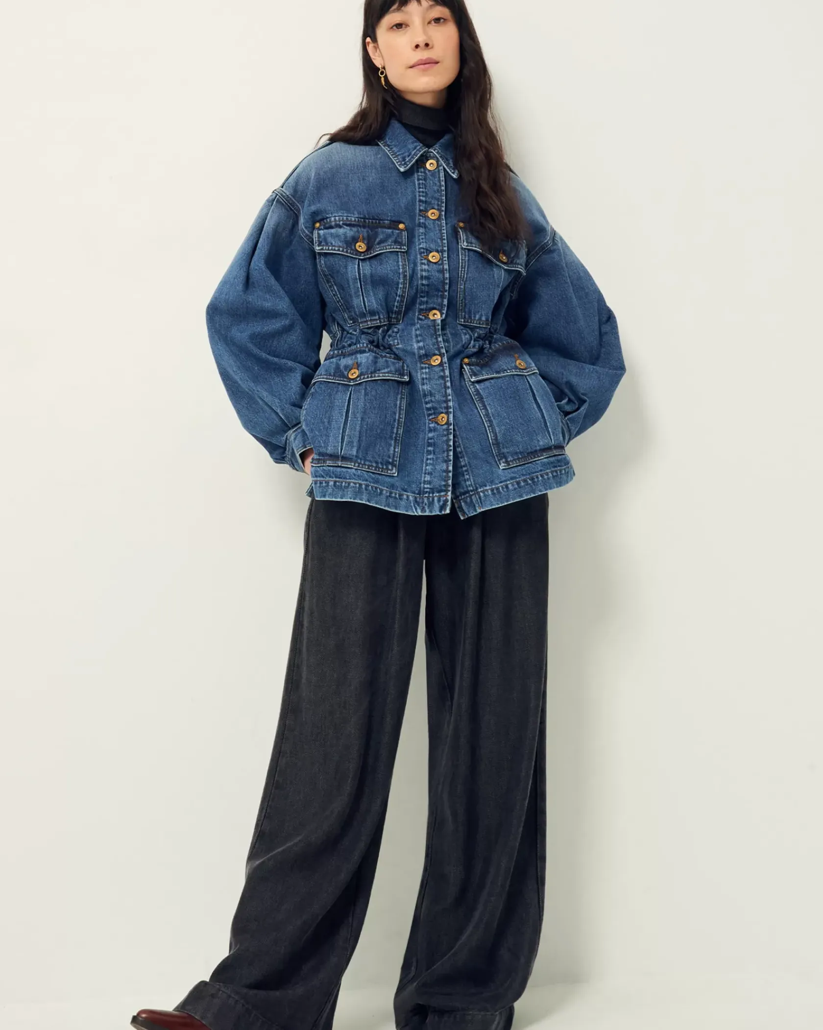 Veste esprit worker à manches ballon en denim stonewashé.