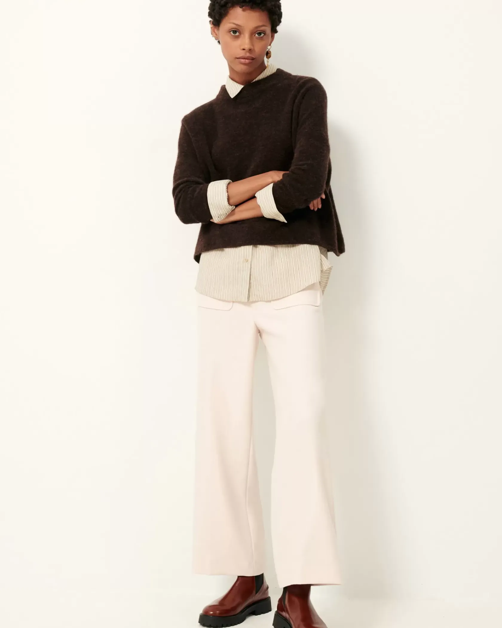 Pull ample en maille duveteuse point jersey.