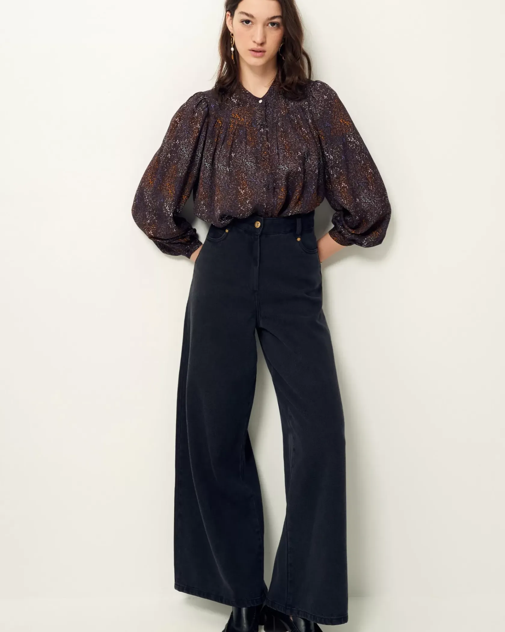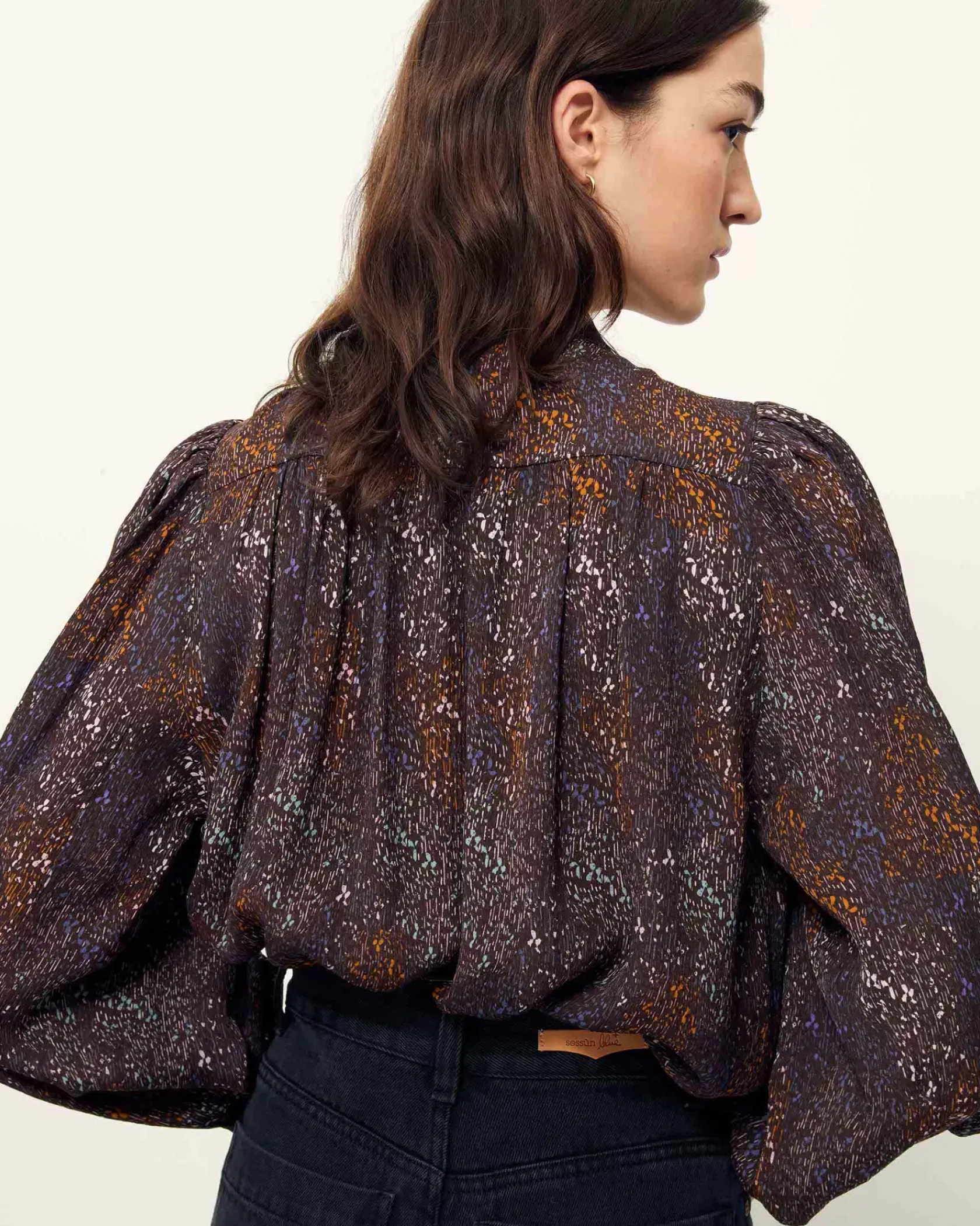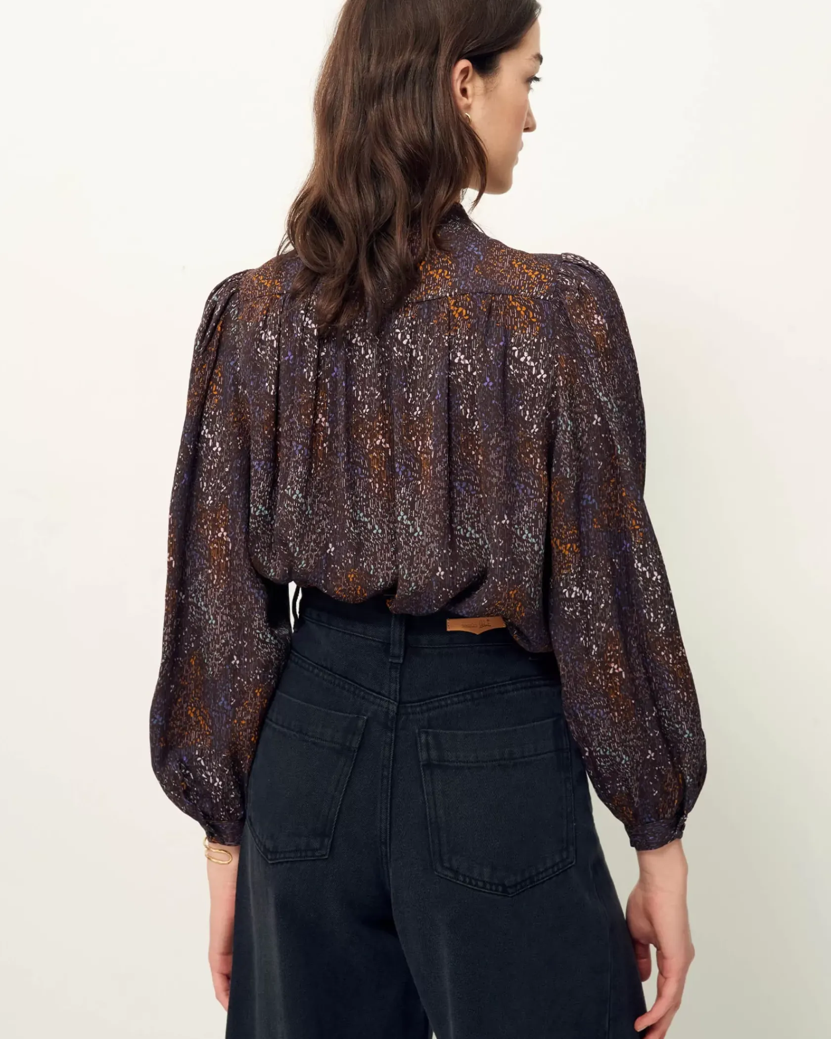 Blouse froncée et manches ballon en crépon dobby de viscose, motif exclusif Sessùn.