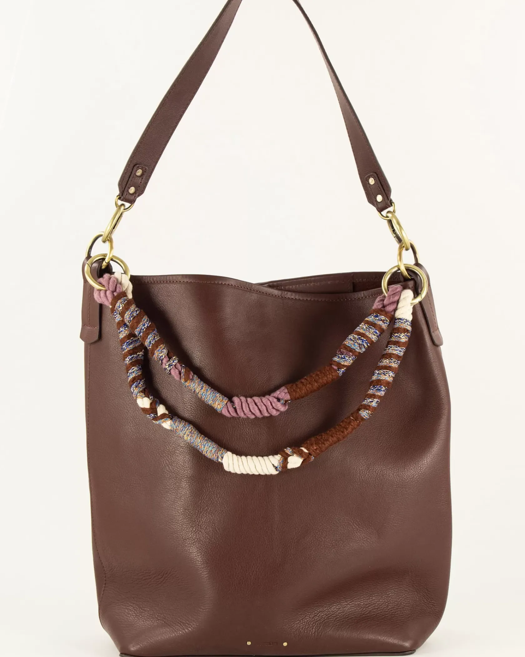 Large sac en cuir de vache, jeu de anses fantaisie et cuir.