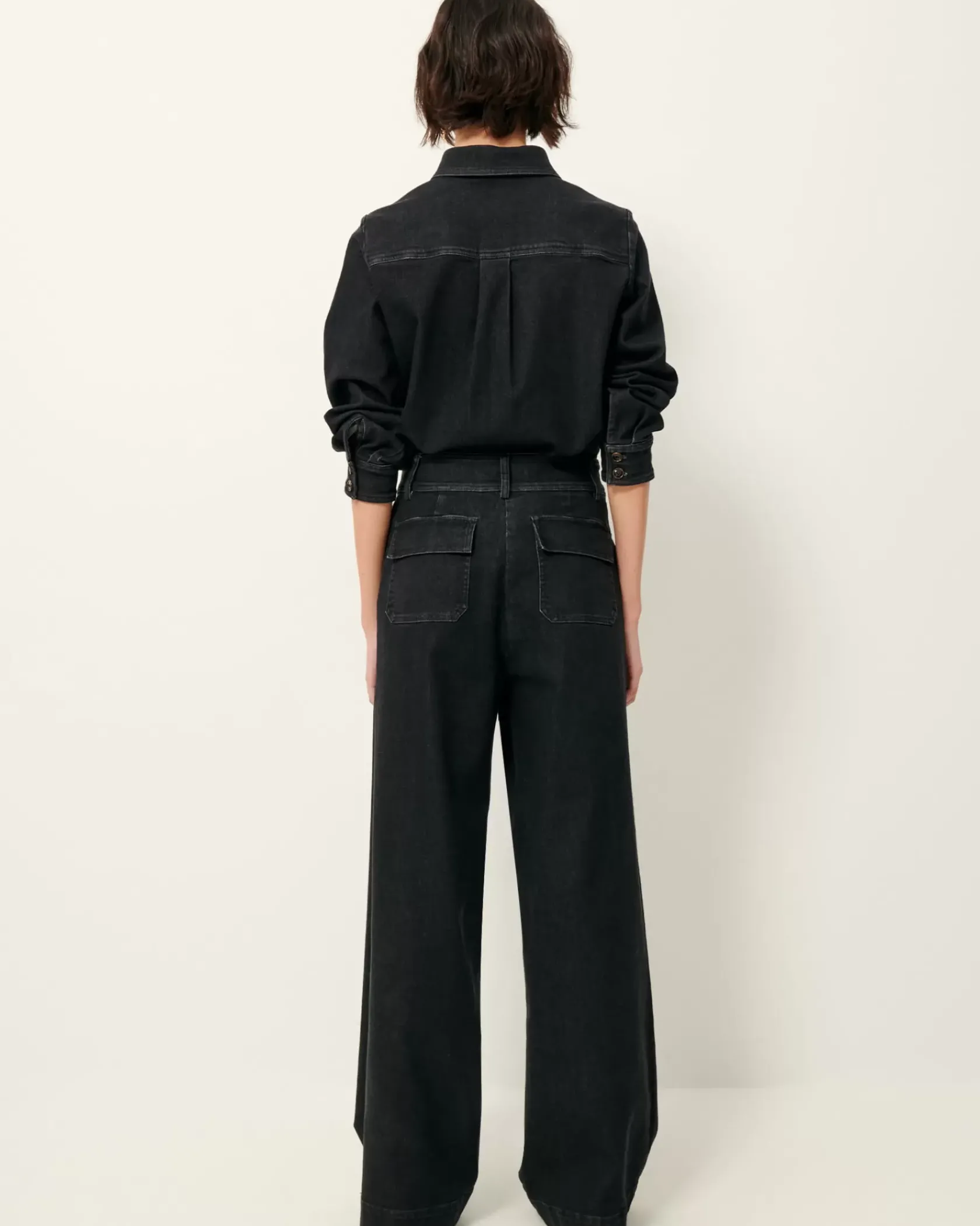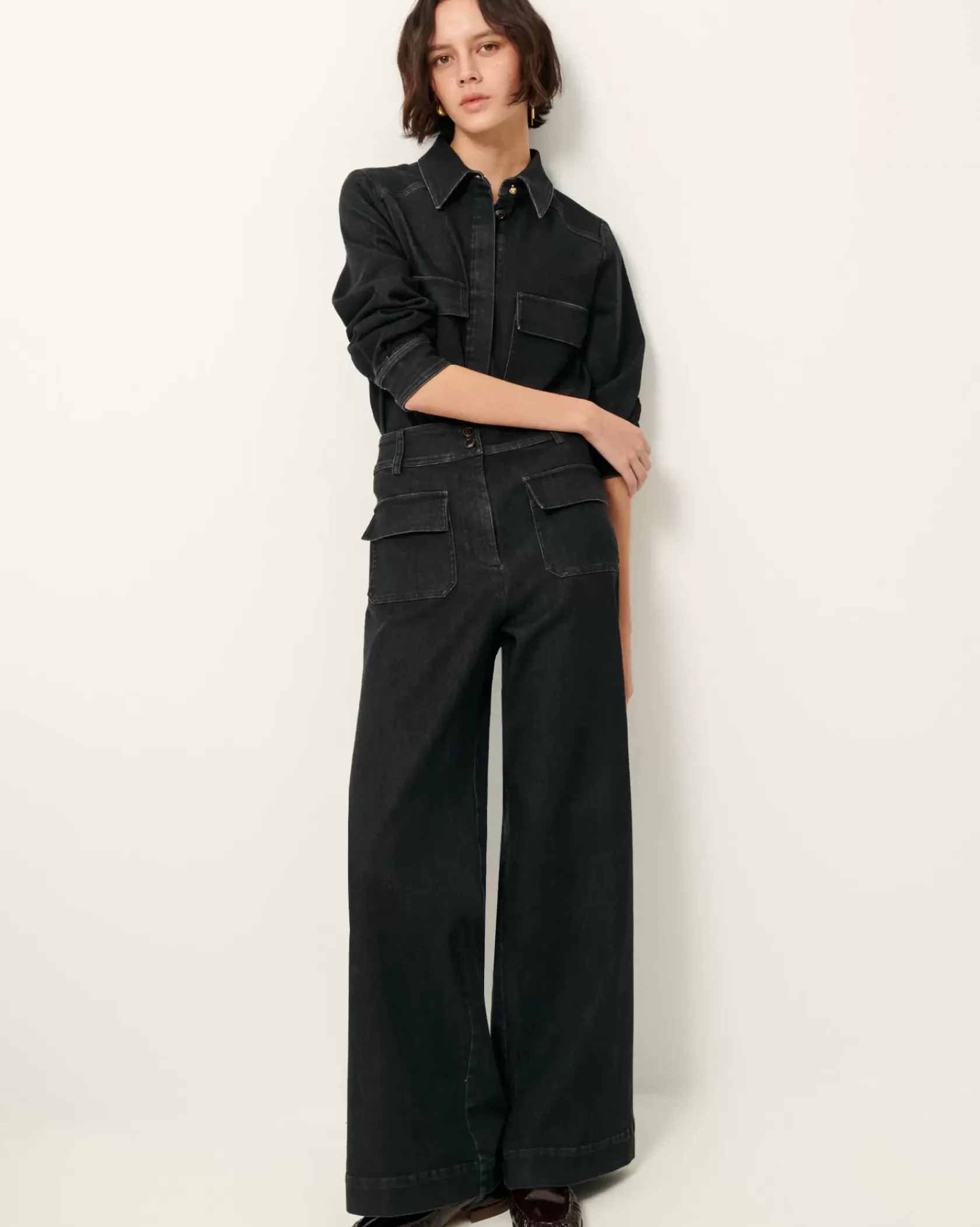 Pantalon évasé en sergé denim lavé, tissé au Portugal.