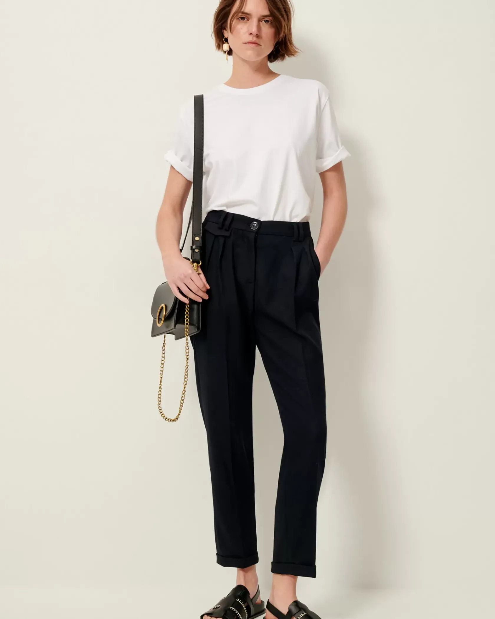 Pantalon tailoring à plis en toile à armure quadrillée.