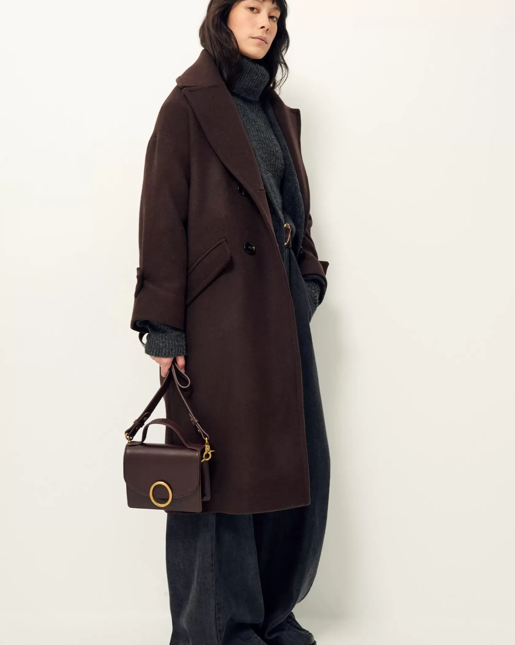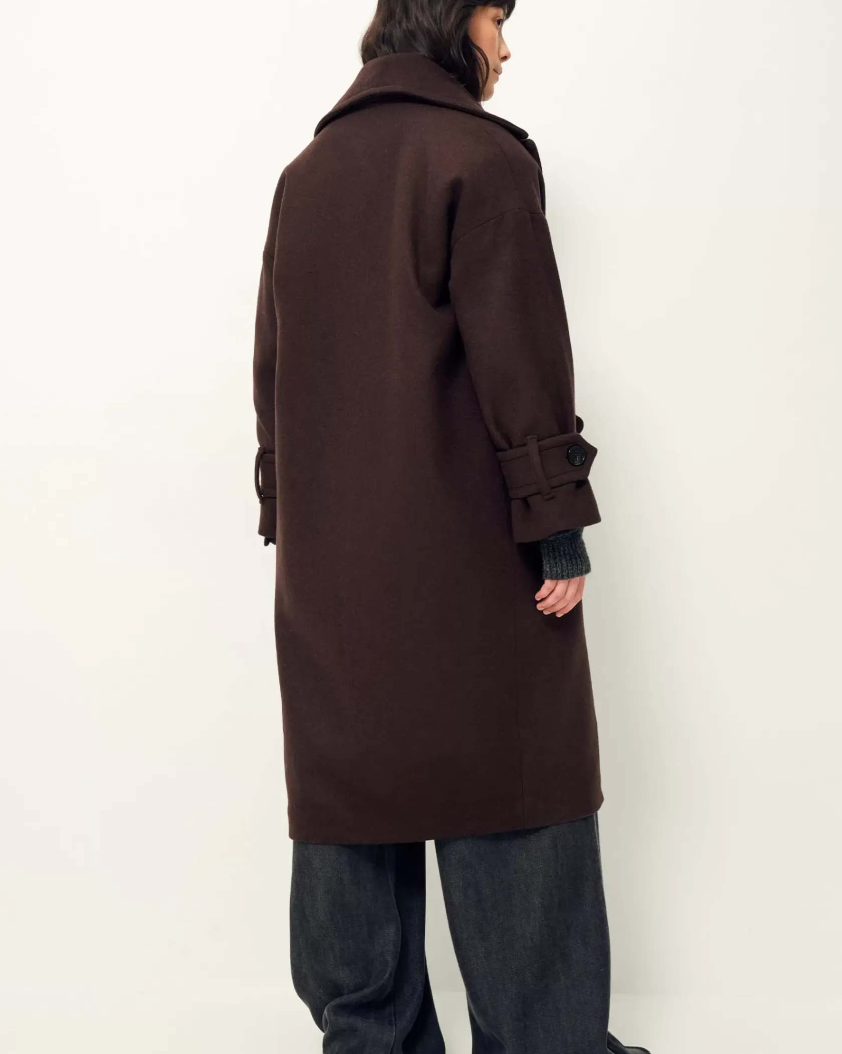 Manteau long à double boutonnage en double tissage melton finition velvet tissé en Italie.