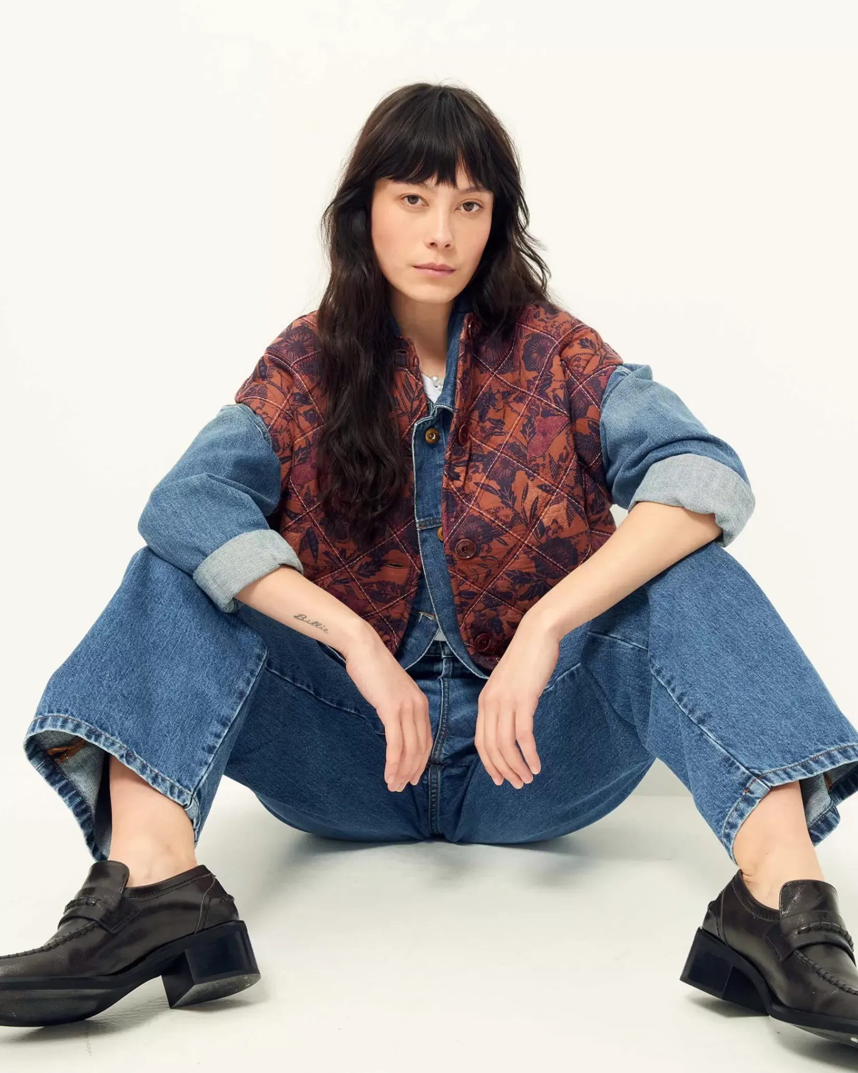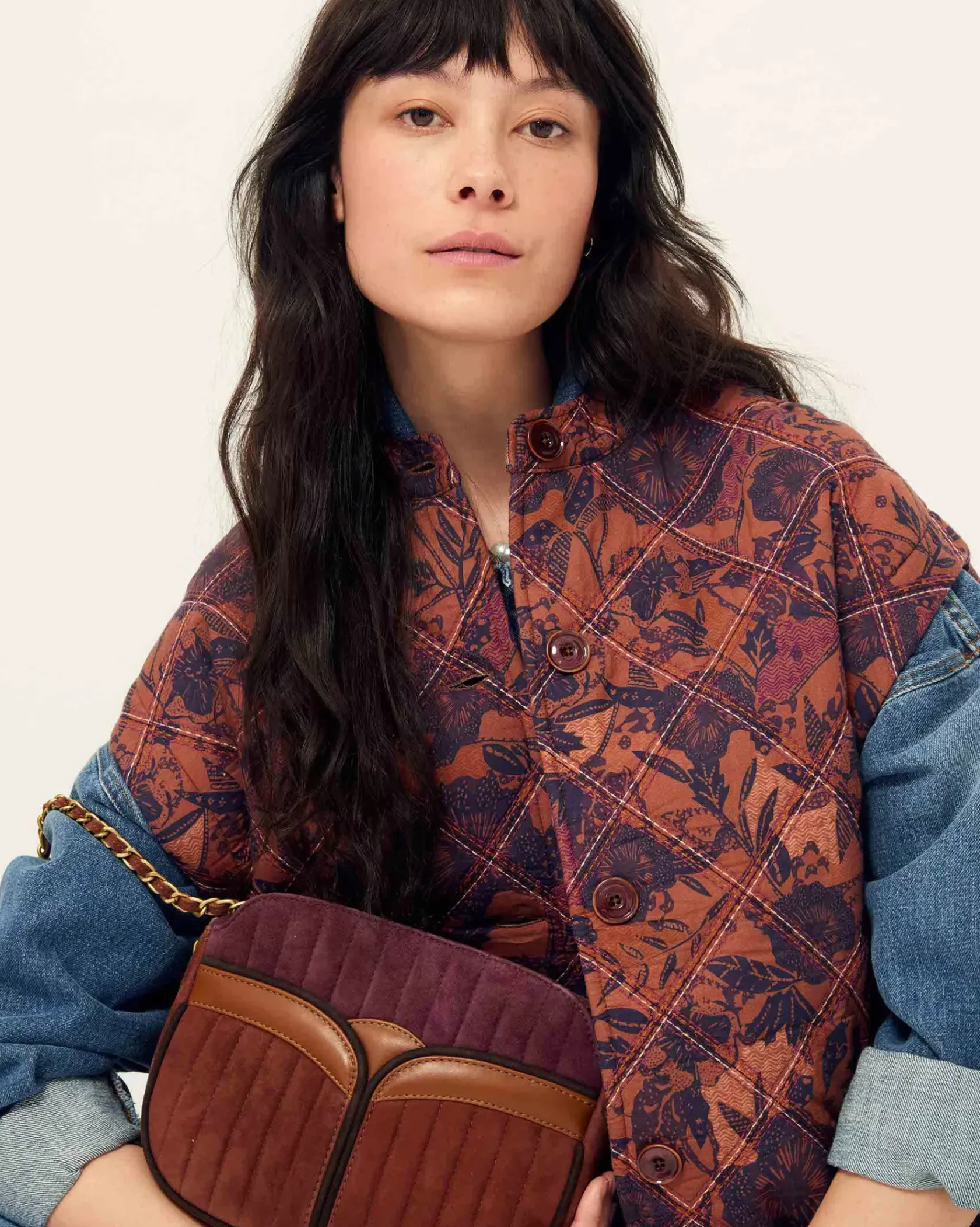 Veste sans manches boutonnée en batiste de coton légère matelassée, imprimée esprit « block print », motif exclusif Sessùn.