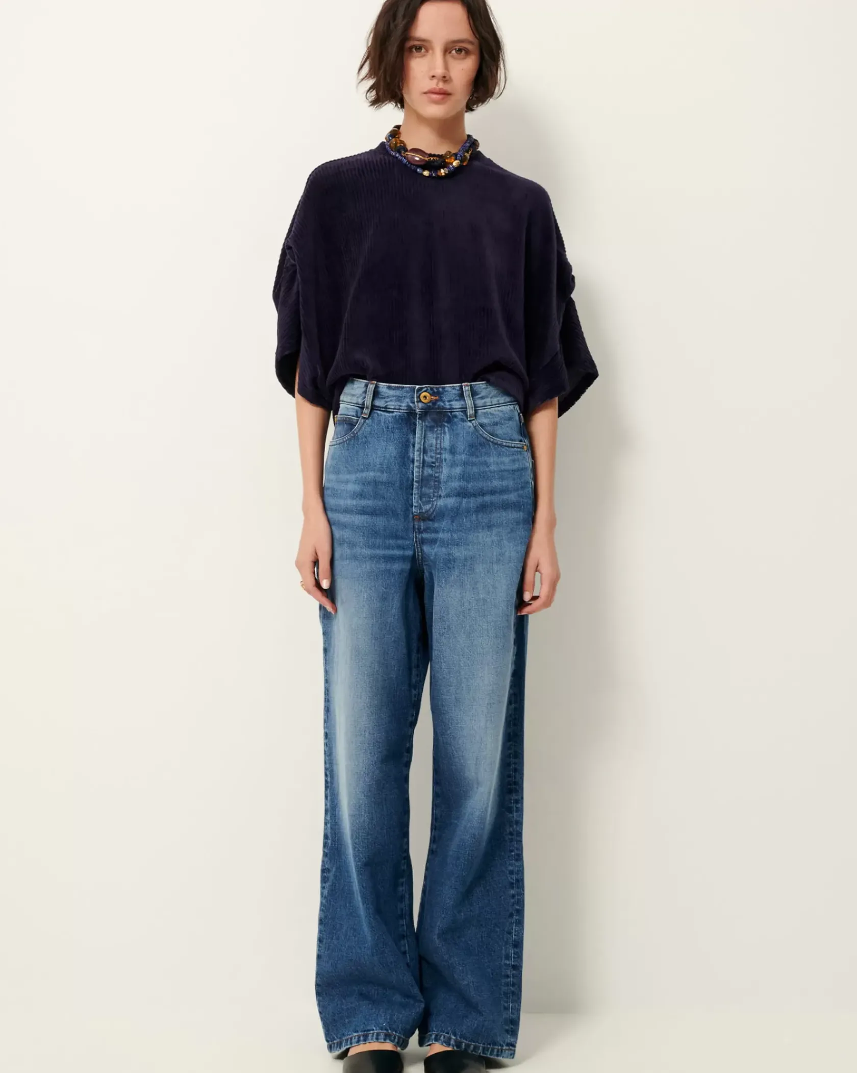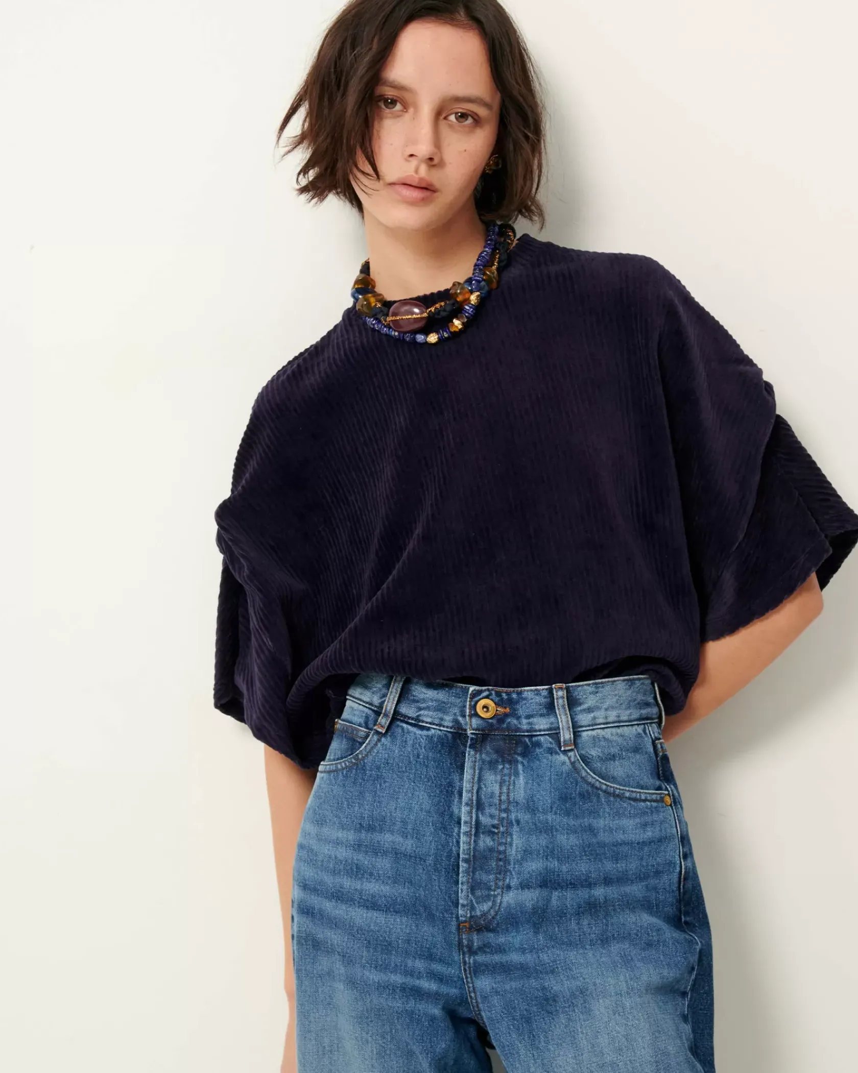 T-shirt à manches courtes nouées aux épaules en jersey velours côtelé confectionné au Portugal.