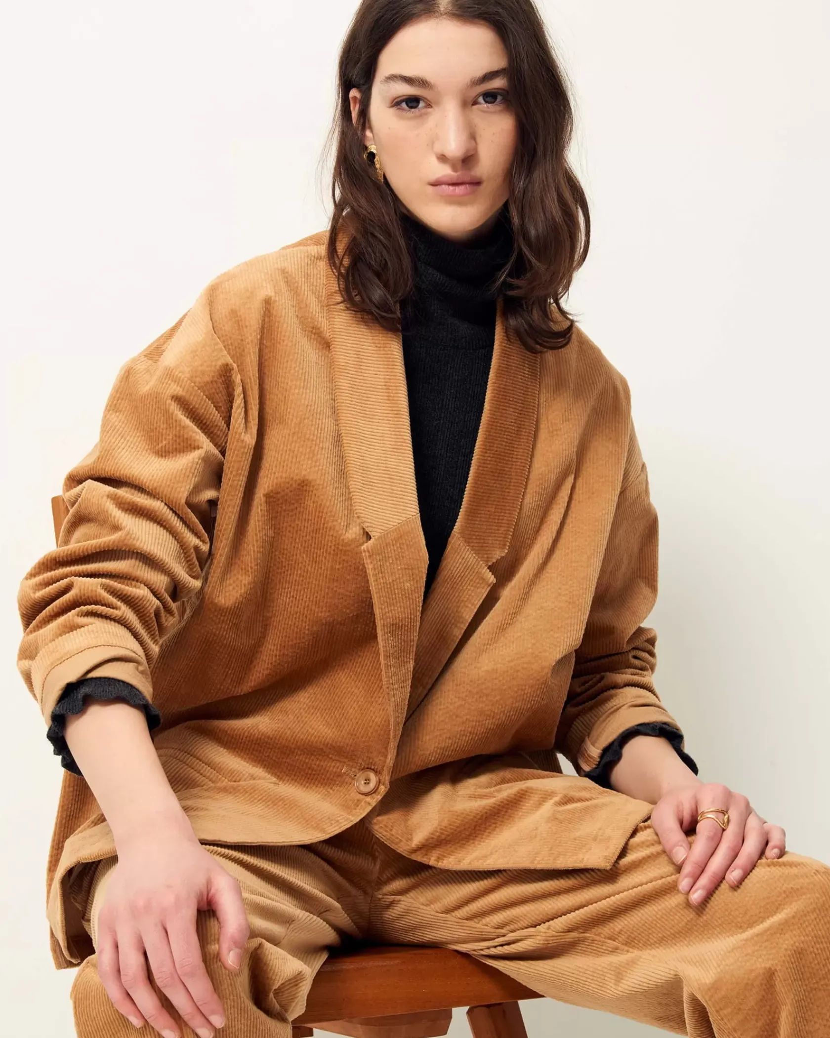 Veste de costume non doublée en velours côtelé 300 raies.