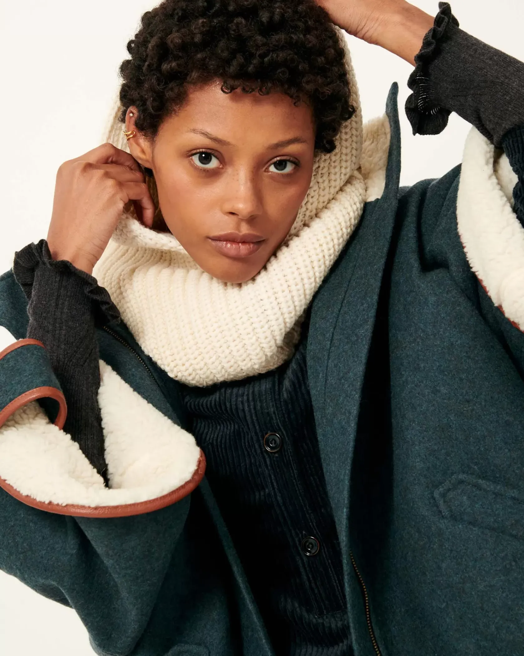 Fausse fourrure de mouton contrastée en doublure.