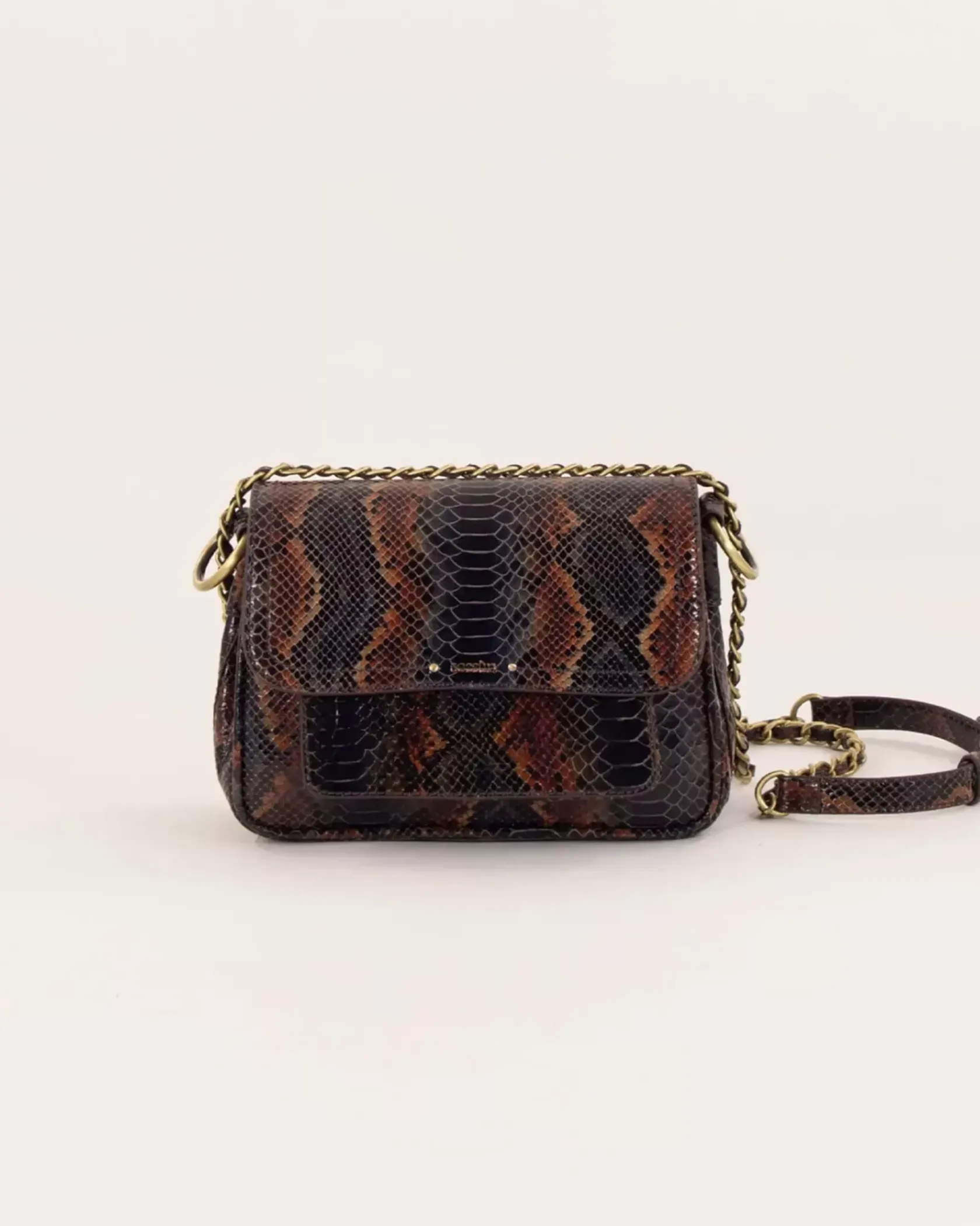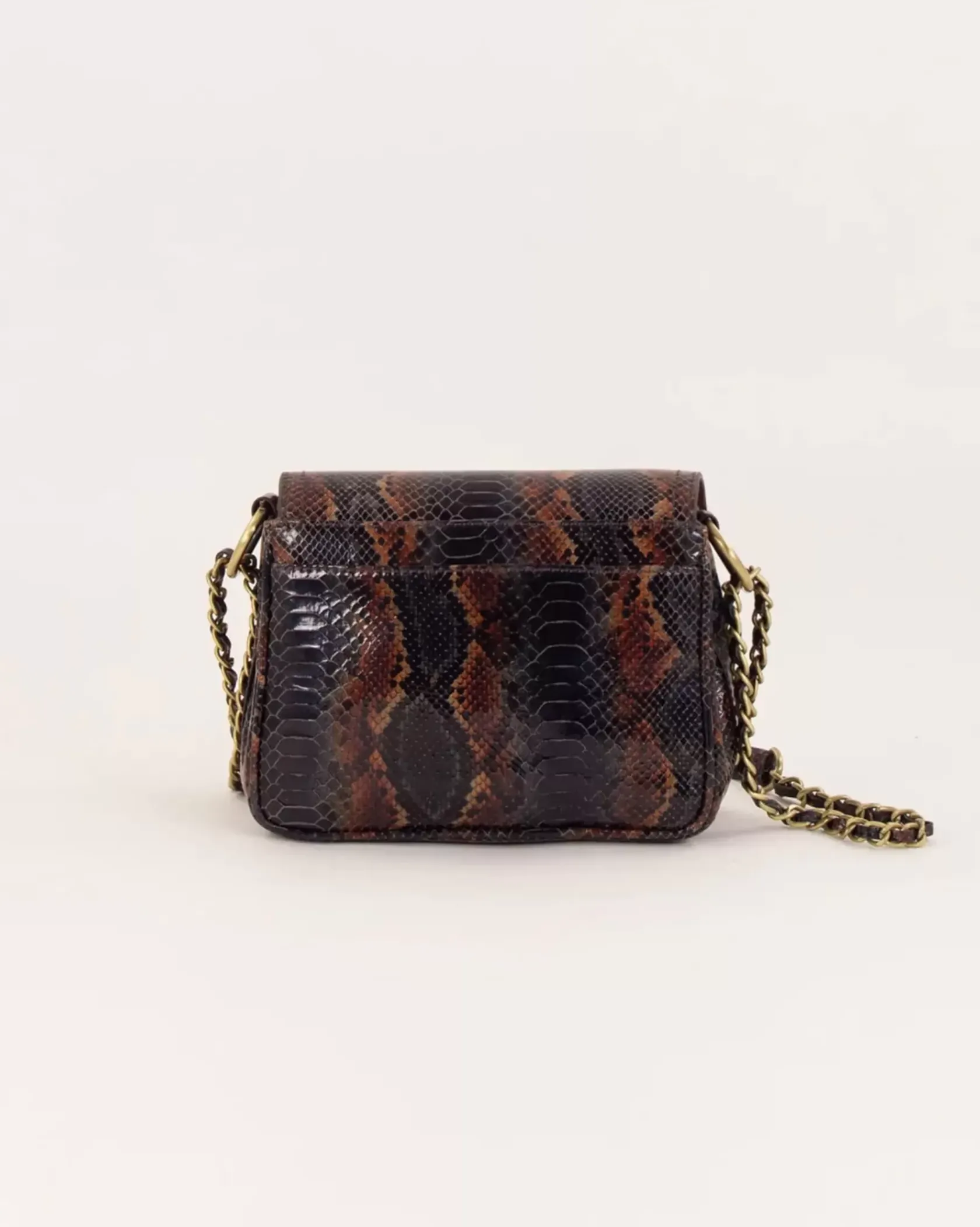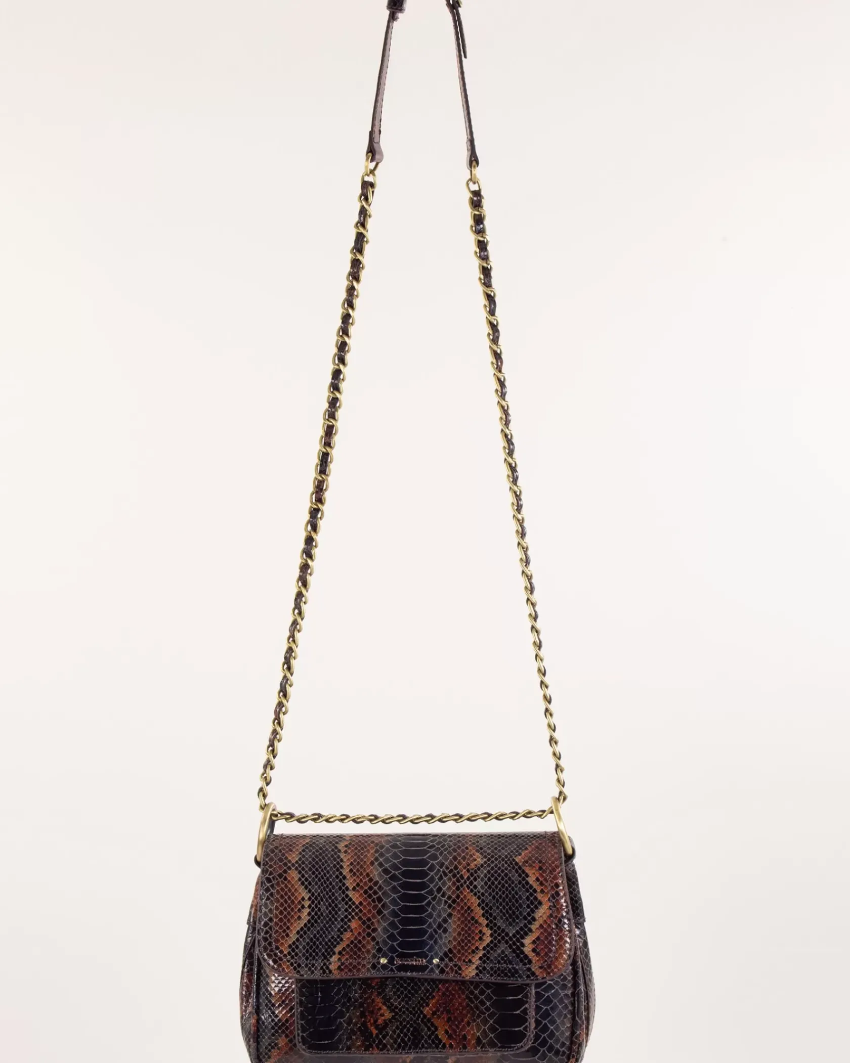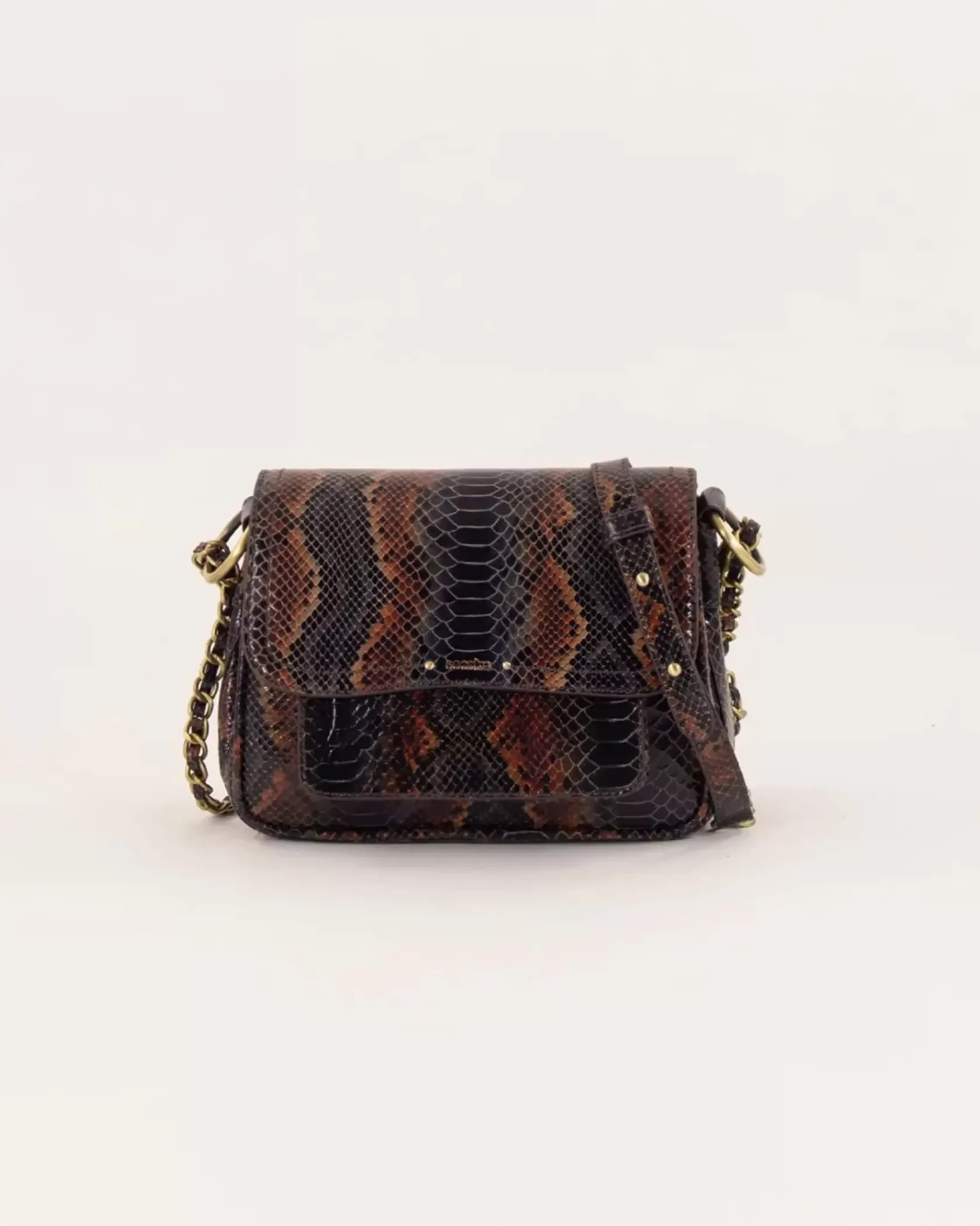 Petit sac besace en croûte de cuir imprimée façon python.