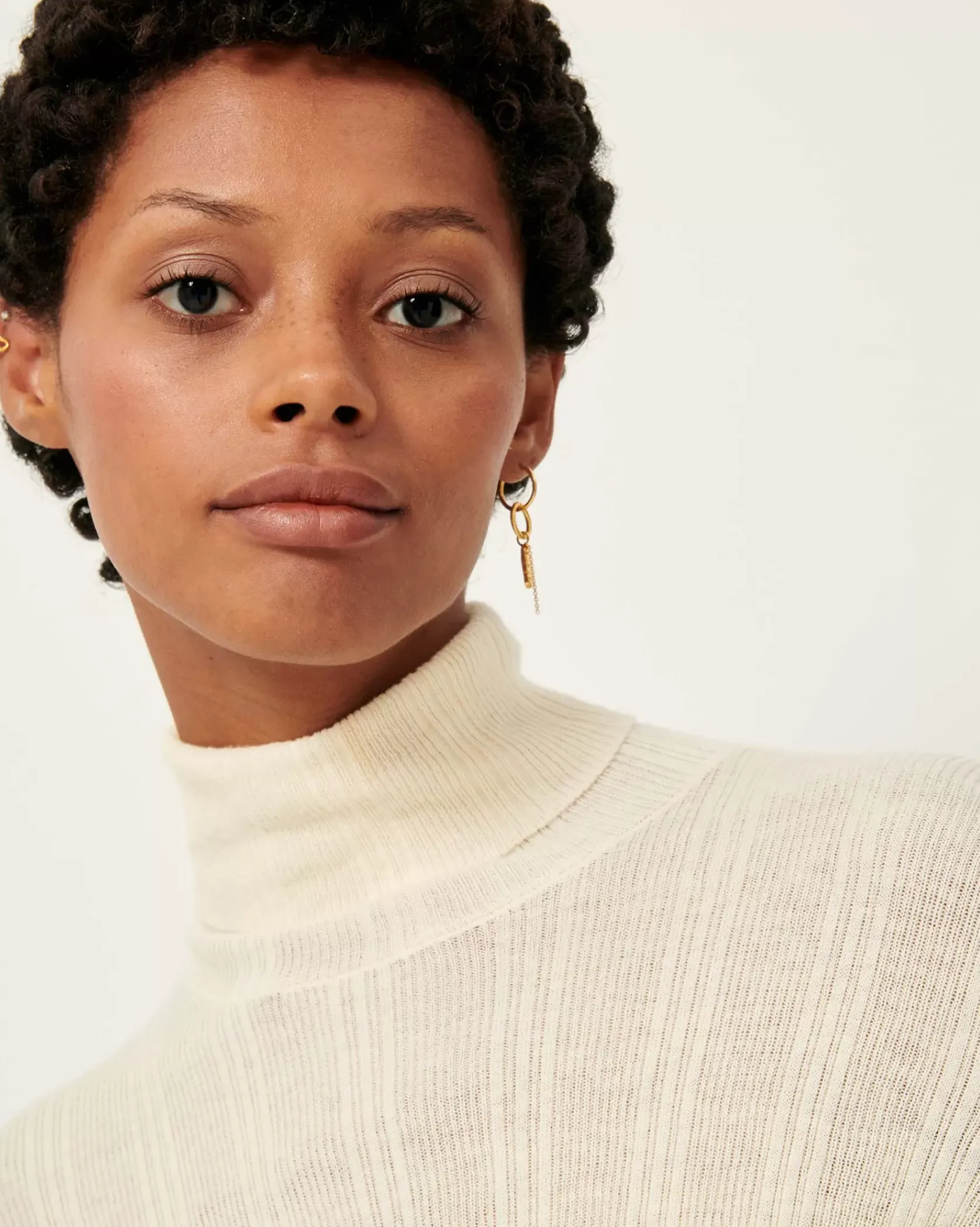 Pull col roulé ajusté maille fine jauge et jeu de côtes graphique aux côtés et aux manches.