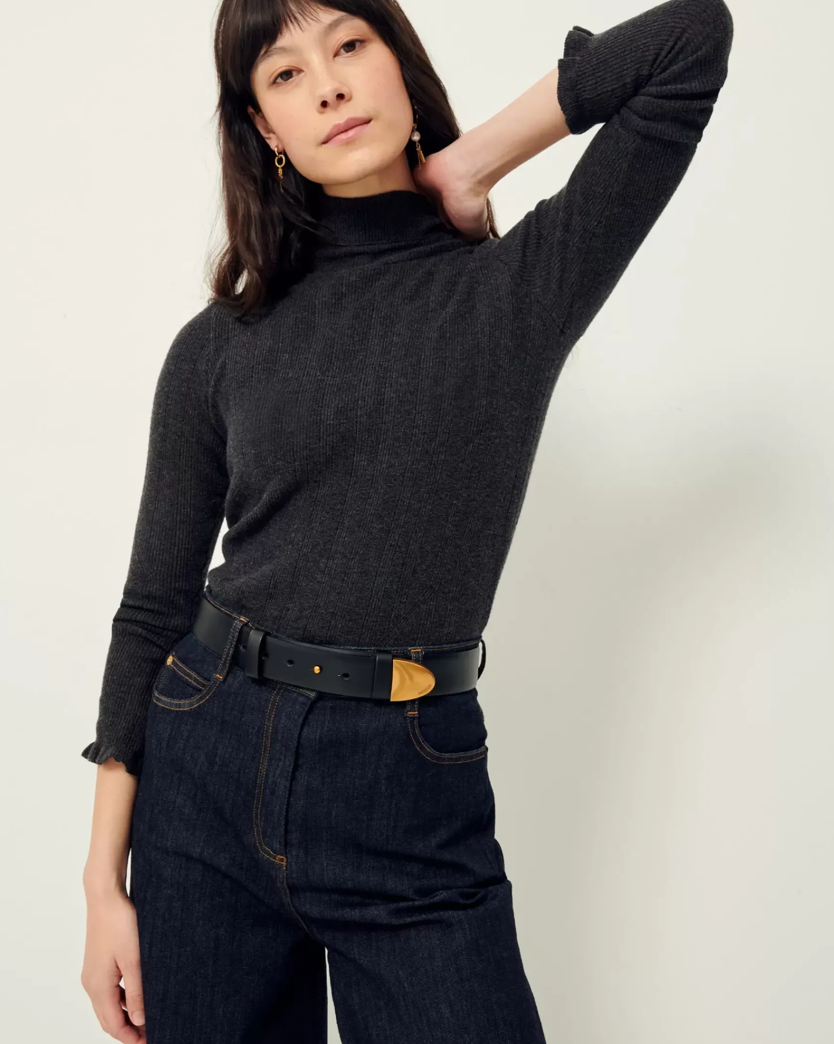 Pull col roulé ajusté maille fine jauge et jeu de côtes graphique aux côtés et aux manches.