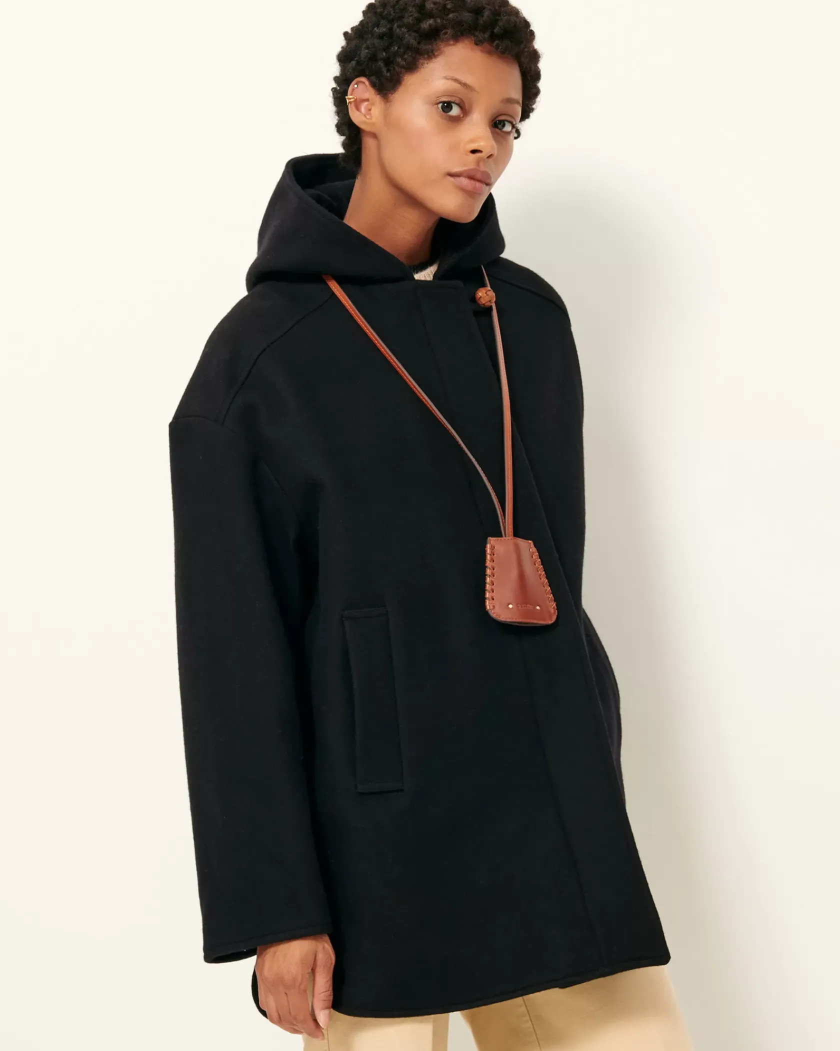 Manteau oversize à capuche en toile de coton organique enduite déperlante, tissée en Italie.