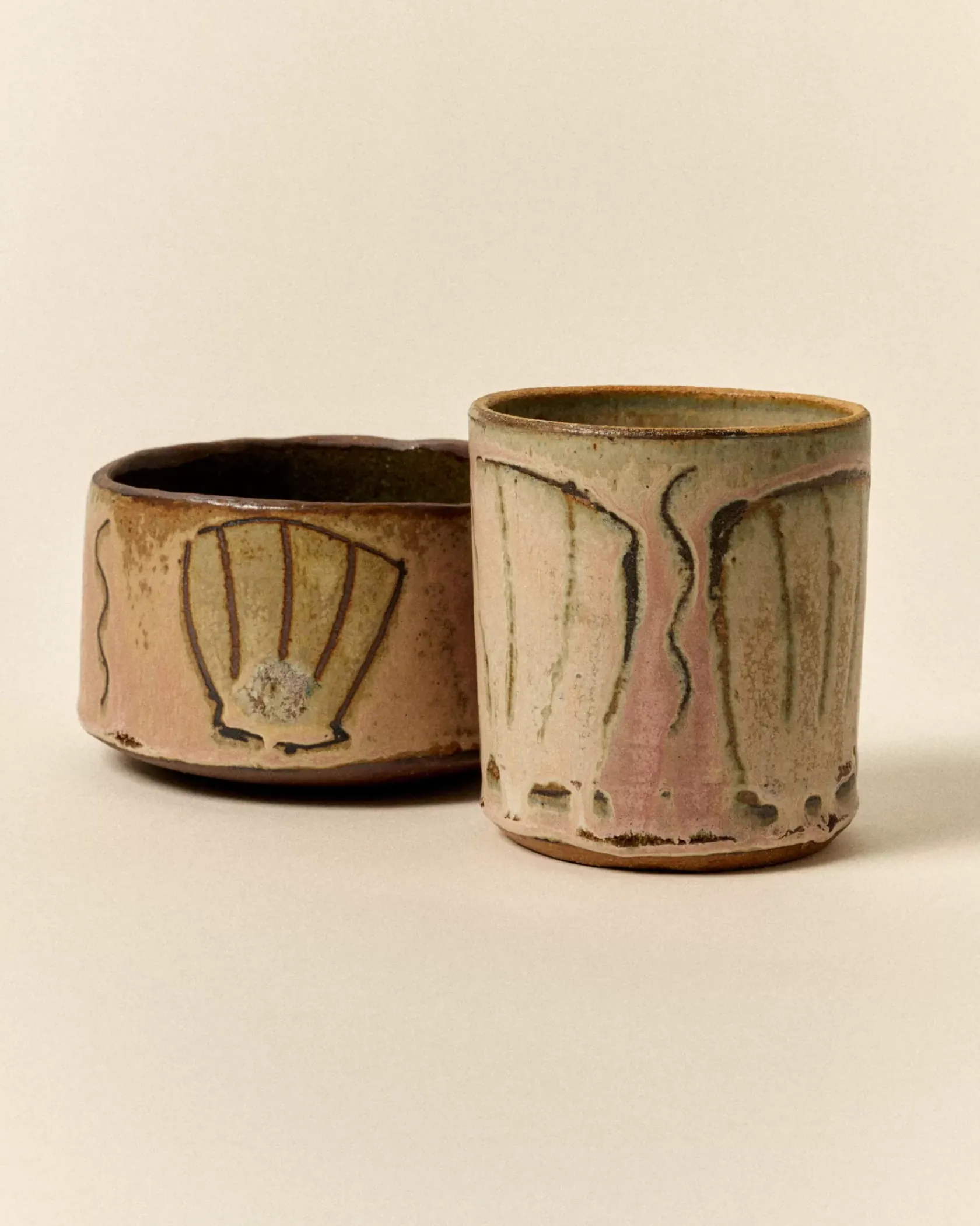 Pour cette collection, elle travaille le grès en cuisson réductrice. Ce mode de cuisson, où l’apport en oxygène est réduit, permet à la terre de révéler sa plus belle robe et d’obtenir des émaux aux nuances vibrantes.