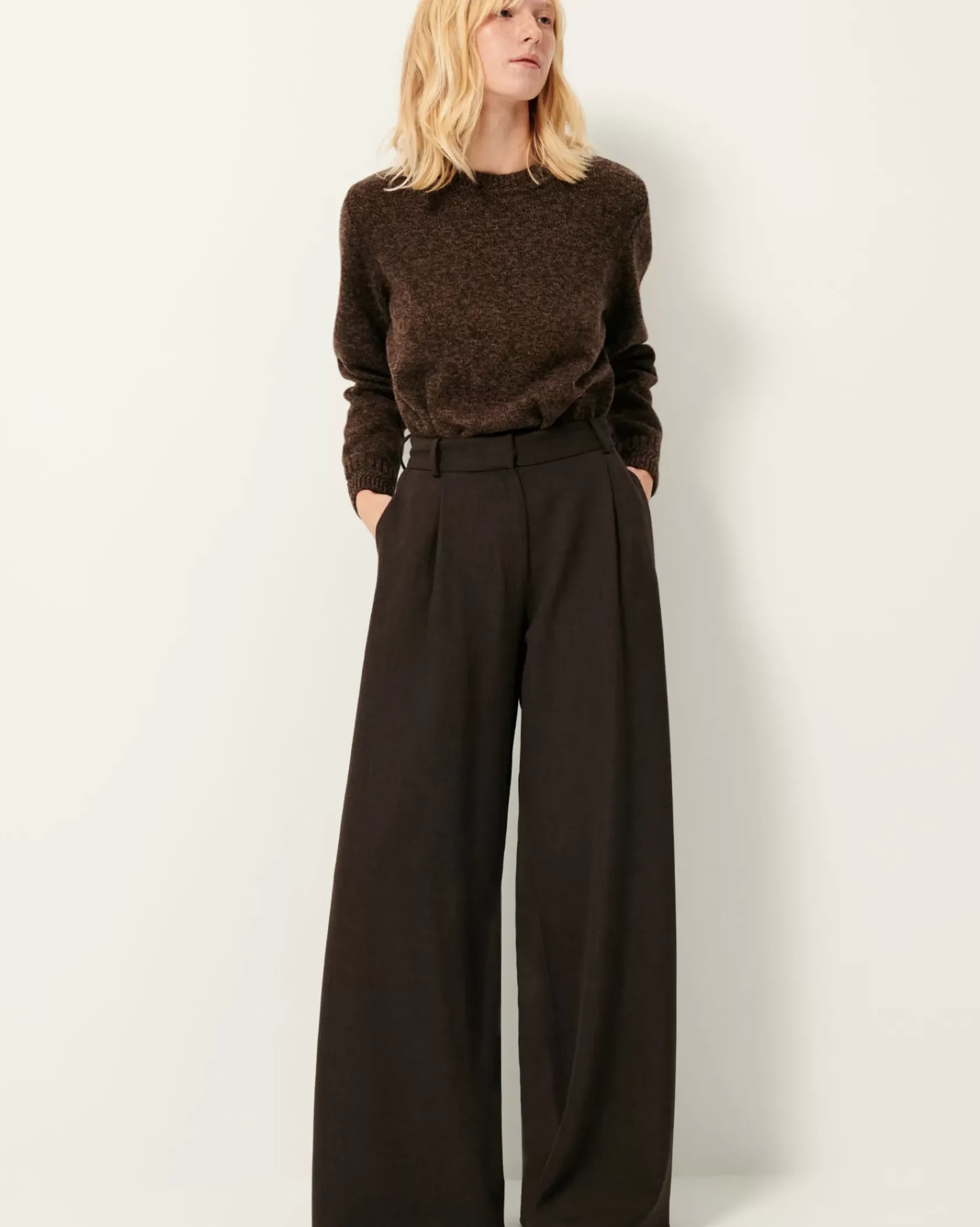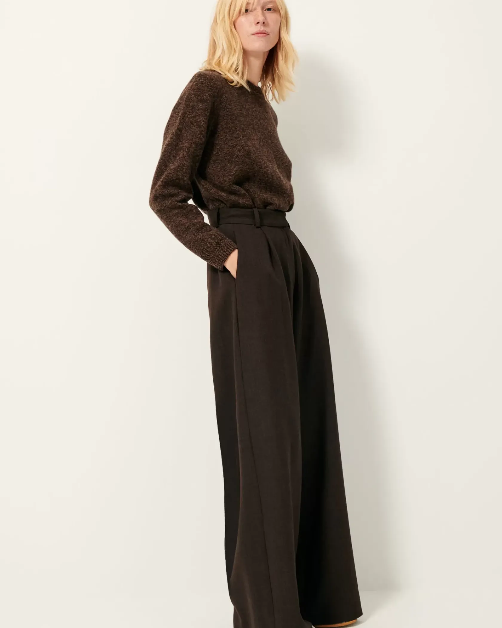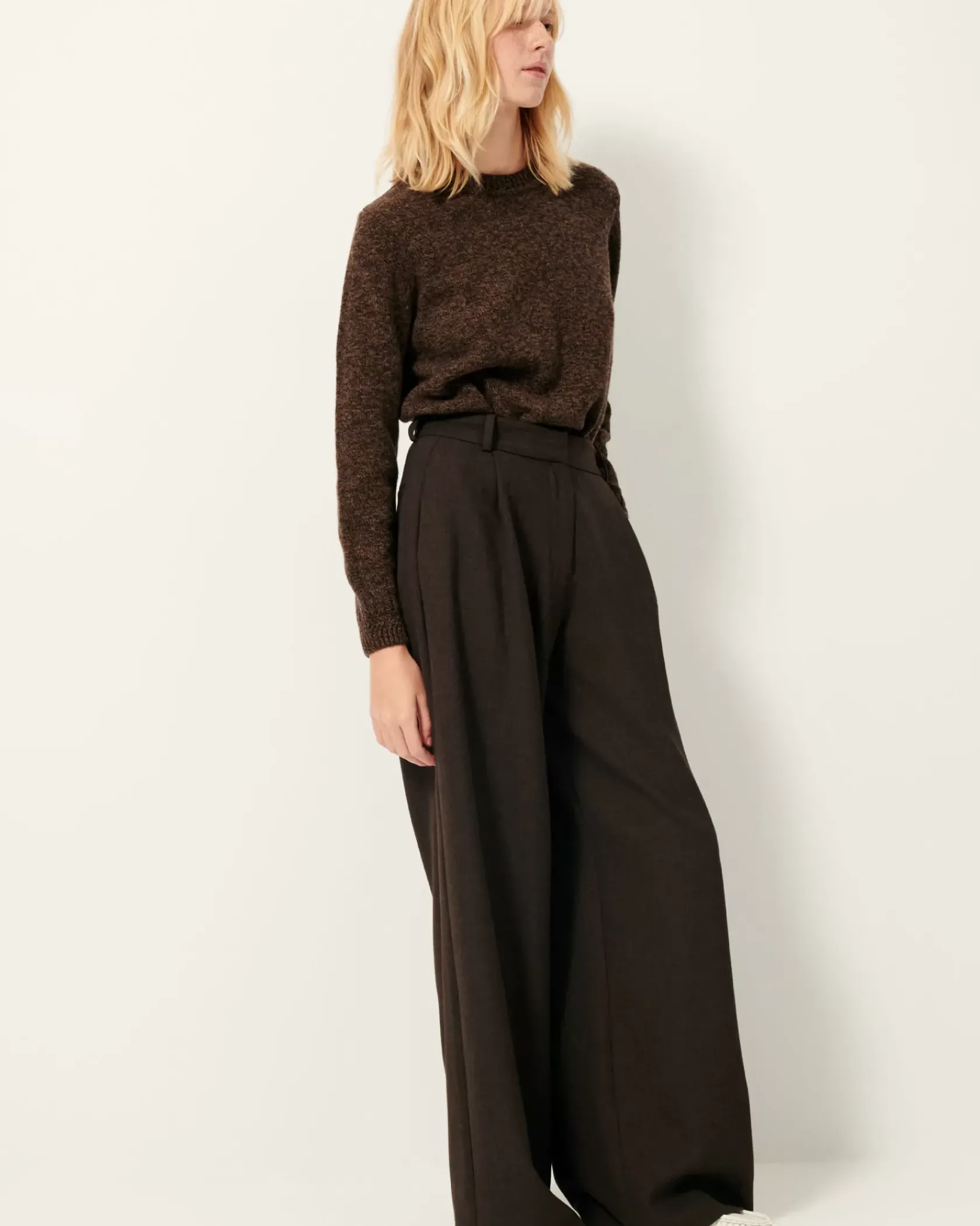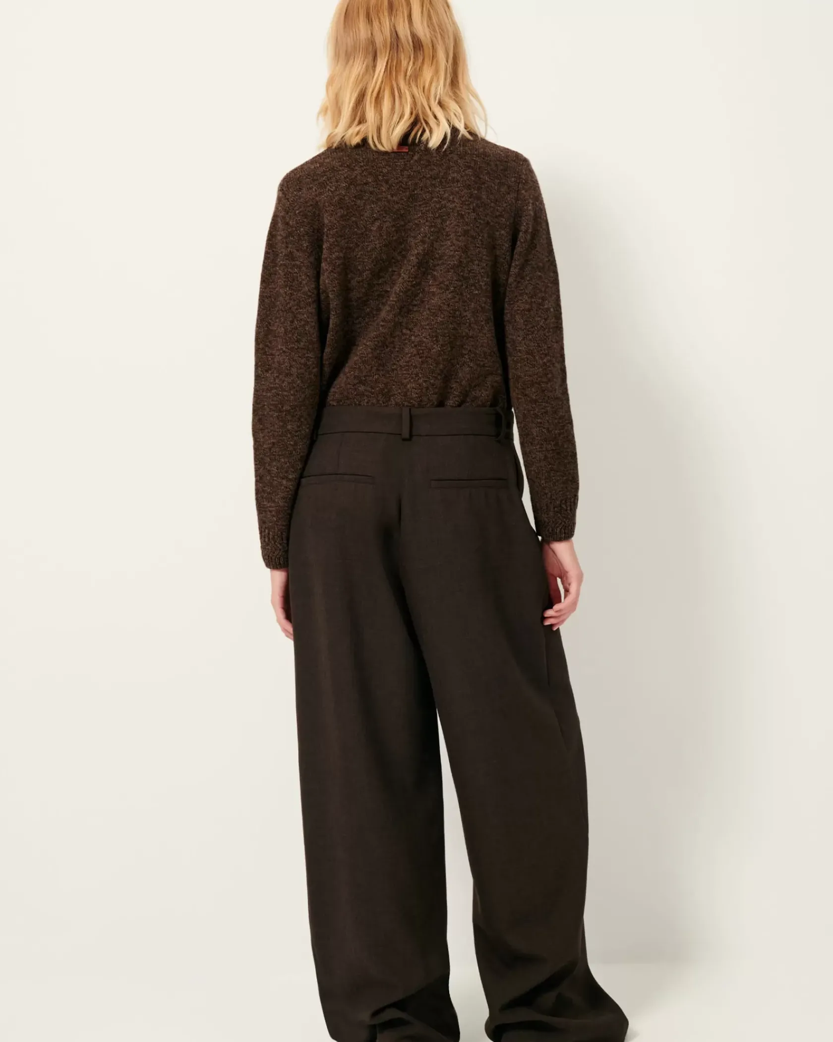 Pantalon ample d’inspiration masculine taille haute en flanelle marengo fluide.