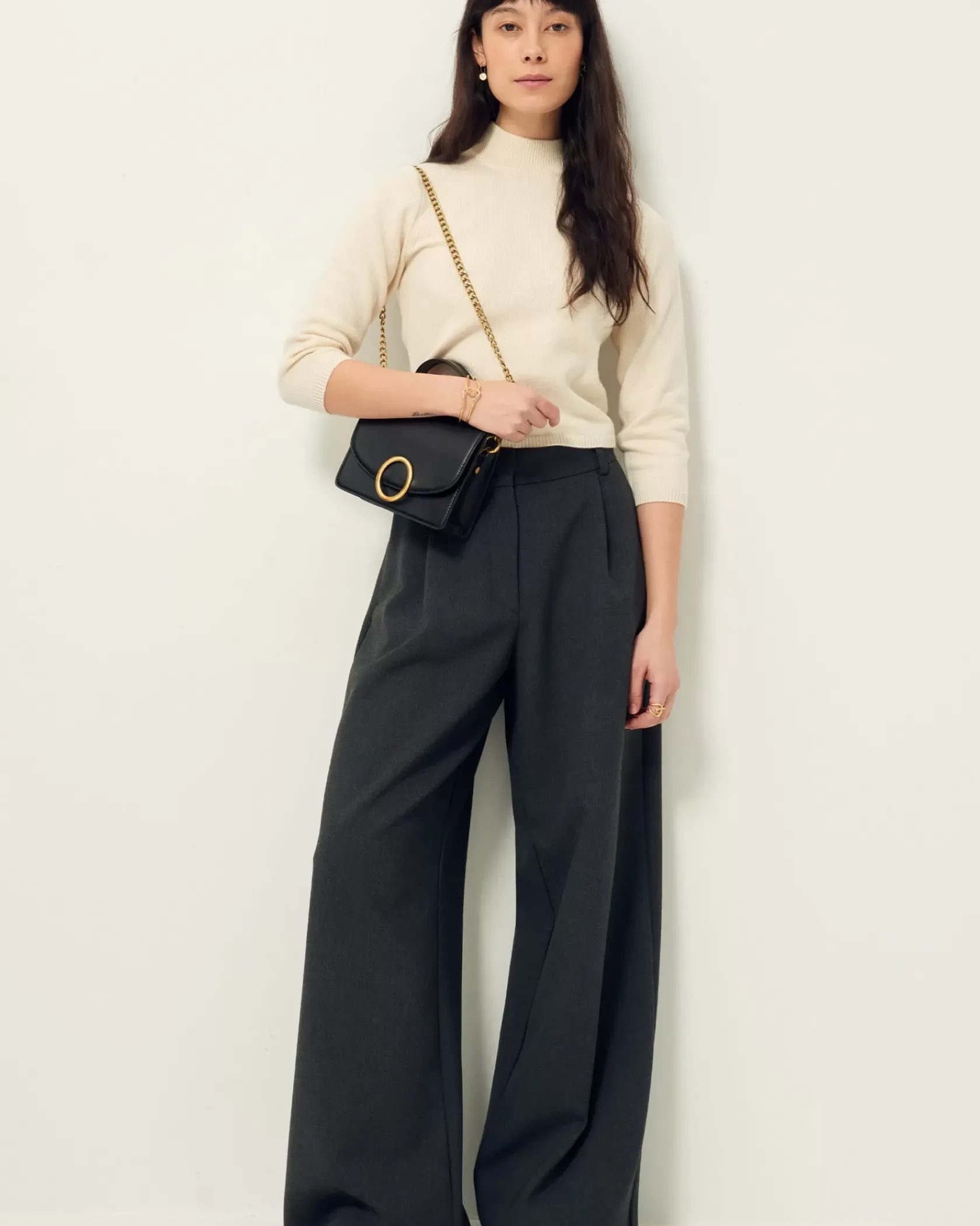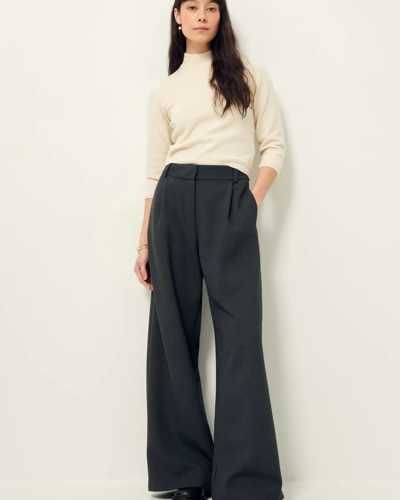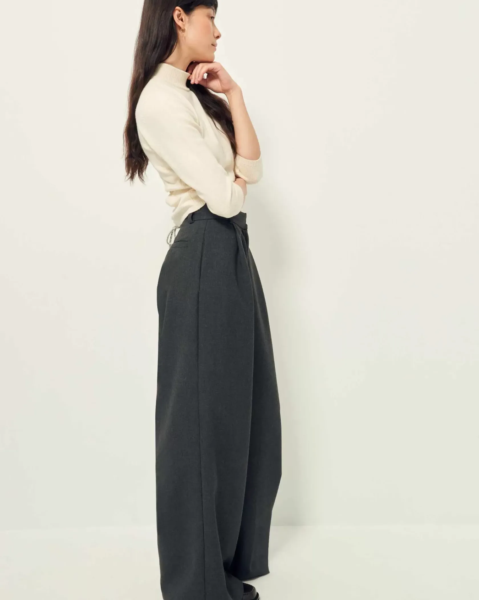 Pantalon ample d’inspiration masculine taille haute en flanelle marengo fluide.