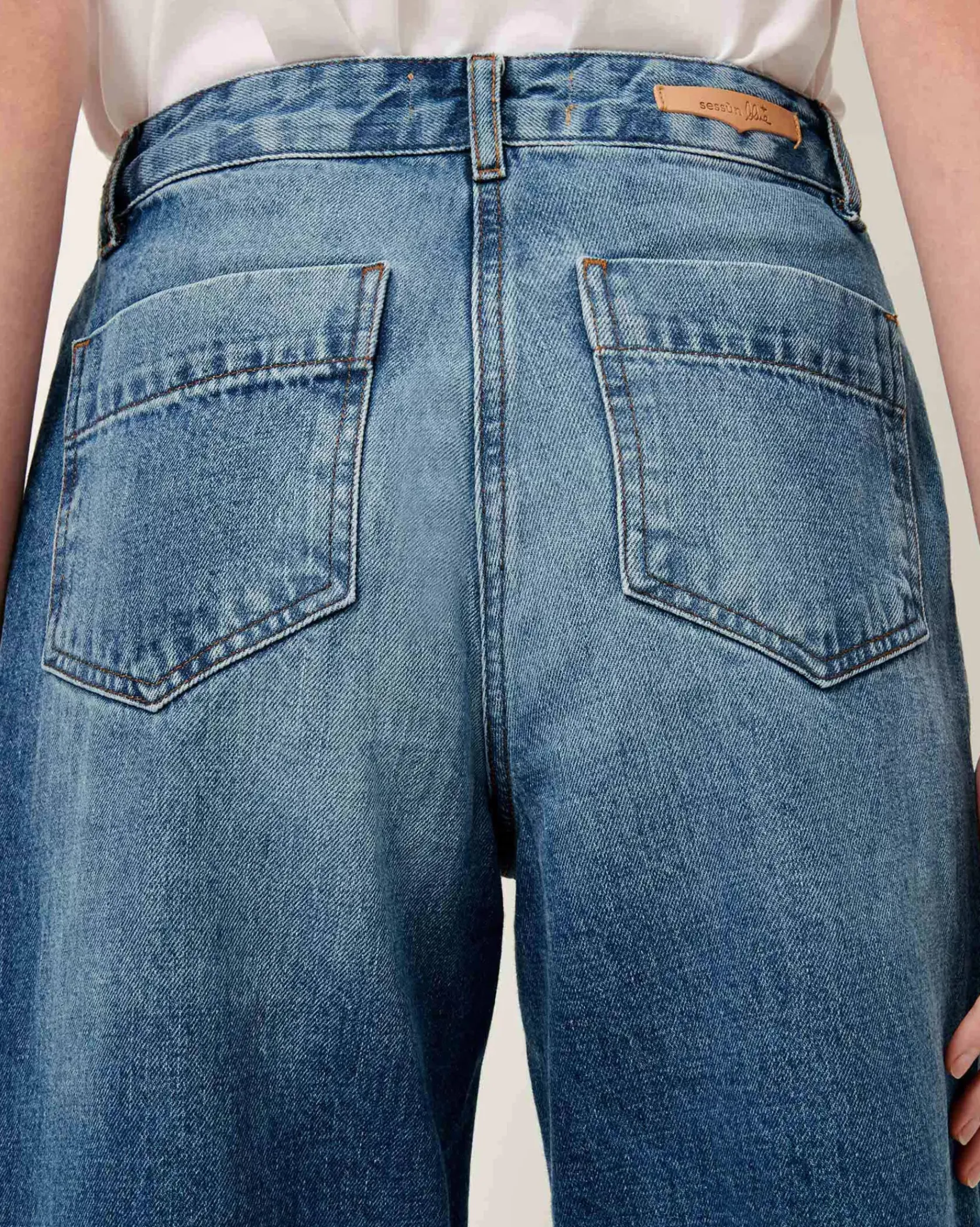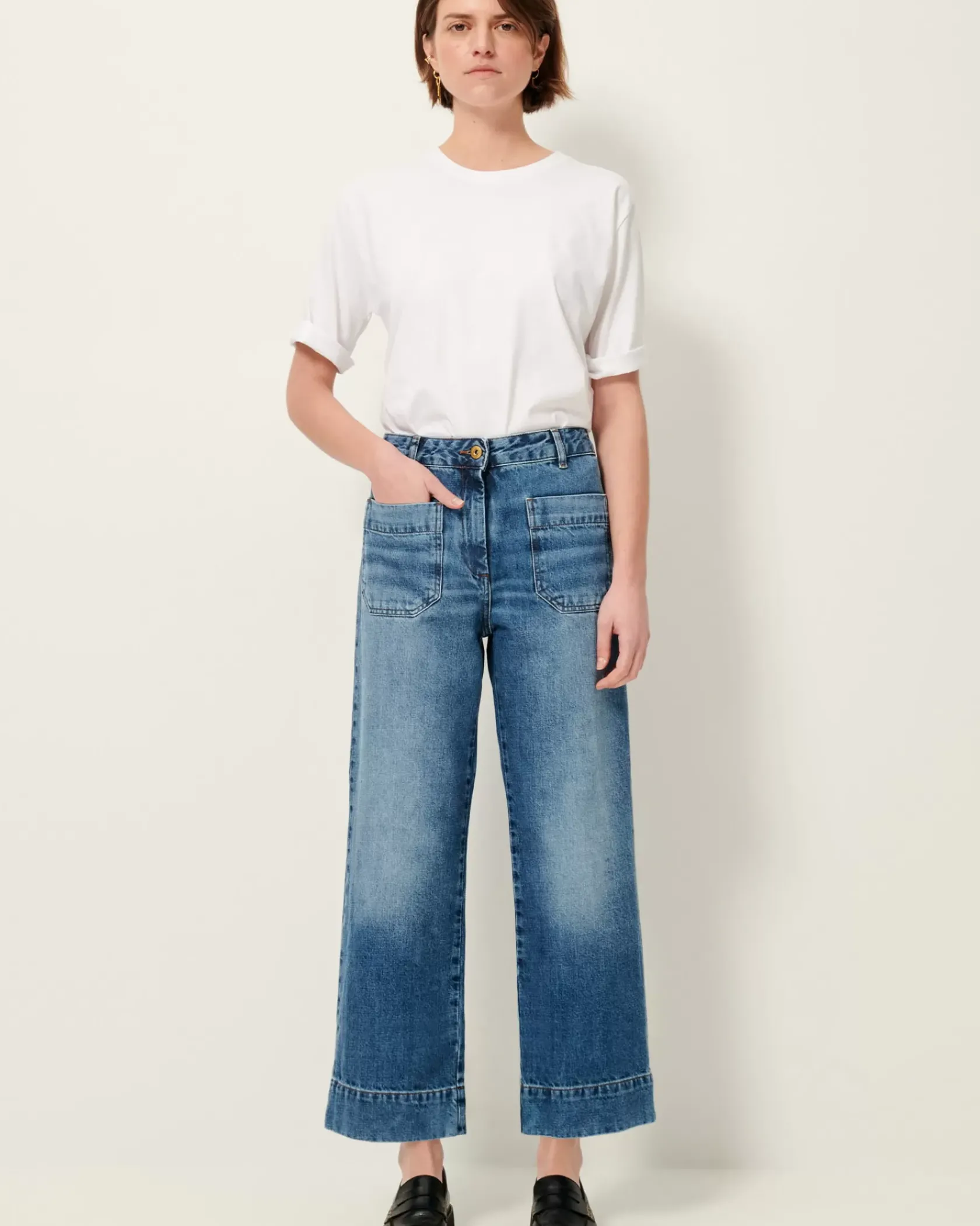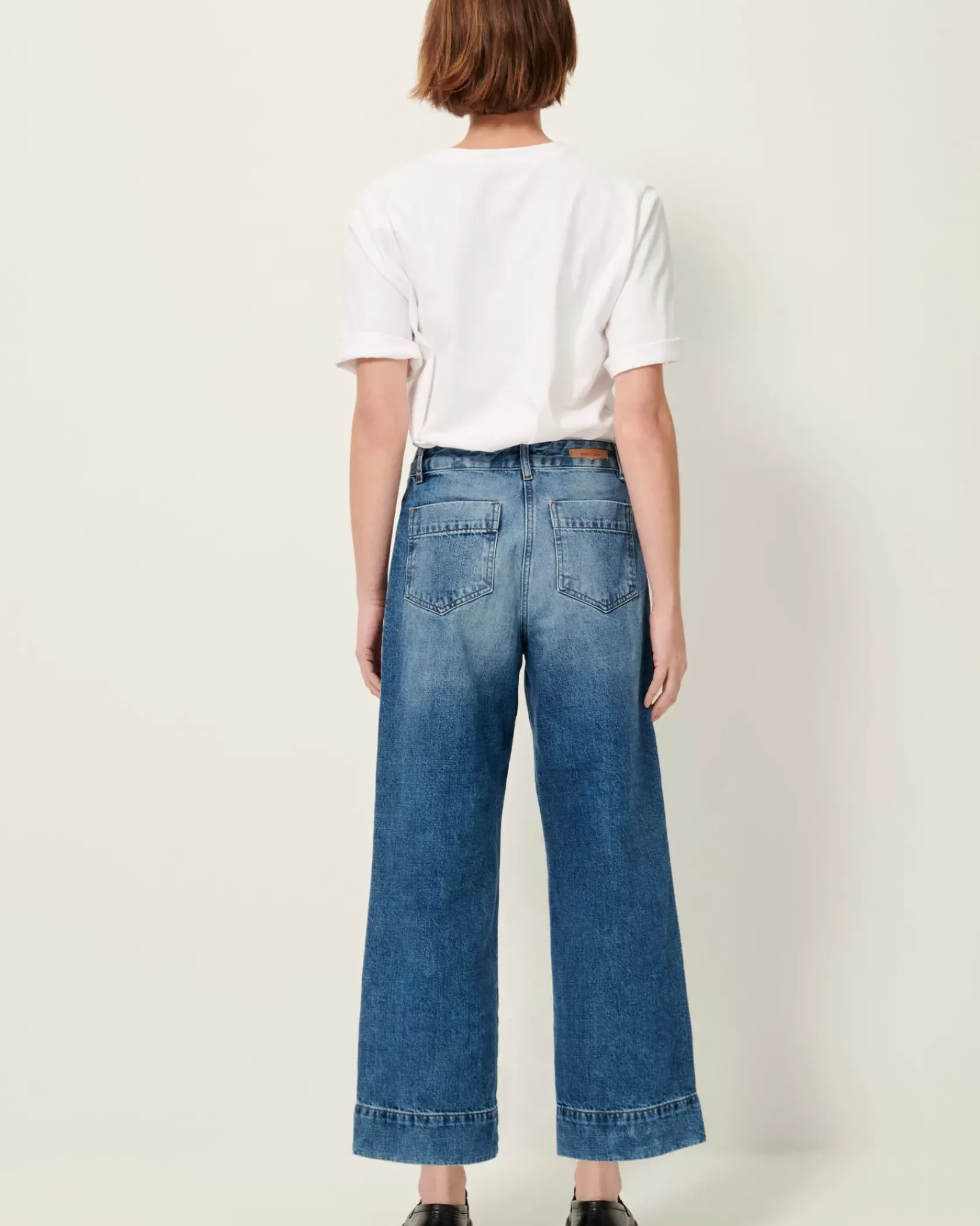 Jean 7/8ème en A esprit marin raccourci en denim stonewashé.