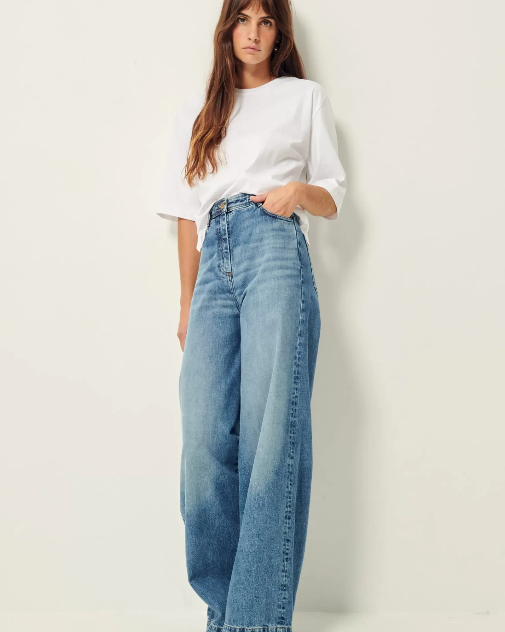T-shirt oversize manches courtes en jersey interlock, confectionné au Portugal.
