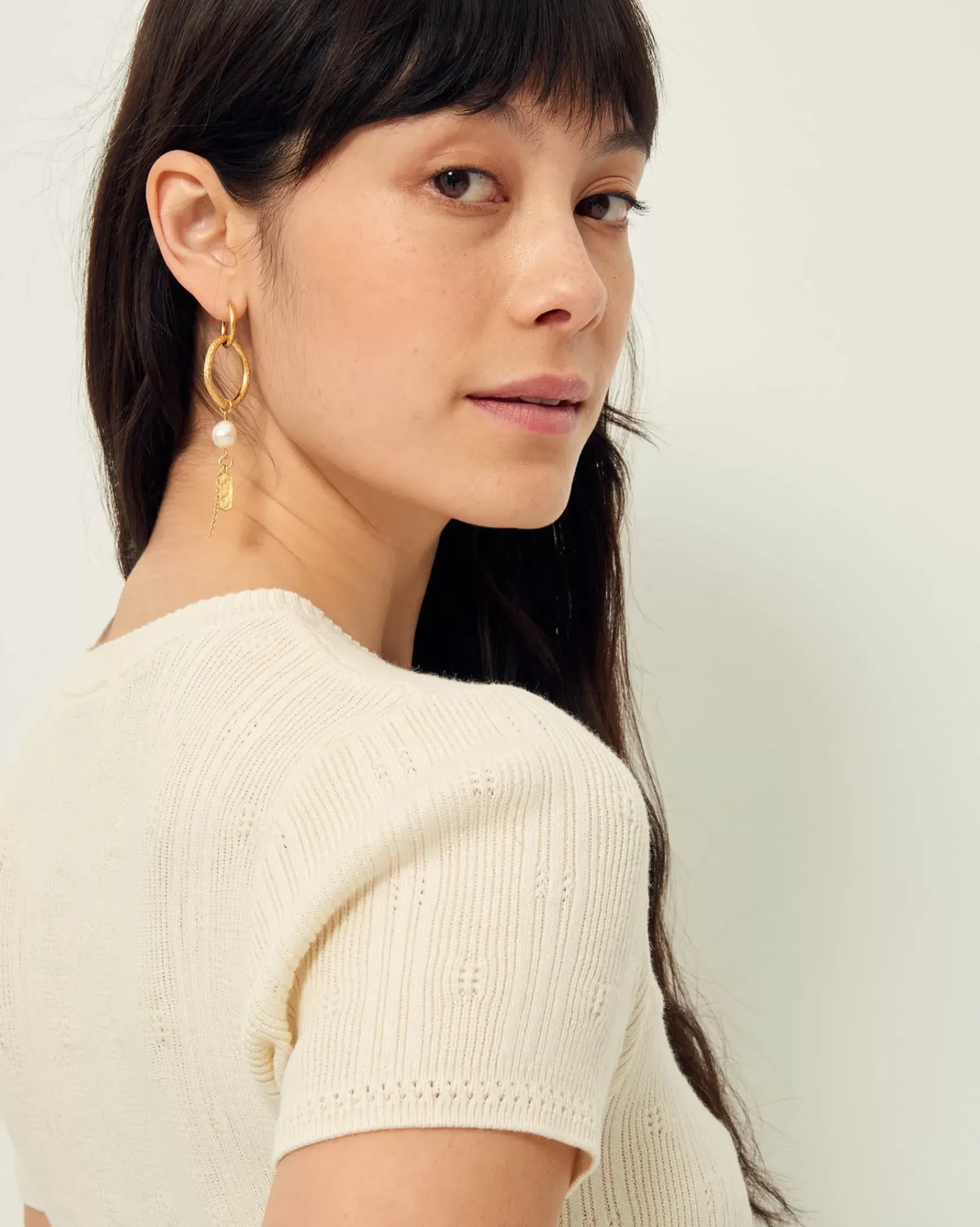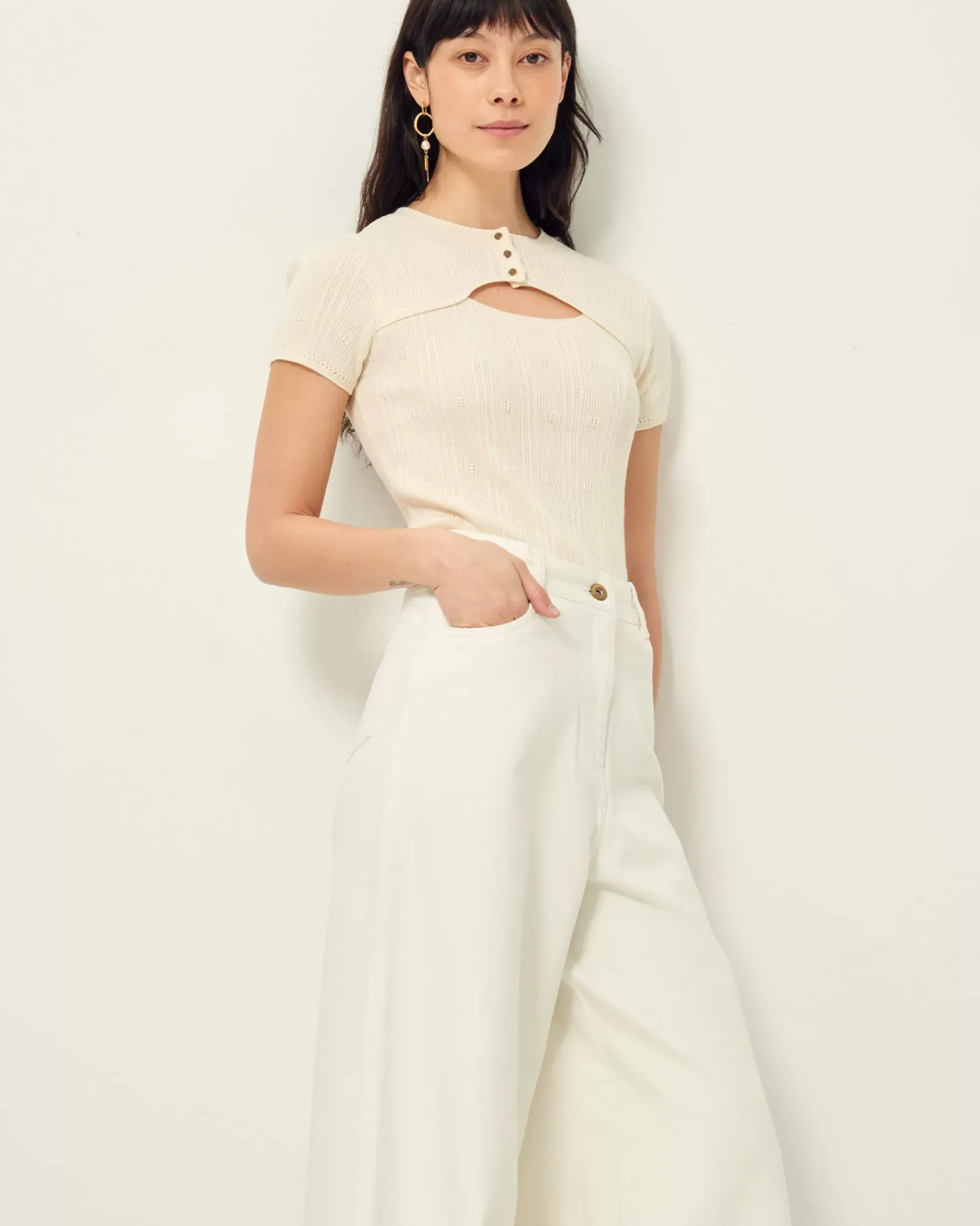 Pull ajusté manches courtes avec découpe devant en maille fantaisie à points ajourés.